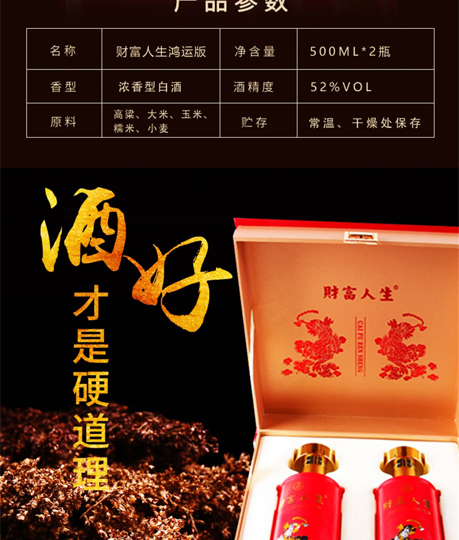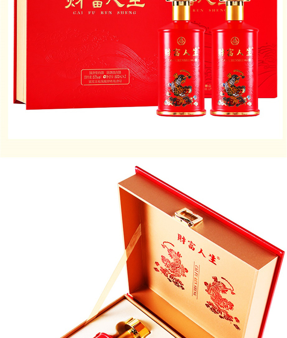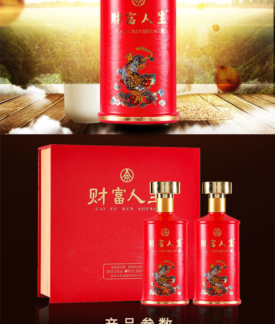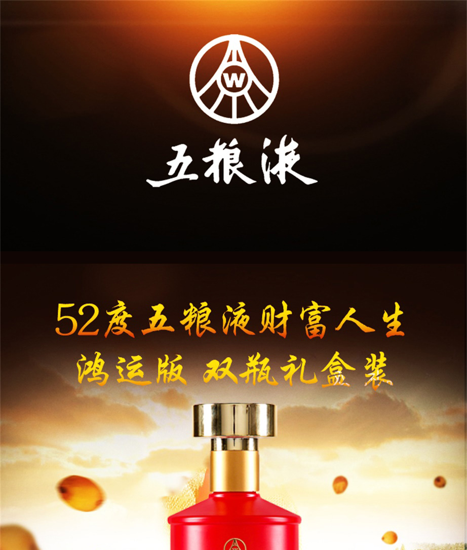 五粮液 财富人生 鸿运 52度 浓香型白酒(双瓶礼盒装)