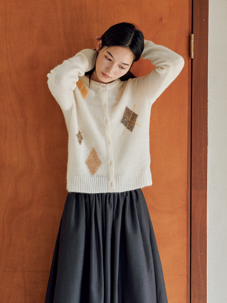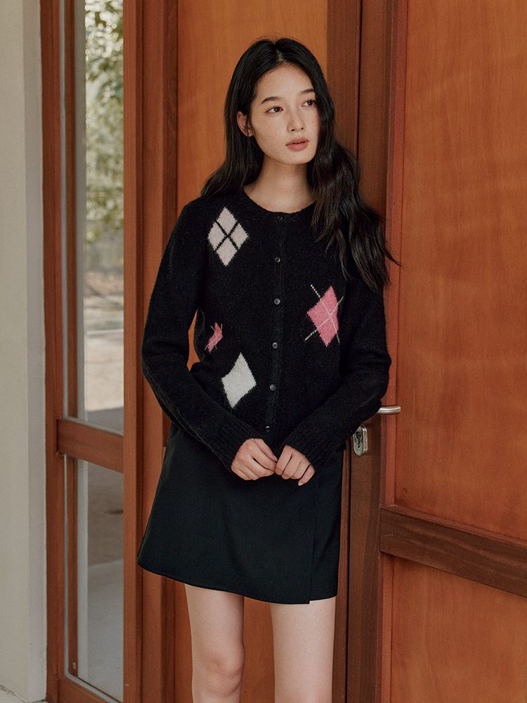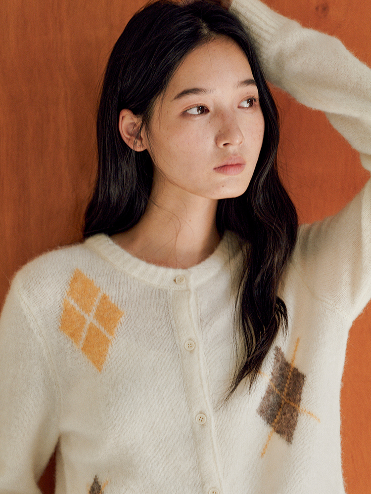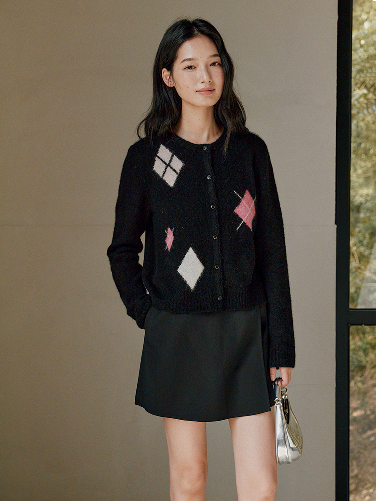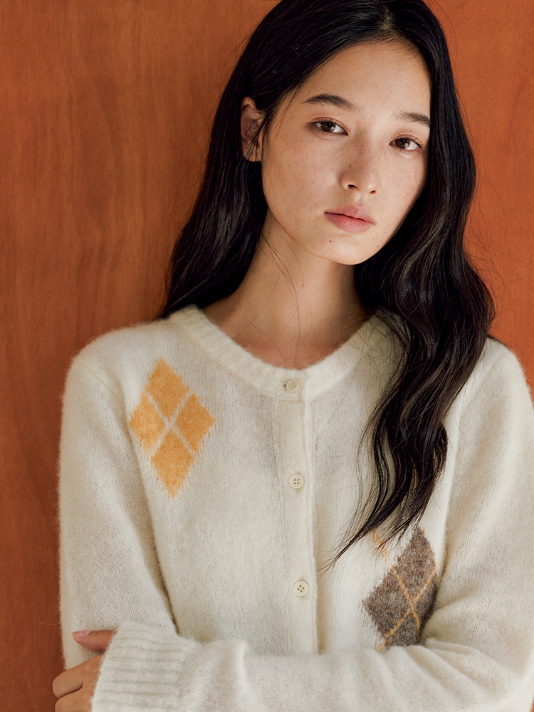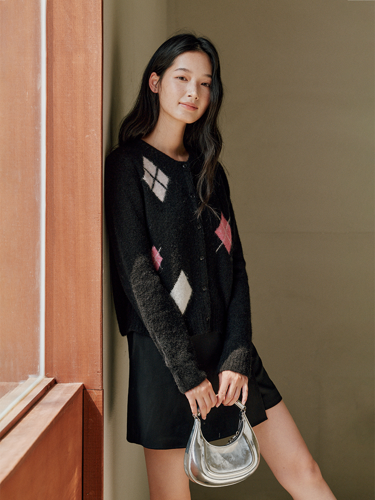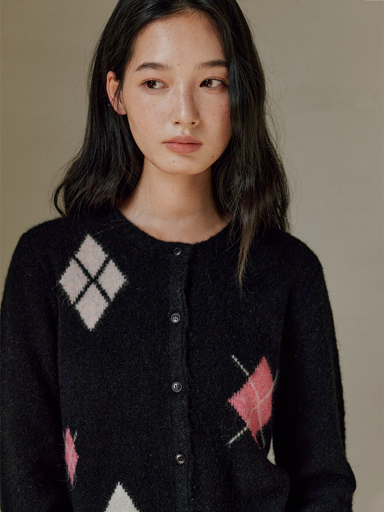 ForPoem 25/FW 原创设计撞色菱形格羊驼毛羊毛针织开衫外套女秋冬
