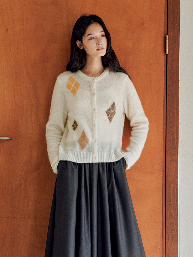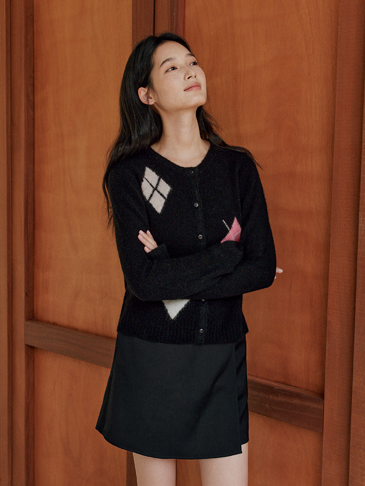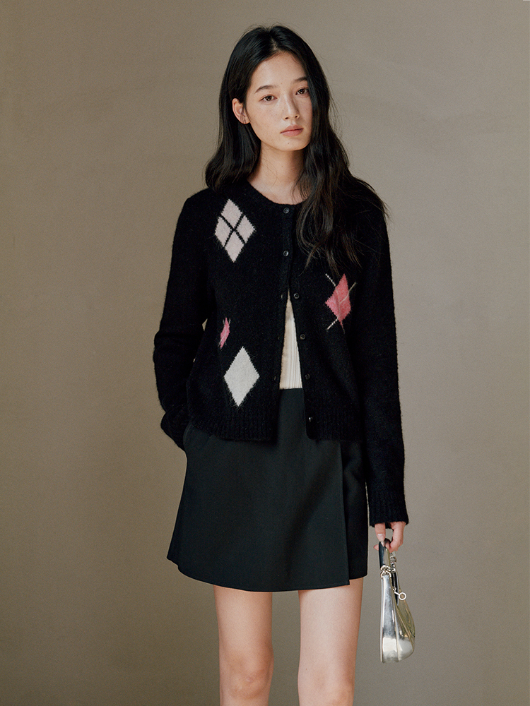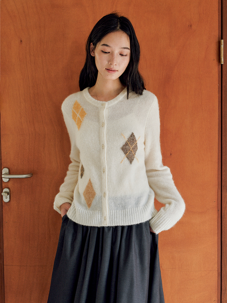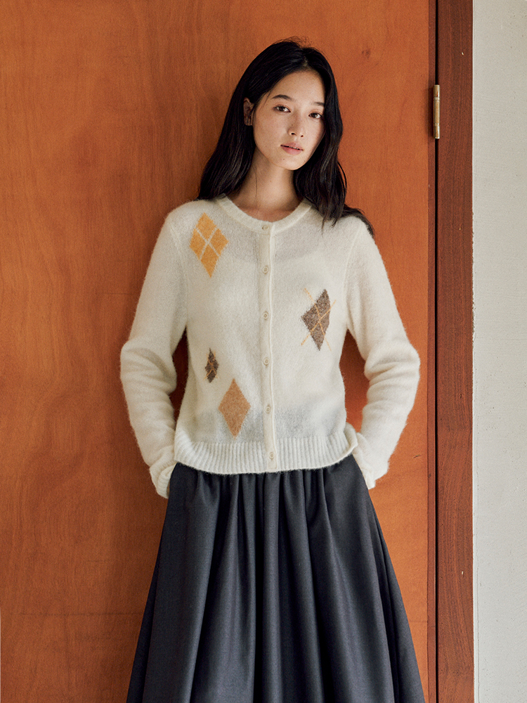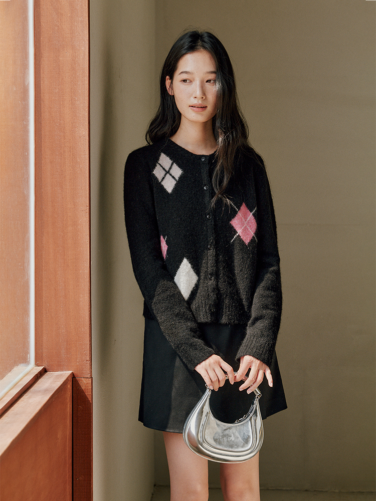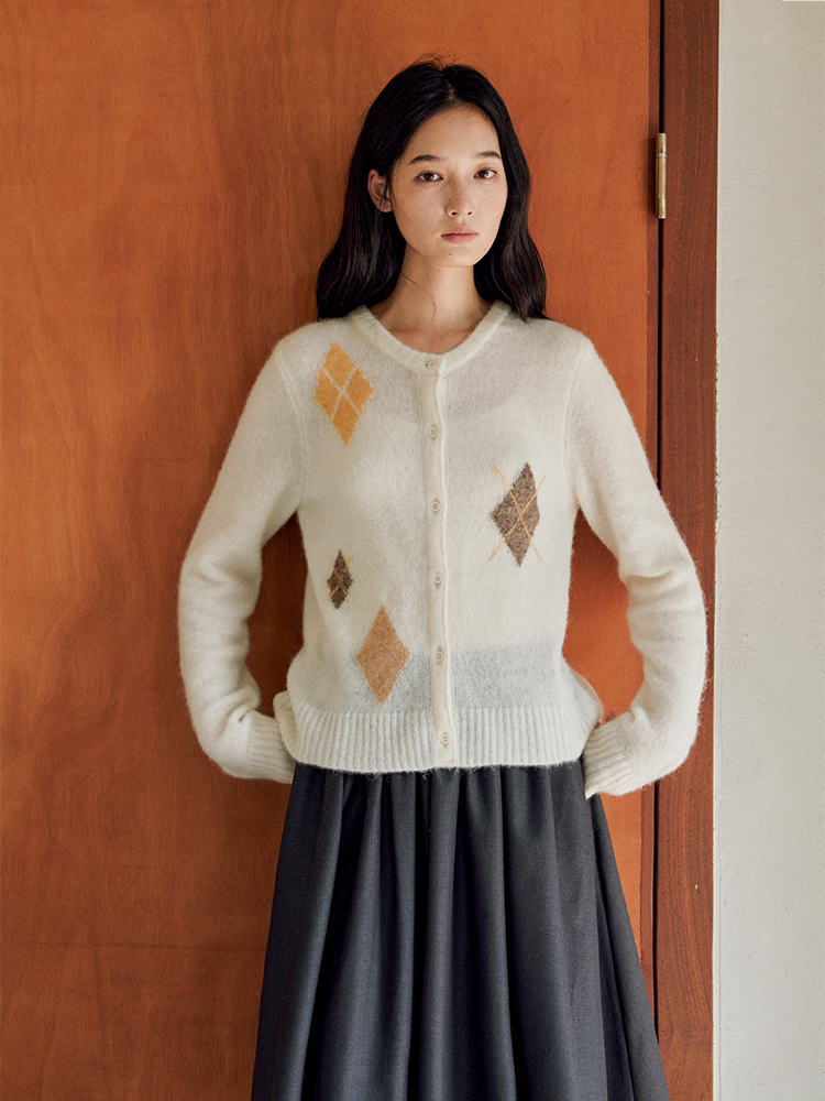 ForPoem 25/FW 原创设计撞色菱形格羊驼毛羊毛针织开衫外套女秋冬