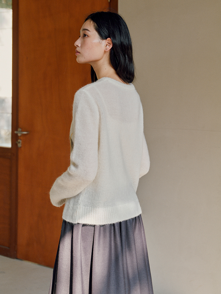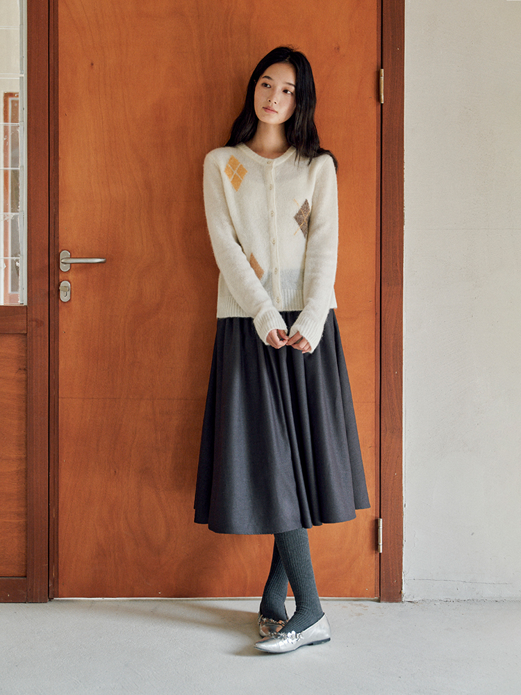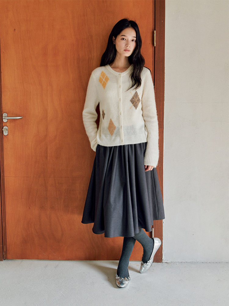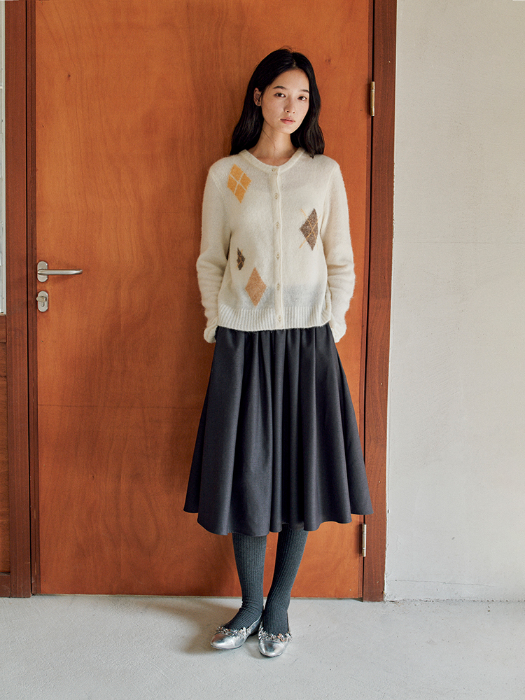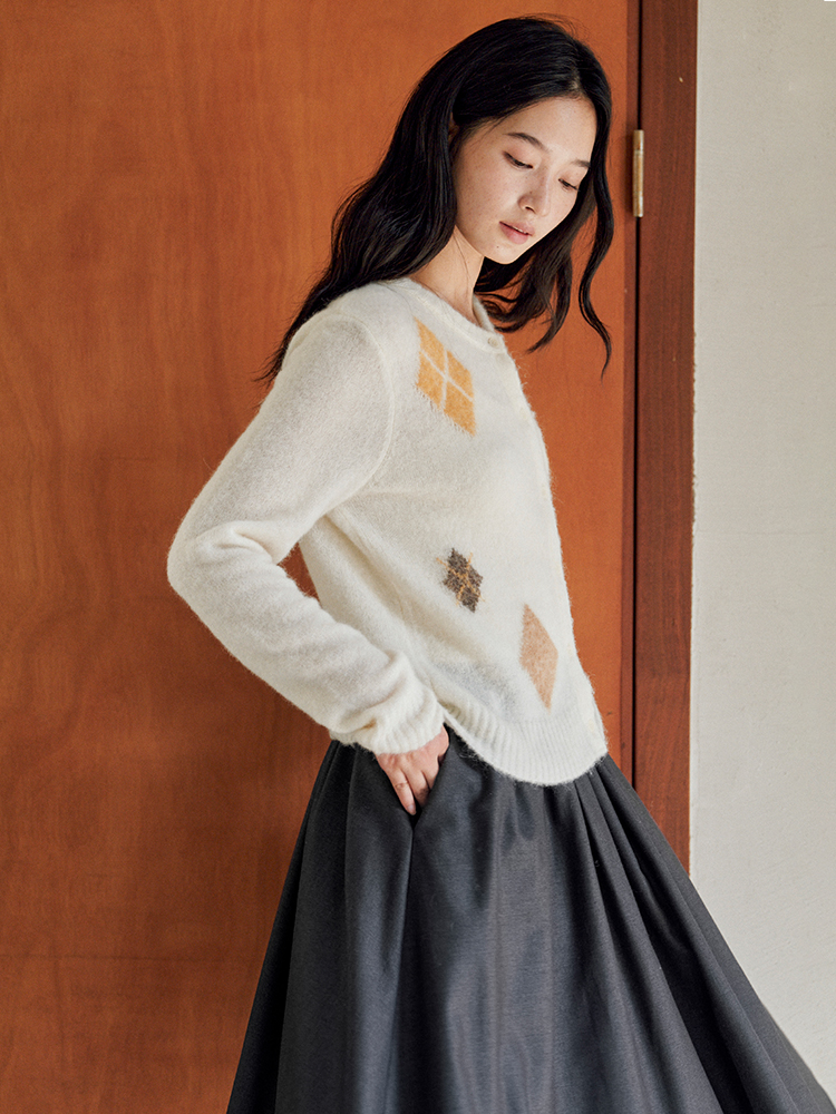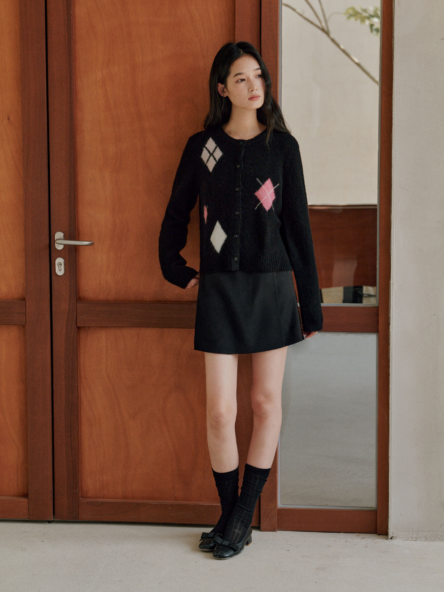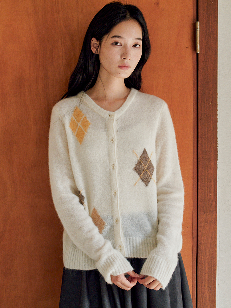 ForPoem 25/FW 原创设计撞色菱形格羊驼毛羊毛针织开衫外套女秋冬