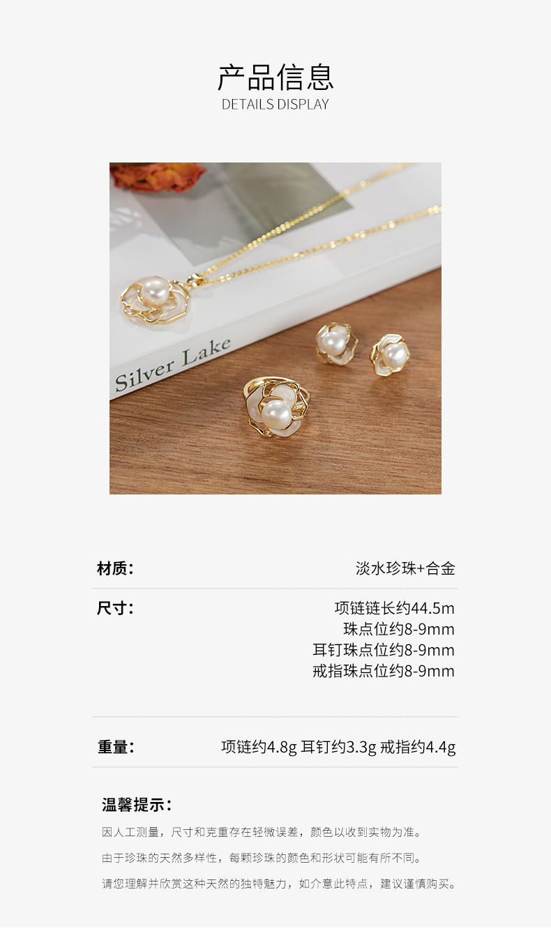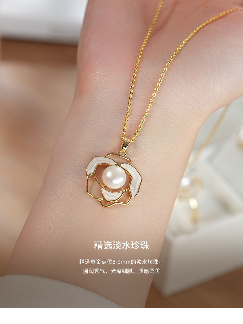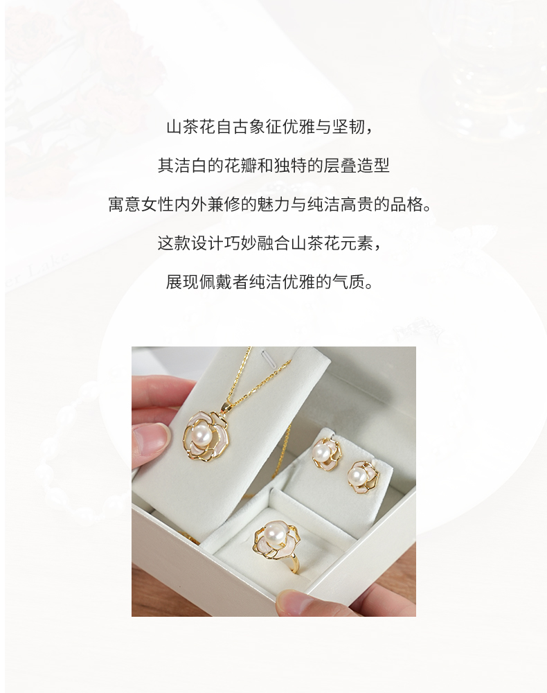 戴拉《花容珠貌》小香风山茶花天然淡水珍珠吊坠项链、戒指、耳钉3件套礼盒,配备礼盒+国检证书,送人自留都不错