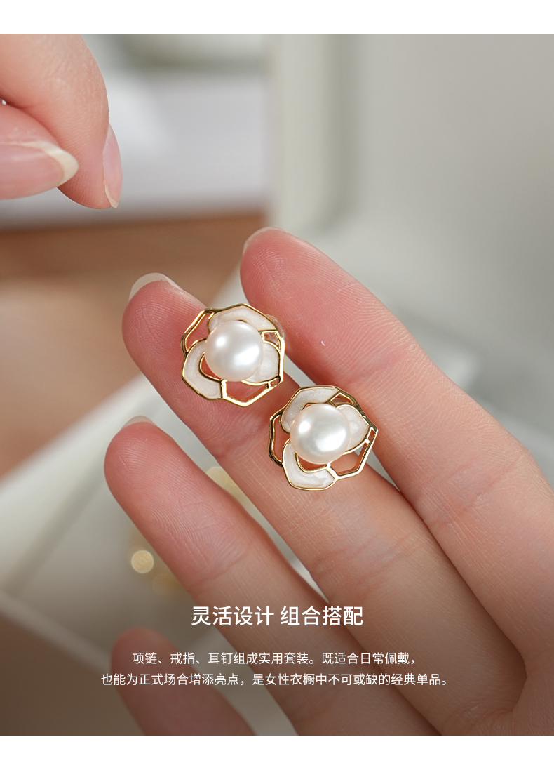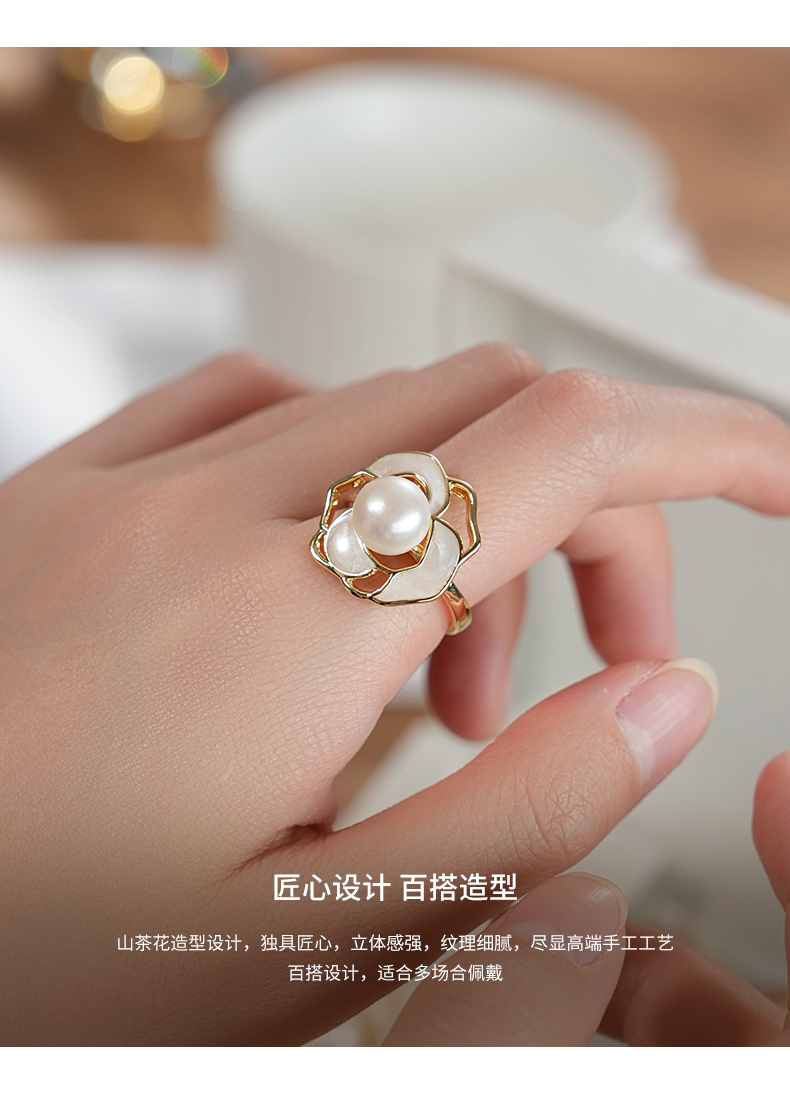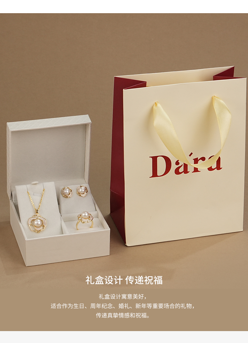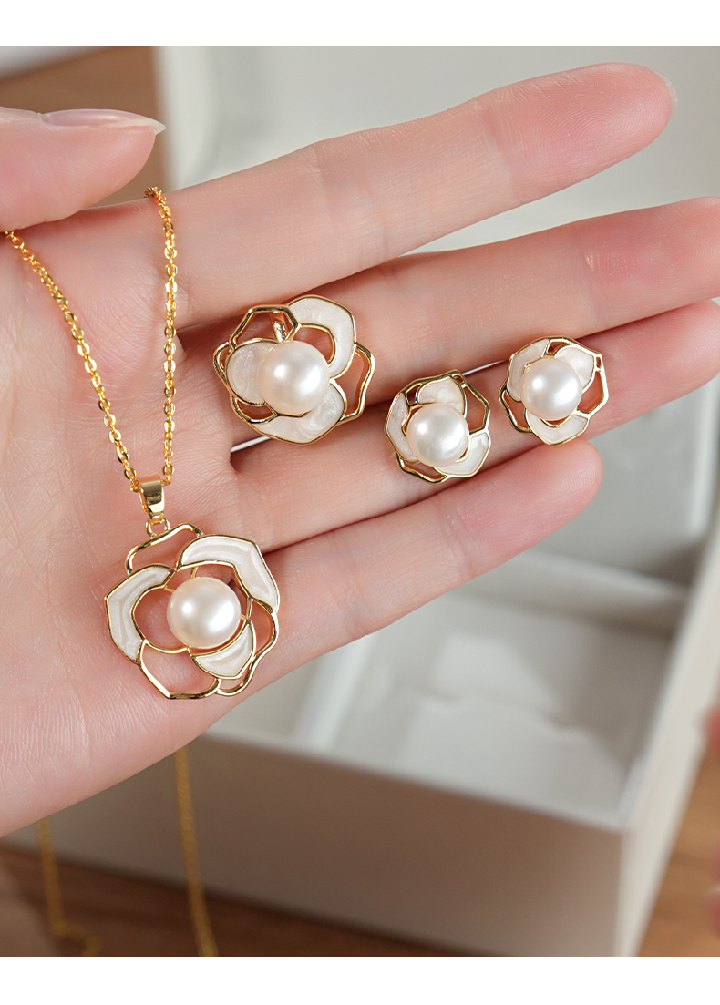 戴拉《花容珠貌》小香风山茶花天然淡水珍珠吊坠项链、戒指、耳钉3件套礼盒,配备礼盒+国检证书,送人自留都不错
