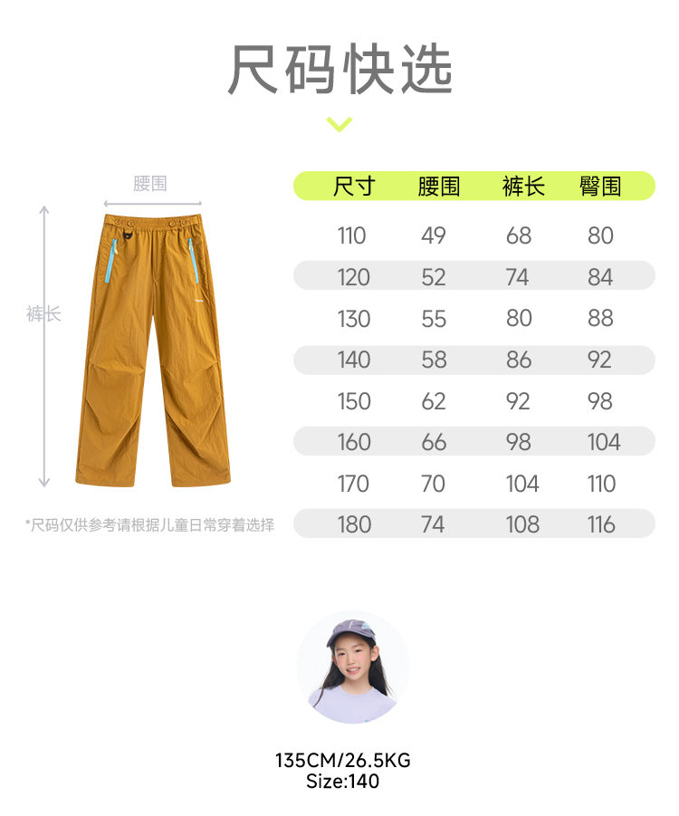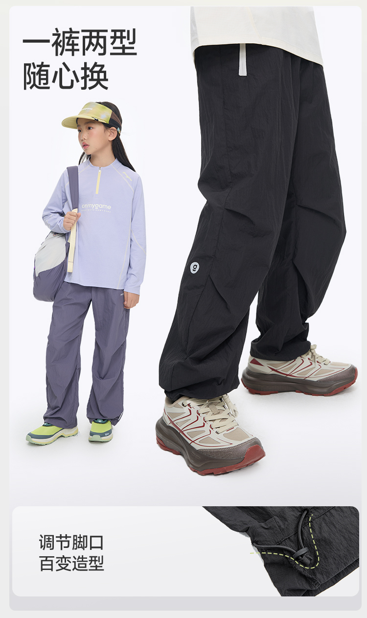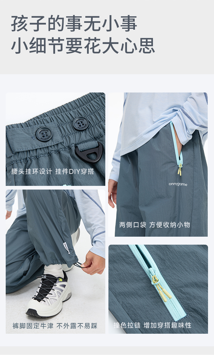 onmygame儿童运动长裤山系户外风轻量化男女童伞兵裤子2026新款GQ2E119420
