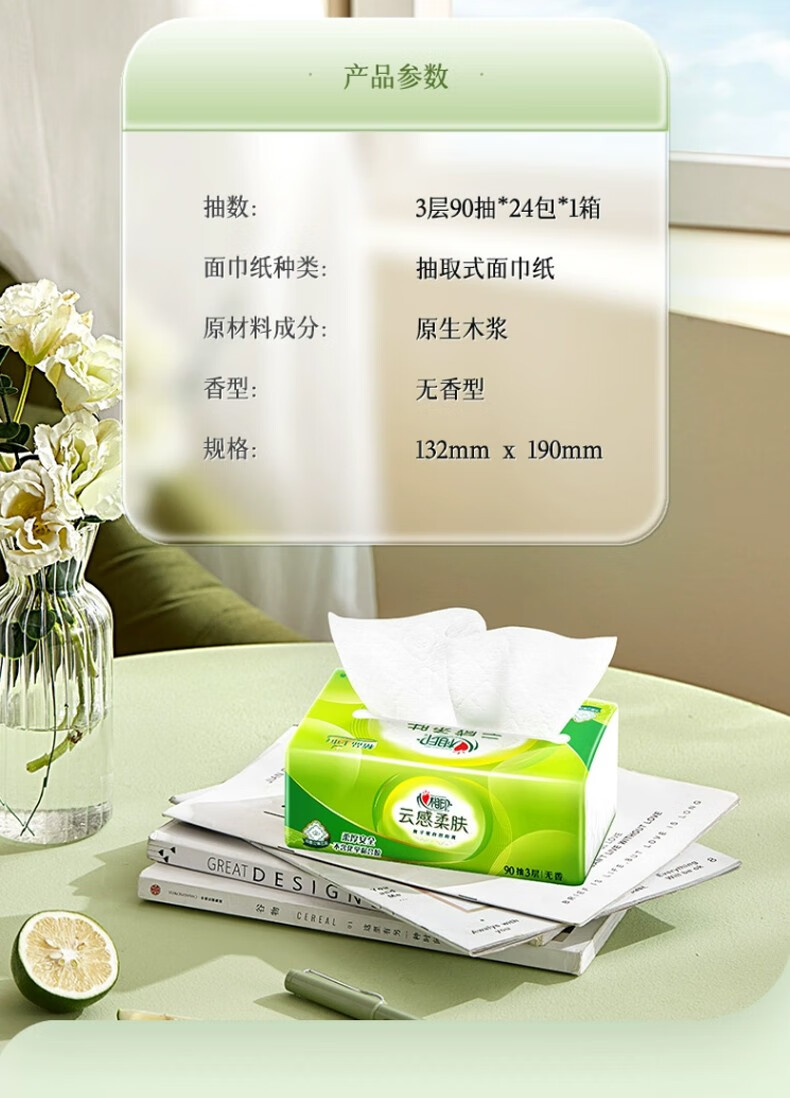 心相印抽纸云感90抽24包三层塑装纸面巾