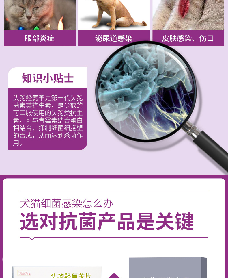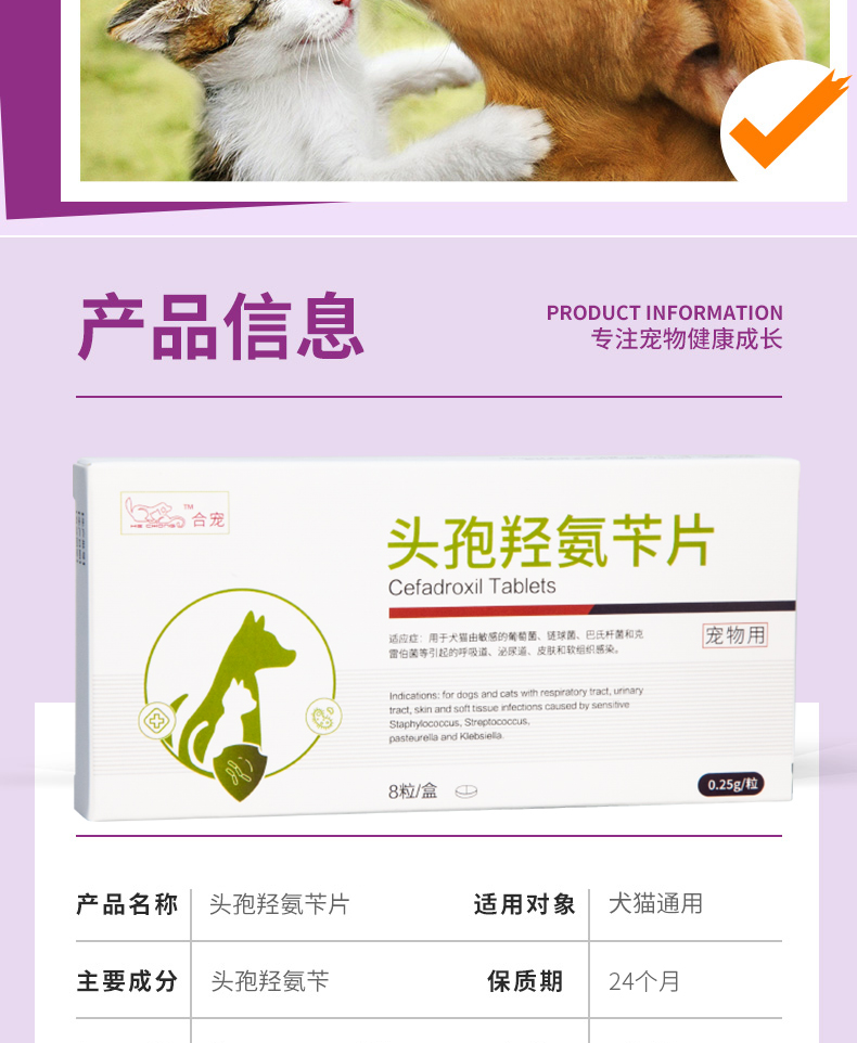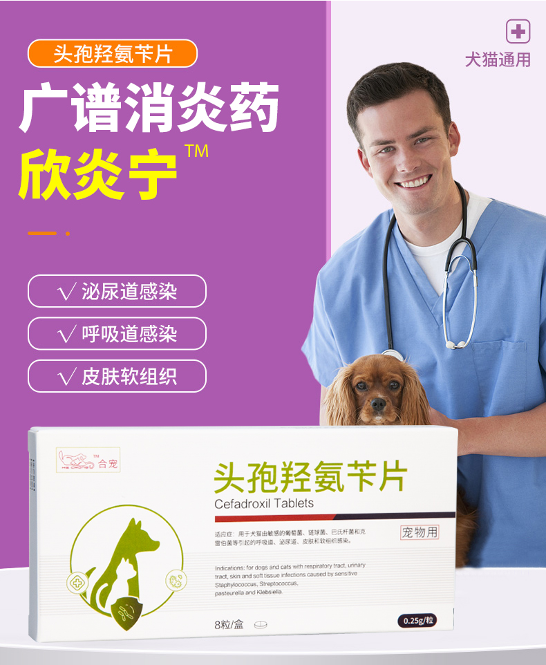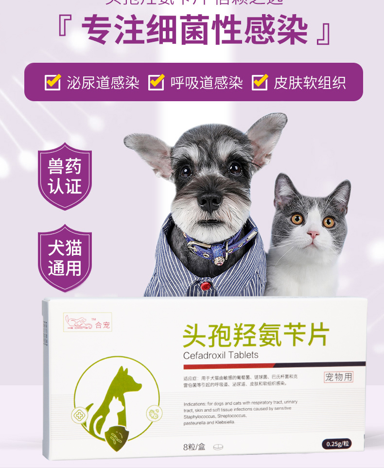 合宠头孢羟氨苄猫狗感冒鼻支呼吸道泌尿感染肾肺牙龈牙周炎脓皮症