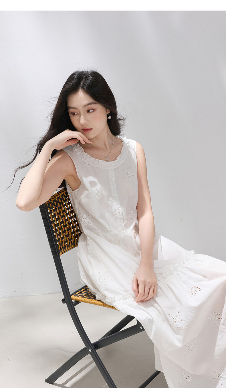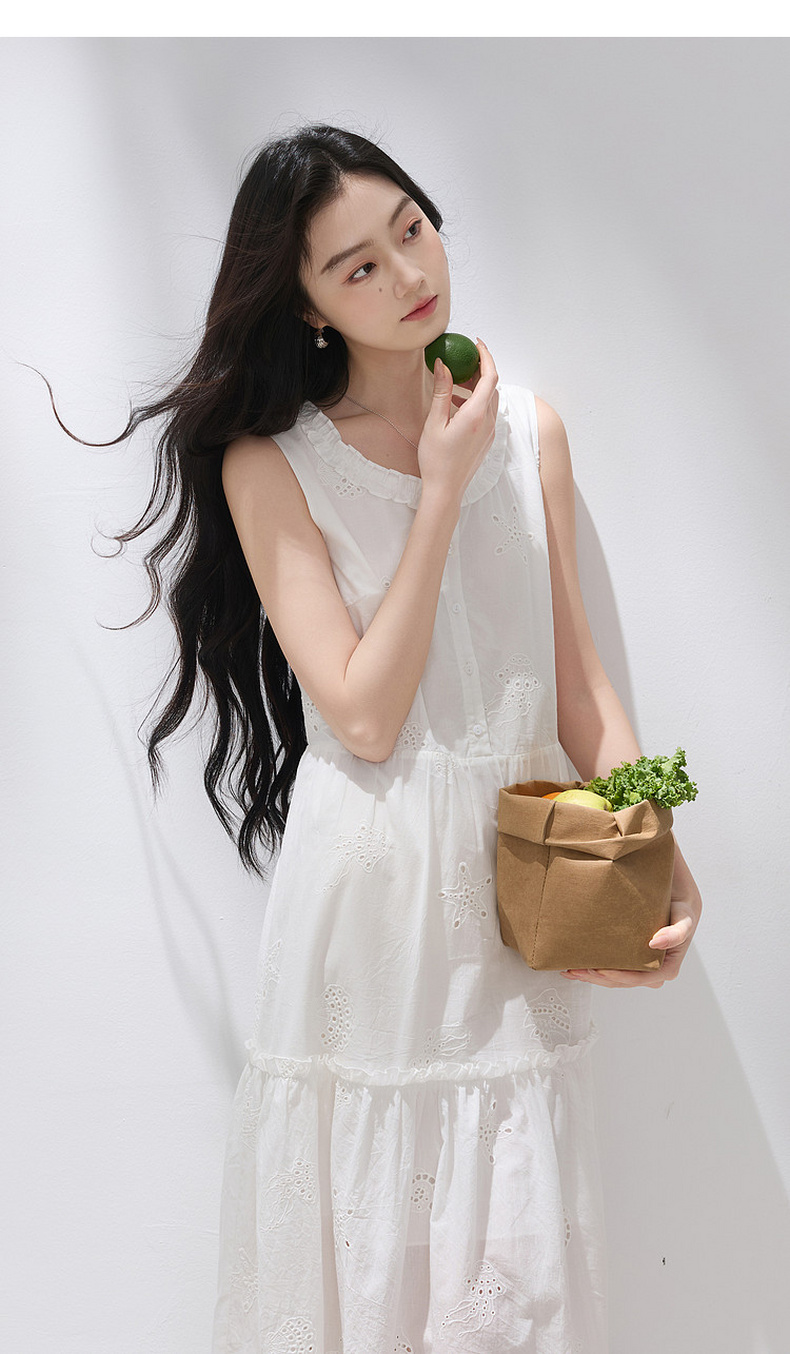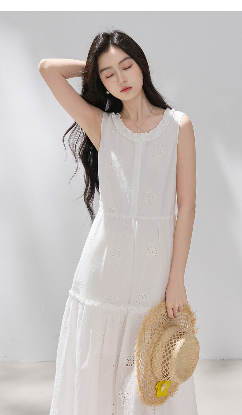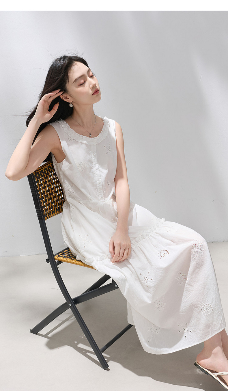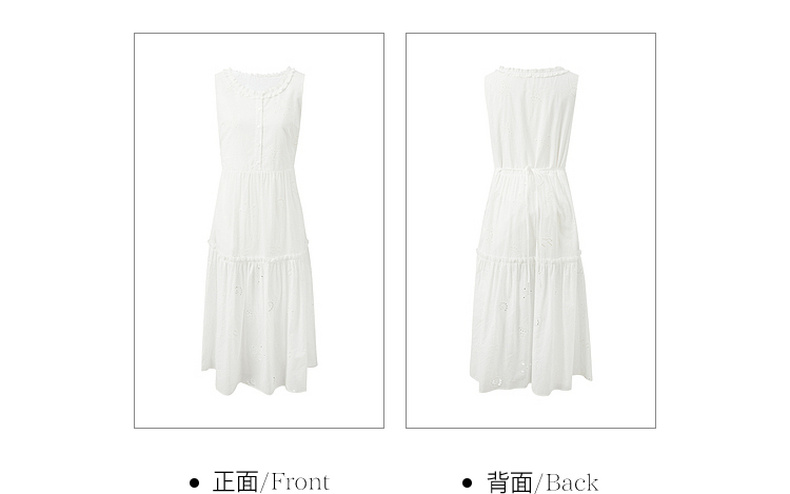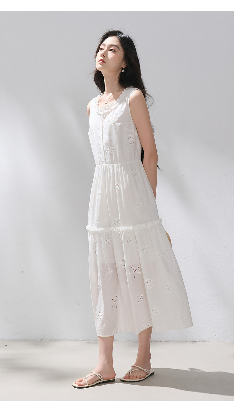 【100棉】三彩2026夏季新款刺绣连衣裙圆领无袖娃娃裙长裙M