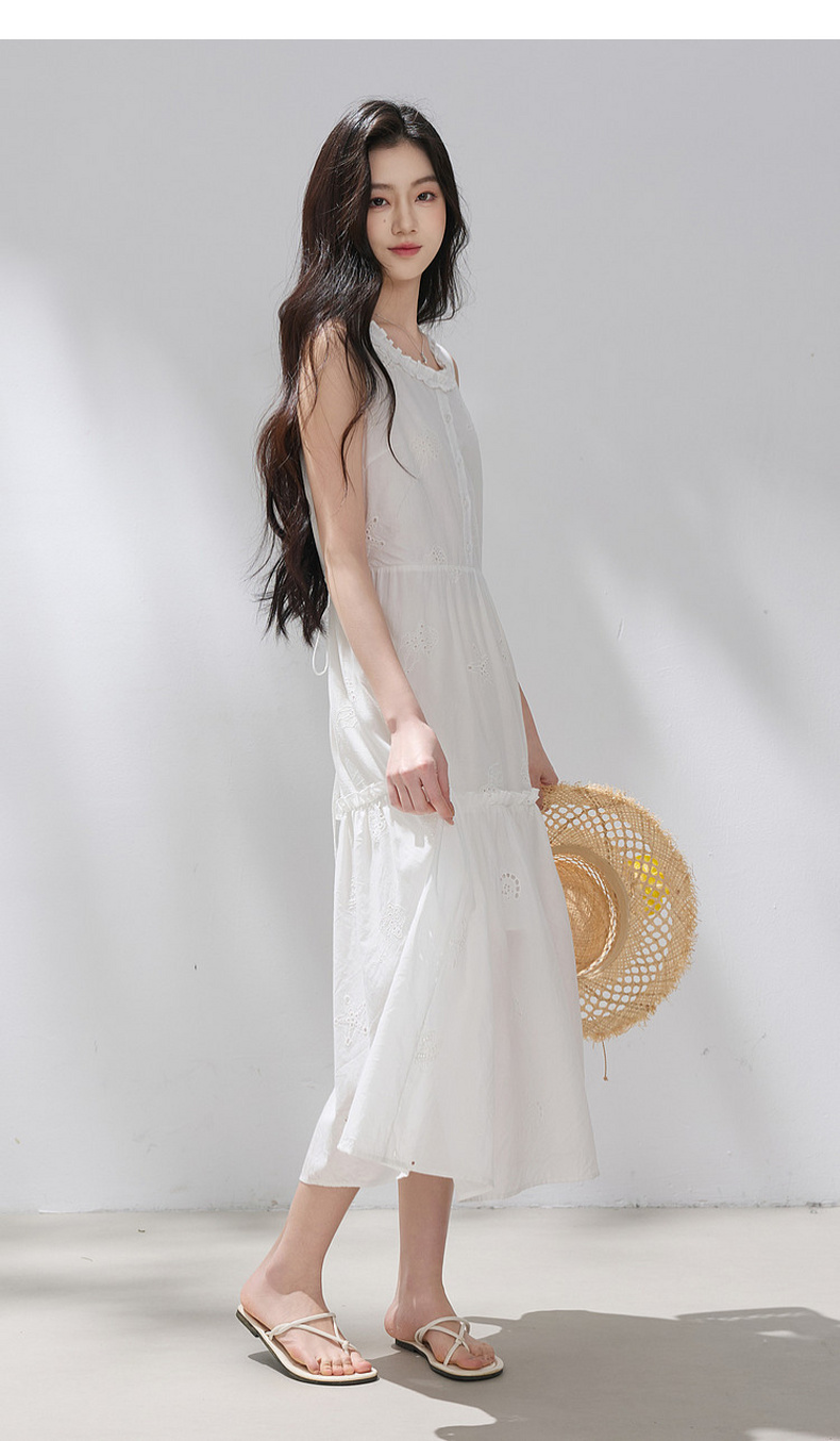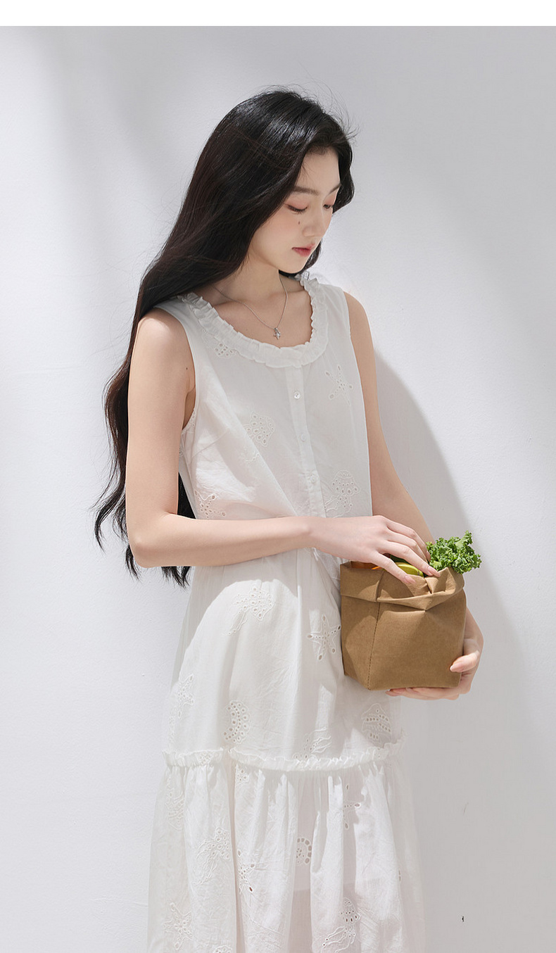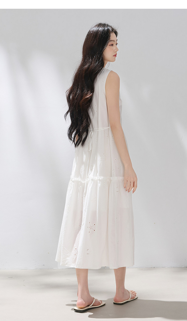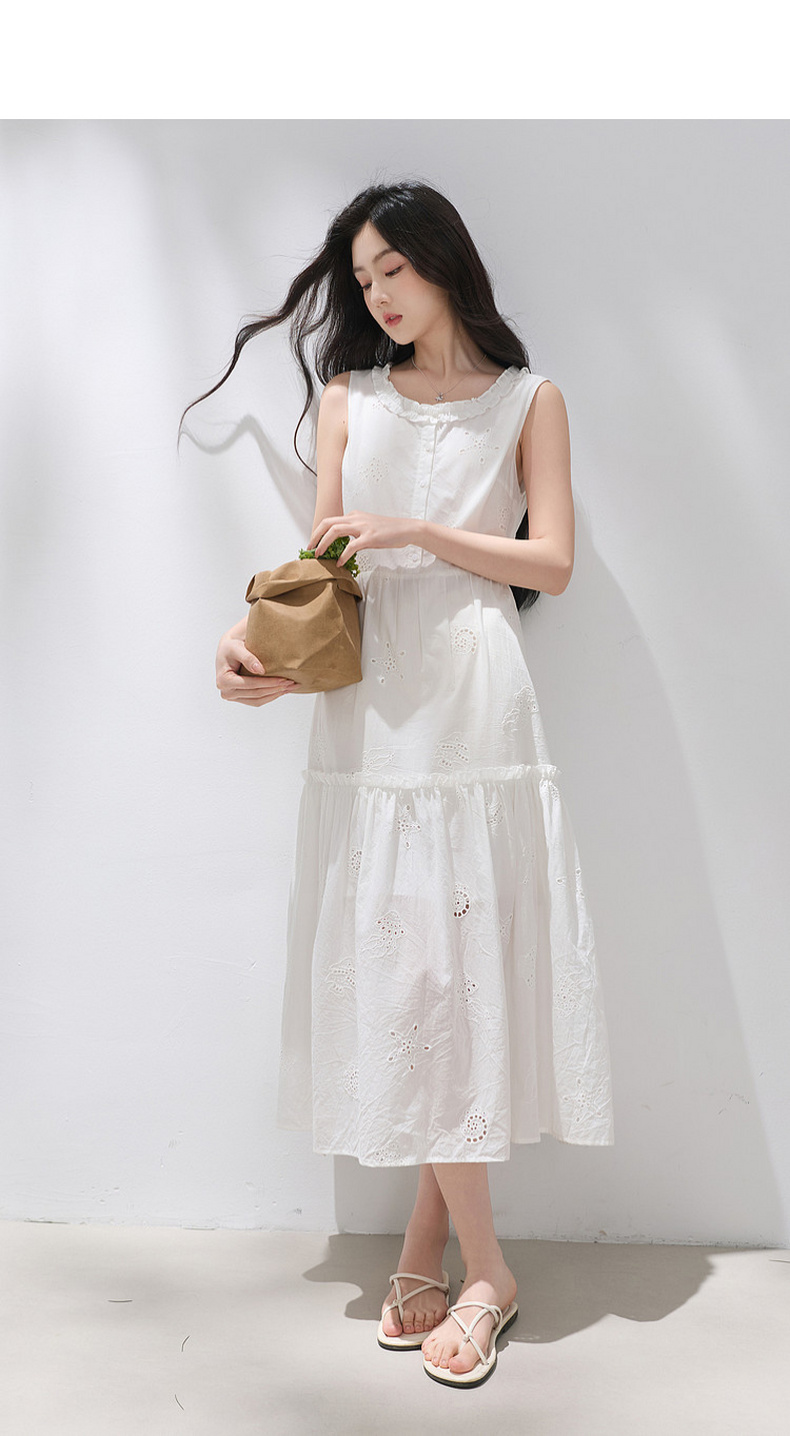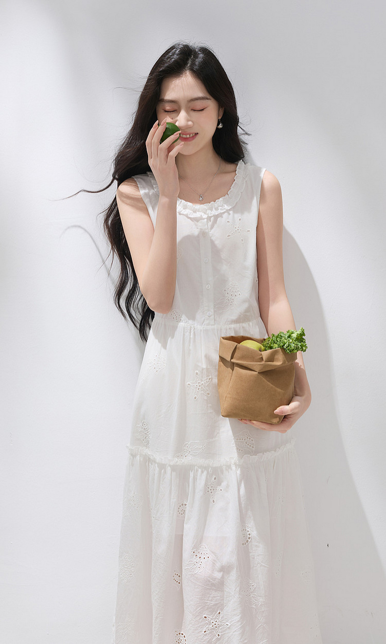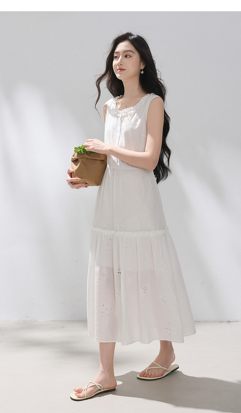 【100棉】三彩2026夏季新款刺绣连衣裙圆领无袖娃娃裙长裙M