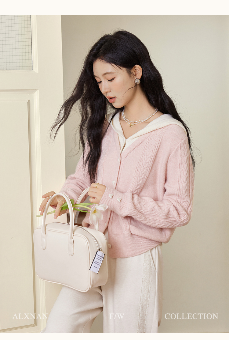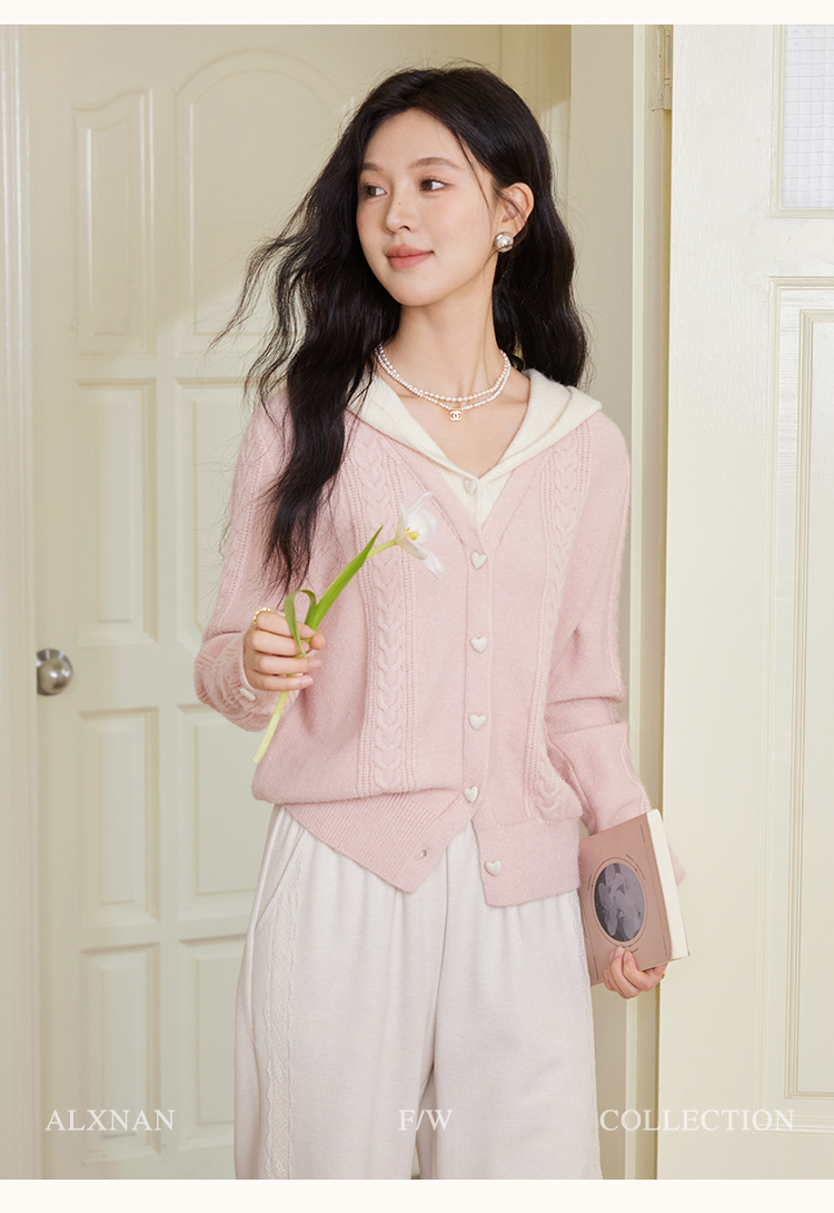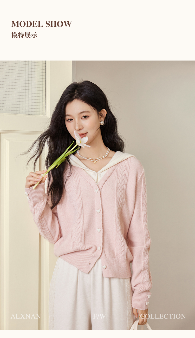 鹿向南「莓莓芝士」温柔慵懒风假两件毛衣2025秋季连帽领开衫女