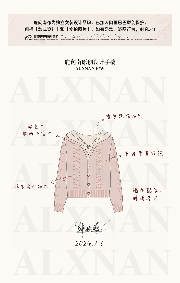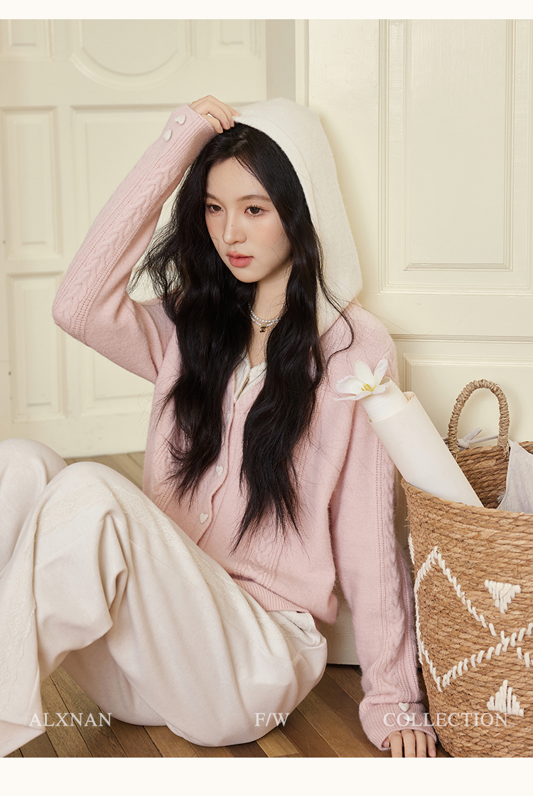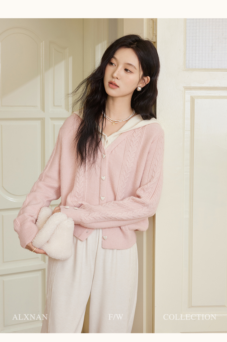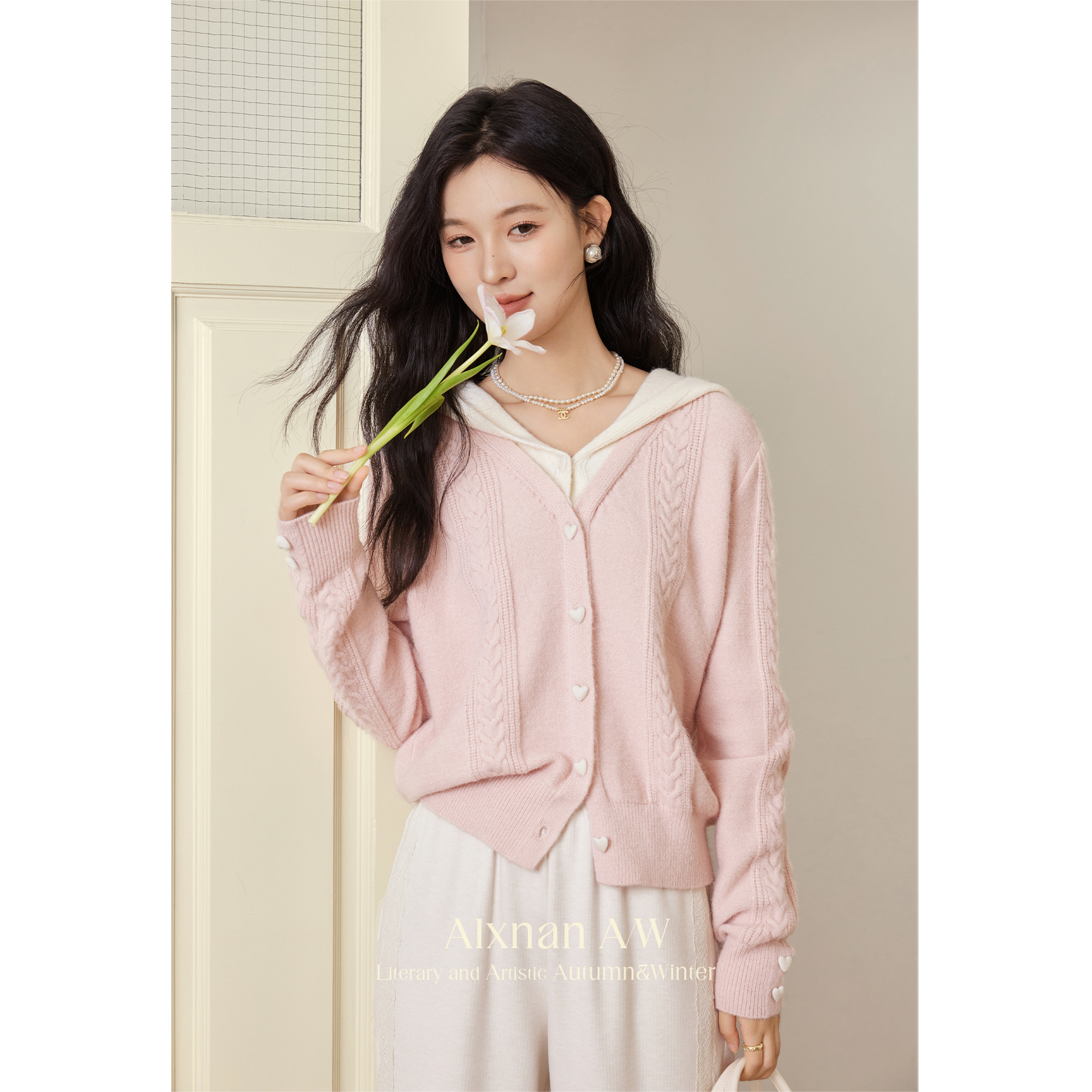 鹿向南「莓莓芝士」温柔慵懒风假两件毛衣2025秋季连帽领开衫女