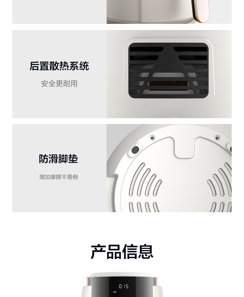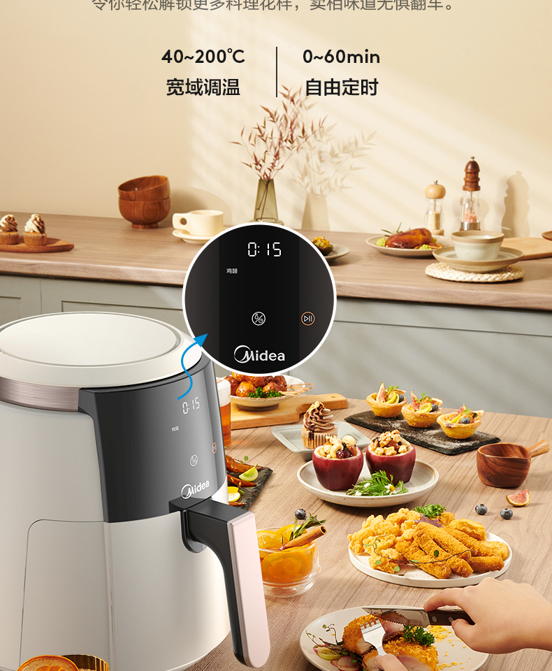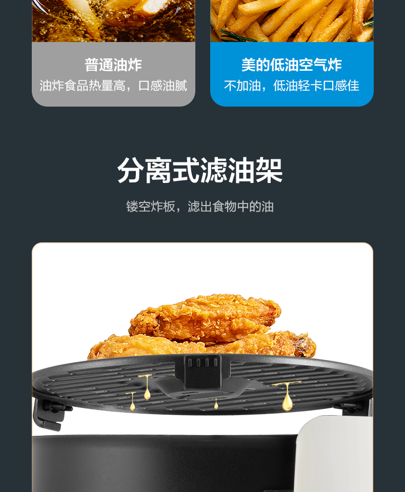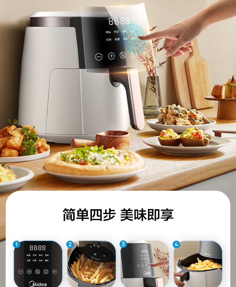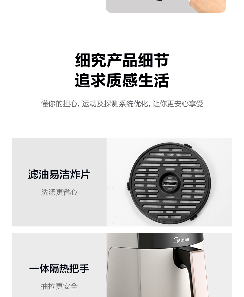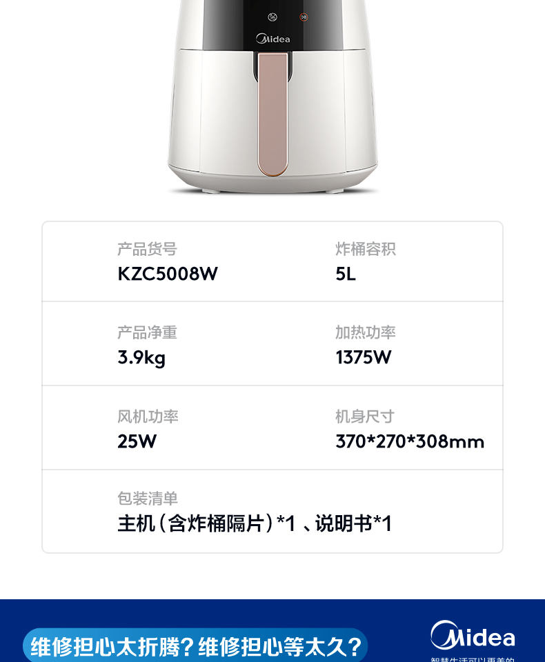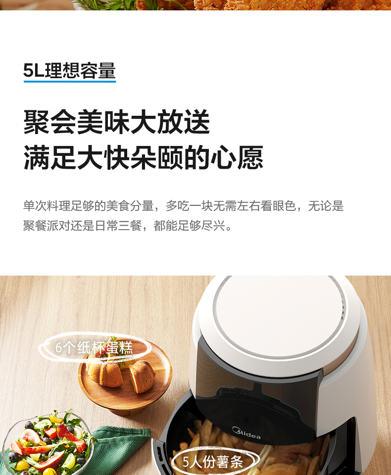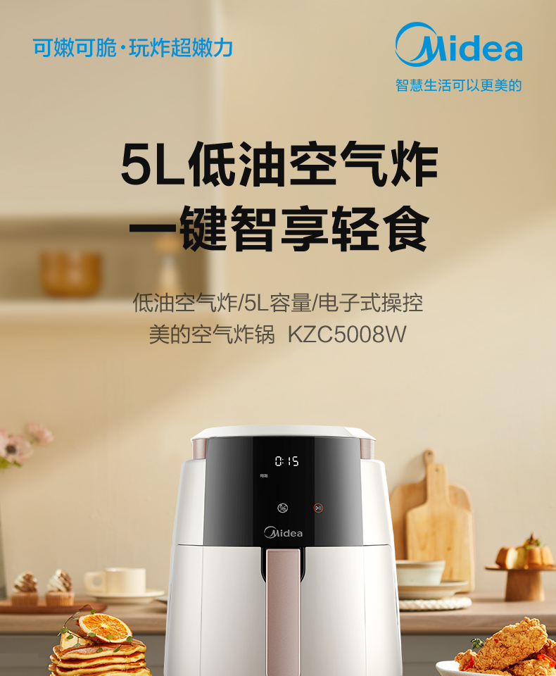 美的(Midea)低油空气炸锅5升断电保护食品级不沾涂层少油炸锅MF-KZC5008(KZC5008W)【ZMD安心系列】