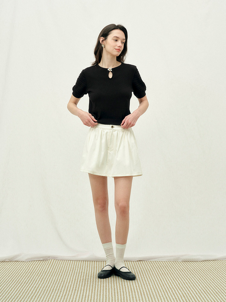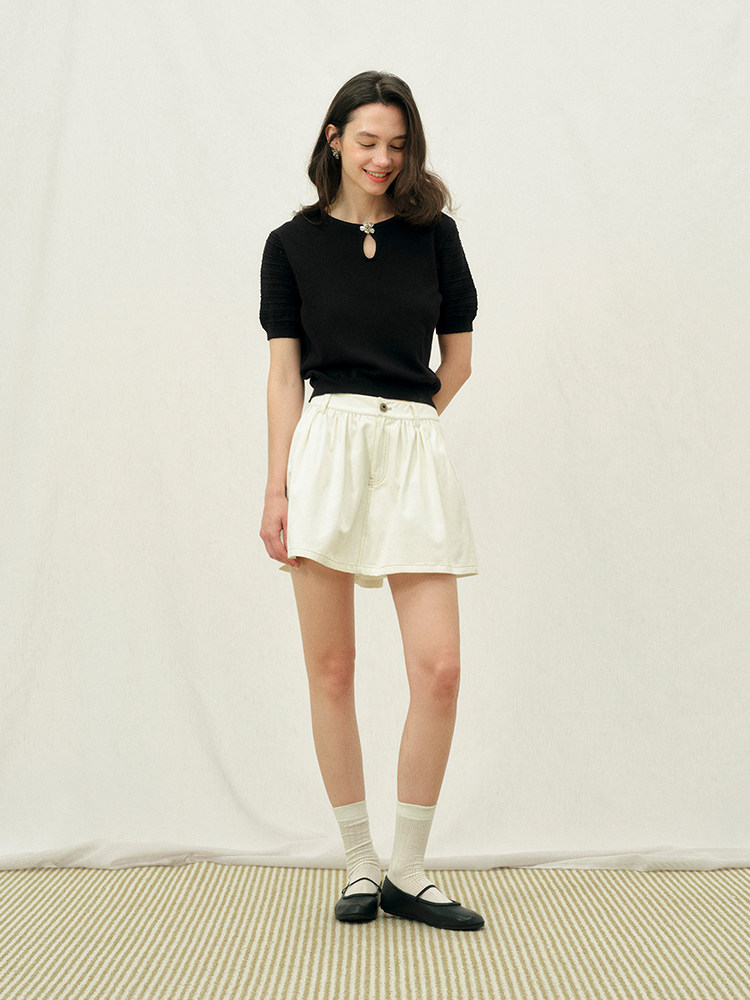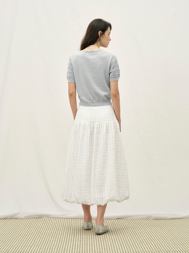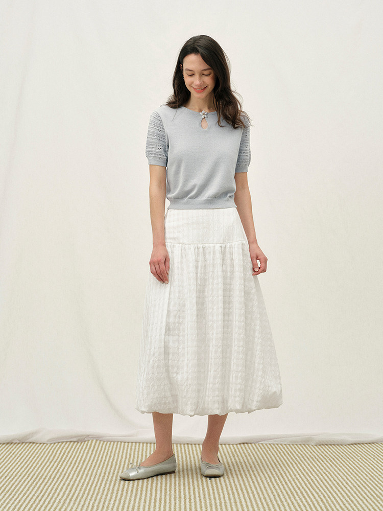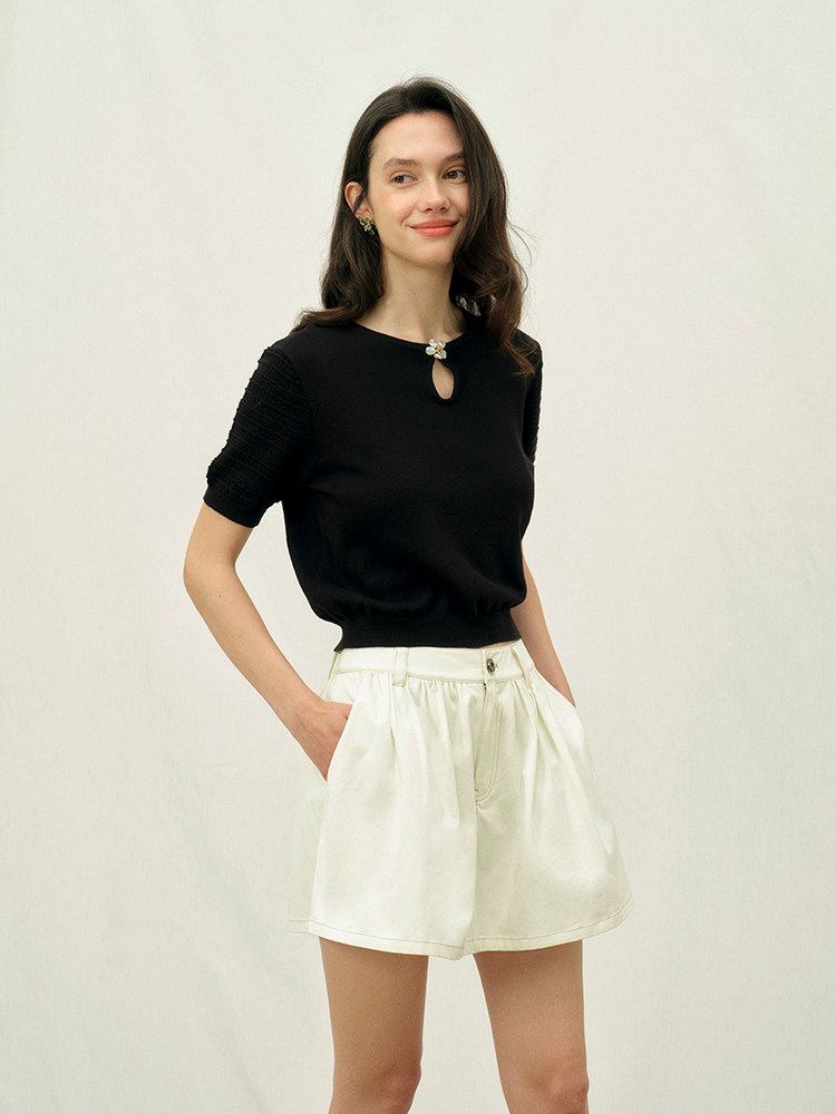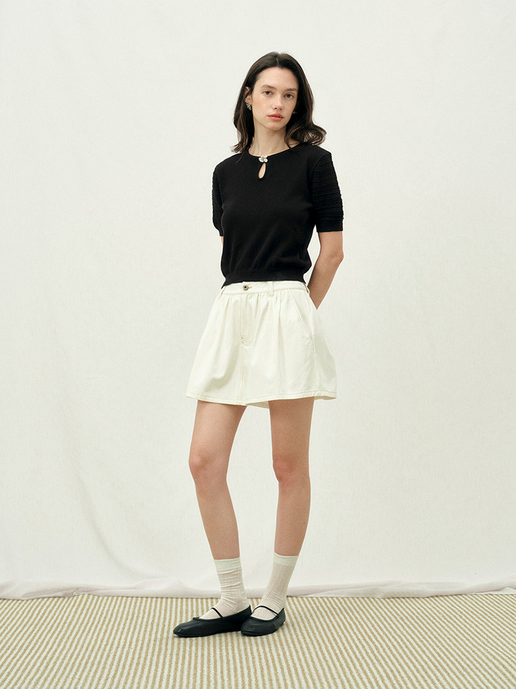 ForPoem 26/SS 原创设计棉麻混纺水滴领花朵针织上衣宽松H型短袖