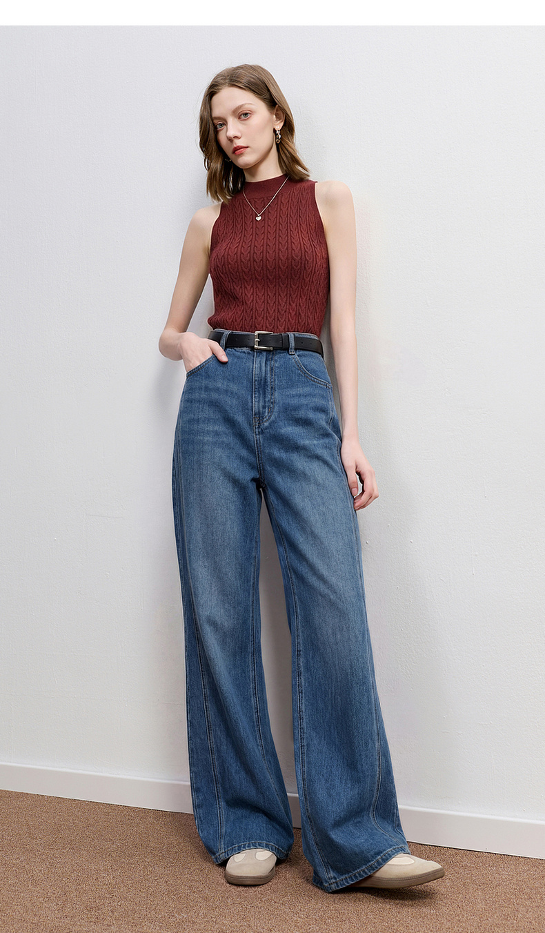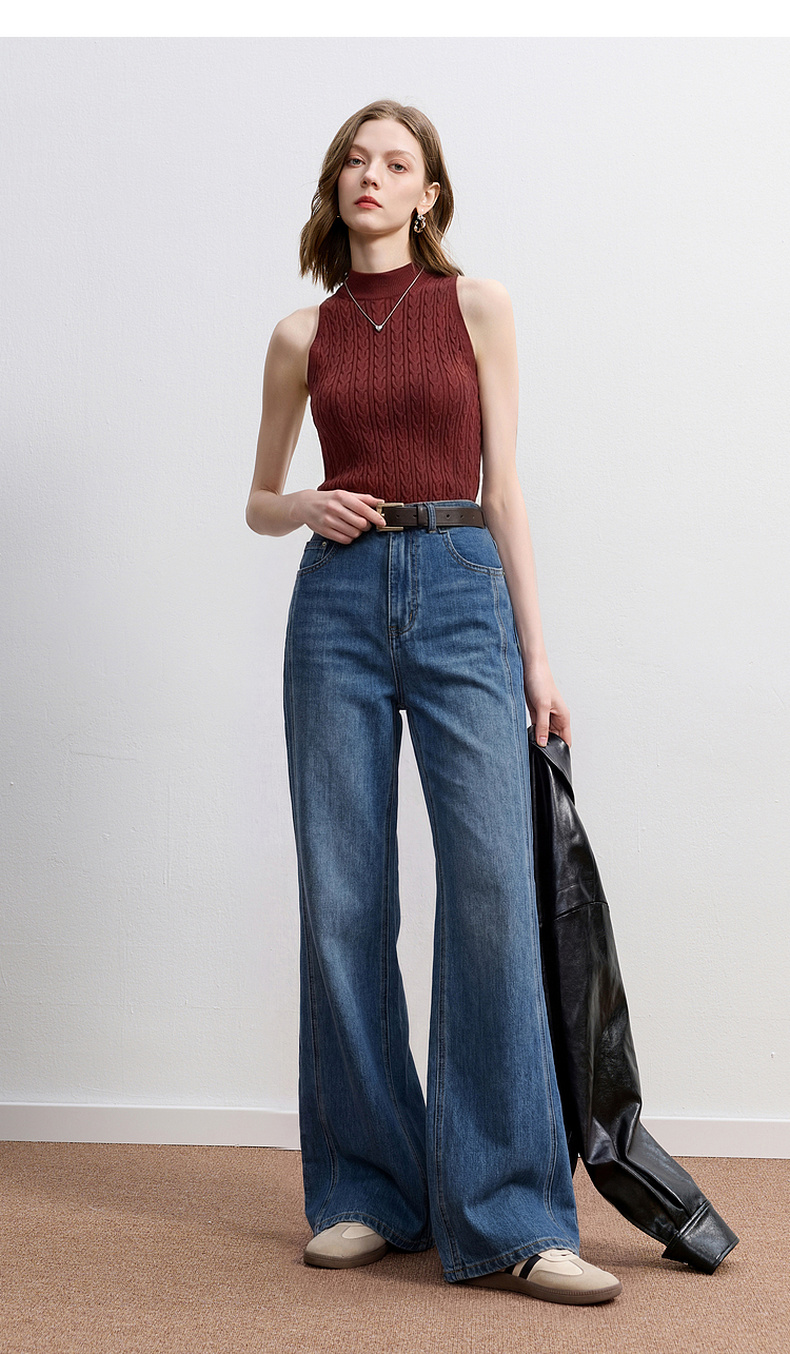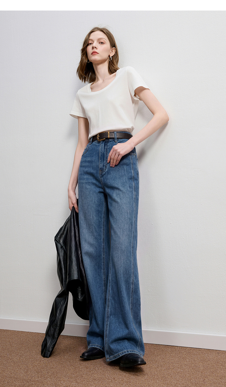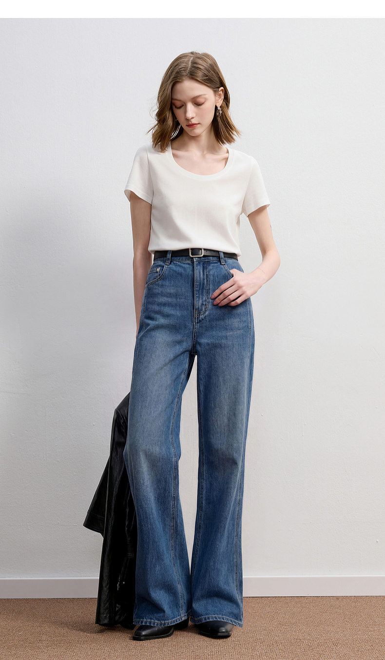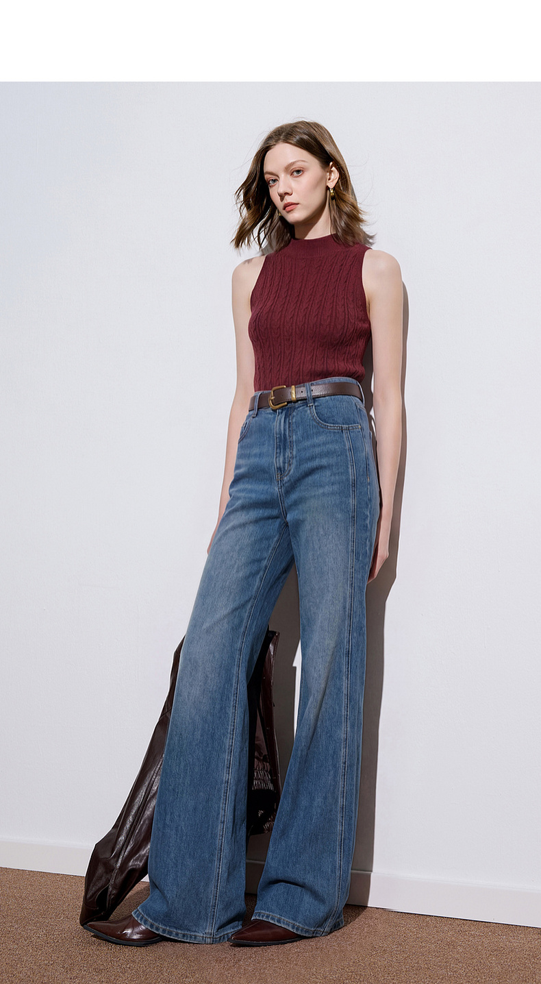 三彩2026夏季新款微喇牛仔裤收腰显瘦长裤摩登复古M