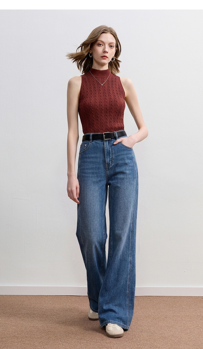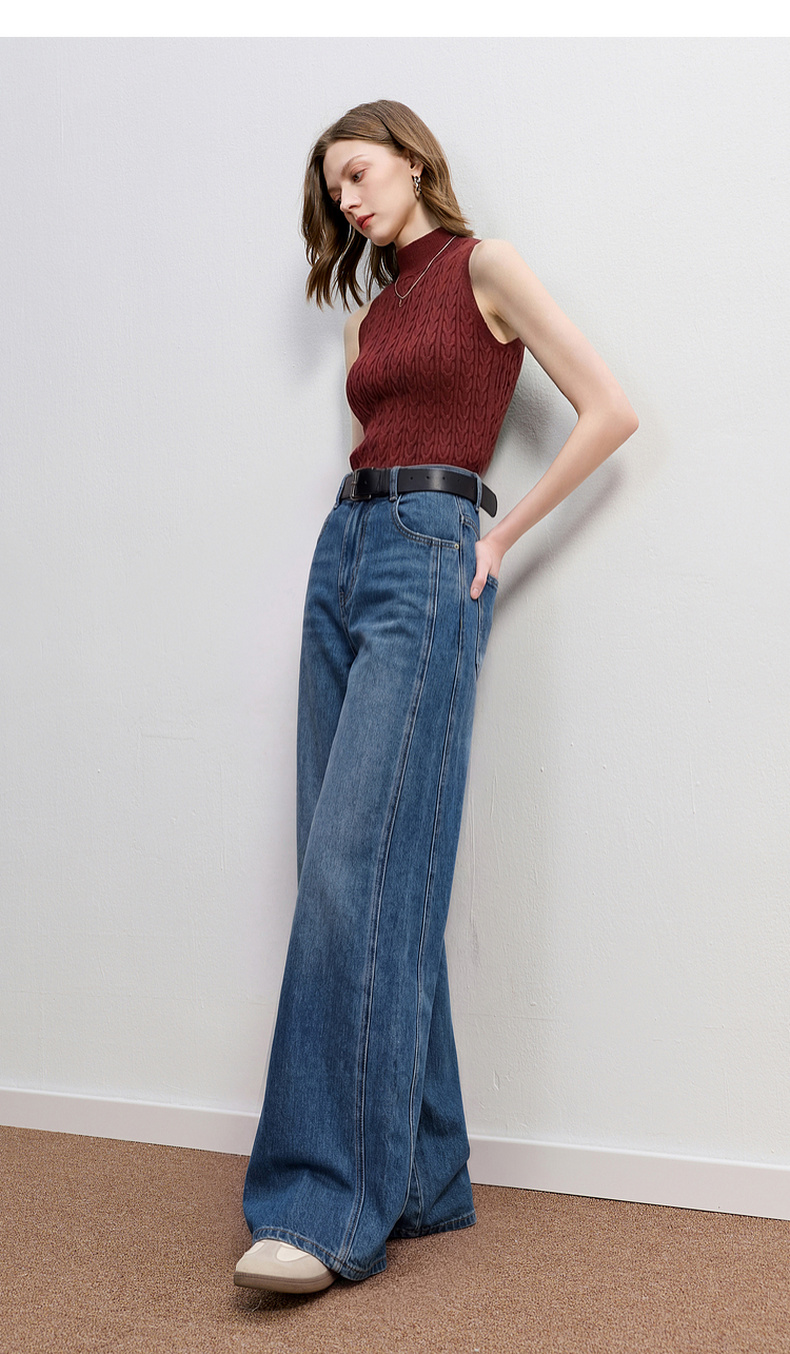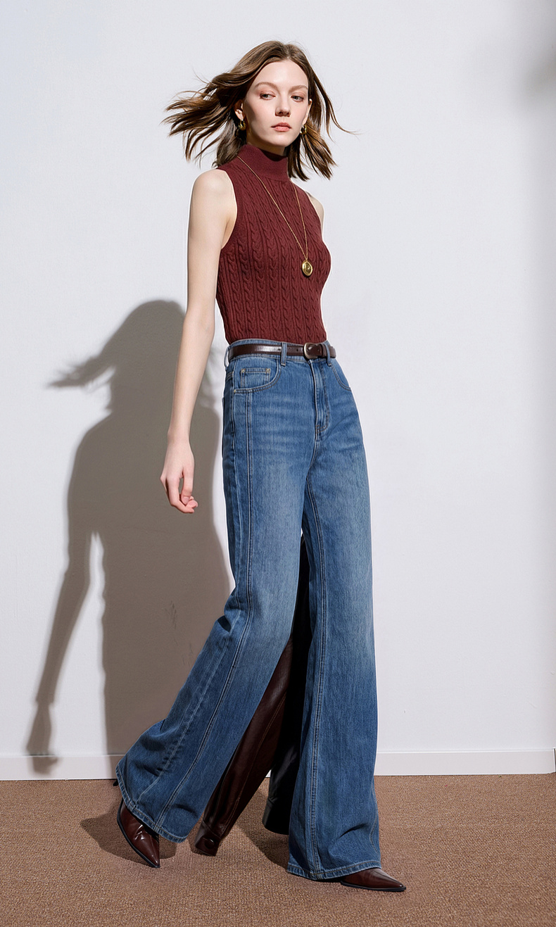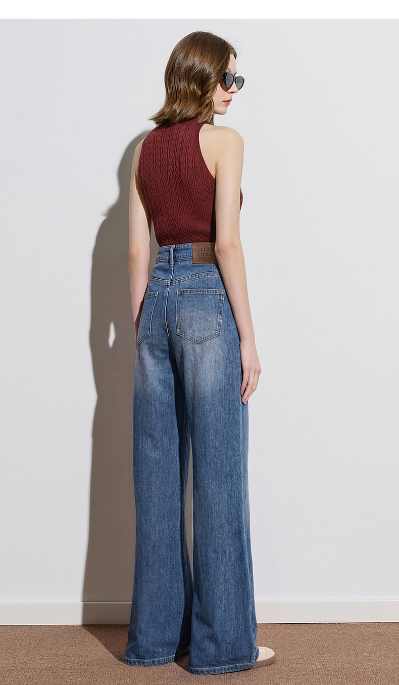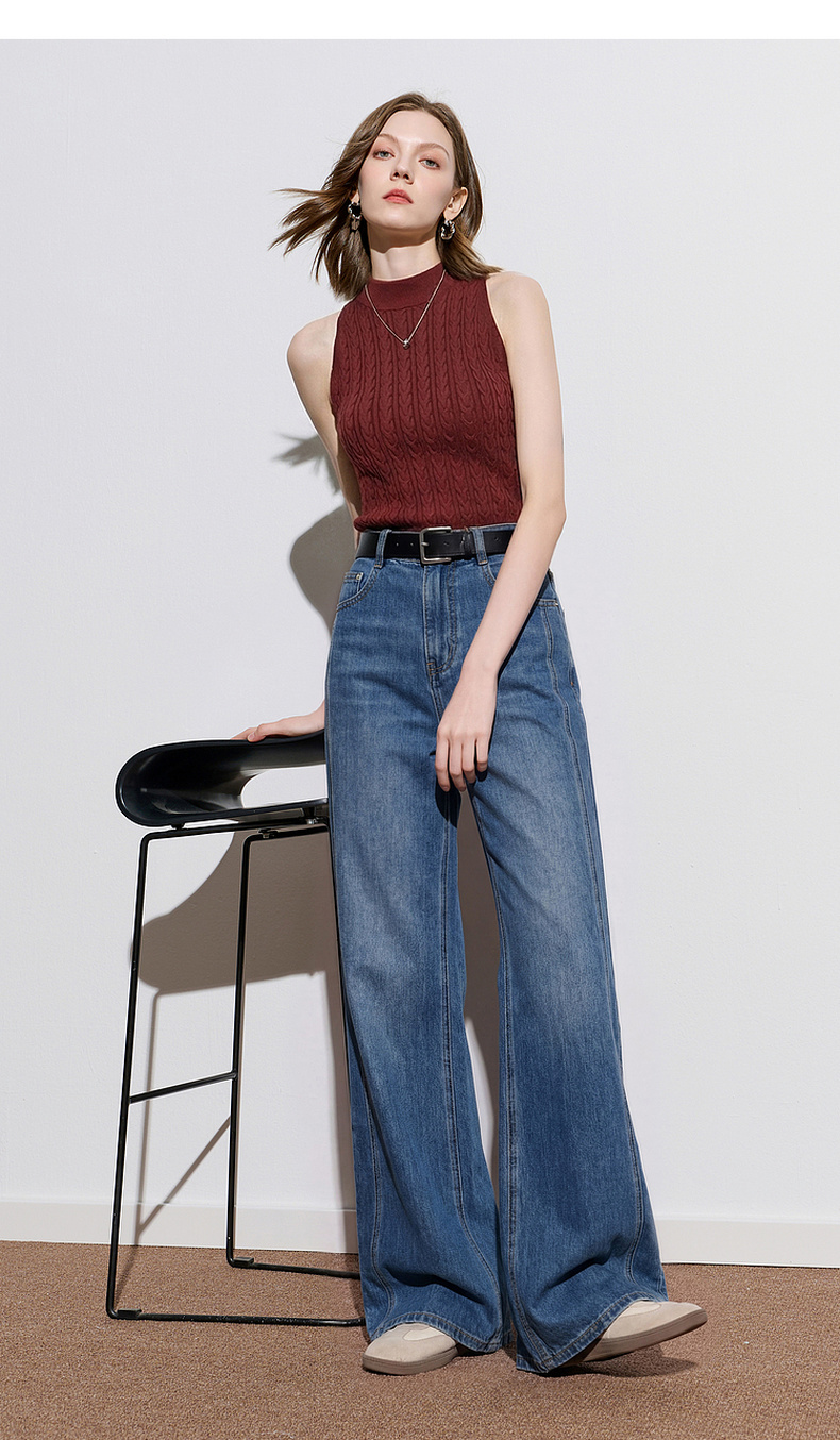 三彩2026夏季新款微喇牛仔裤收腰显瘦长裤摩登复古M