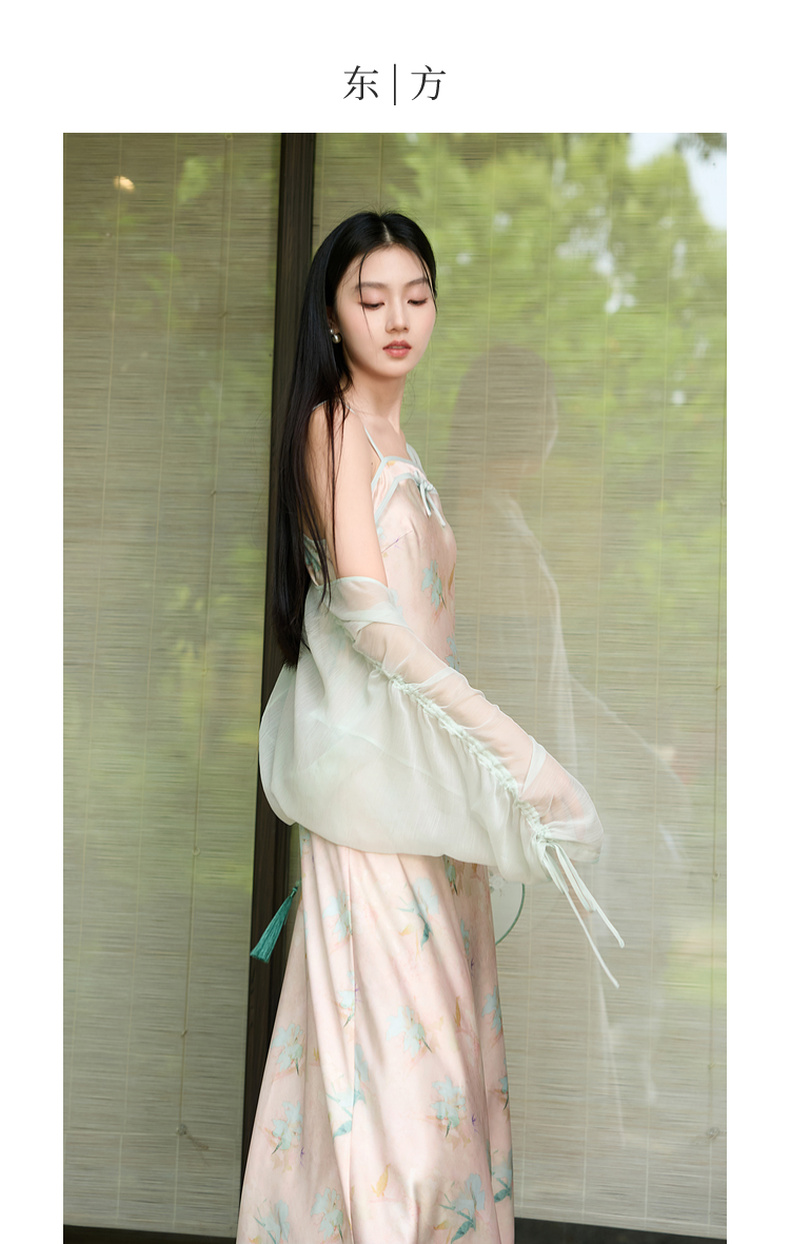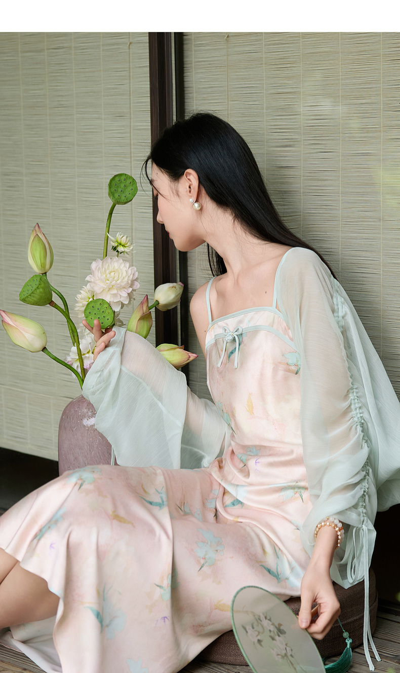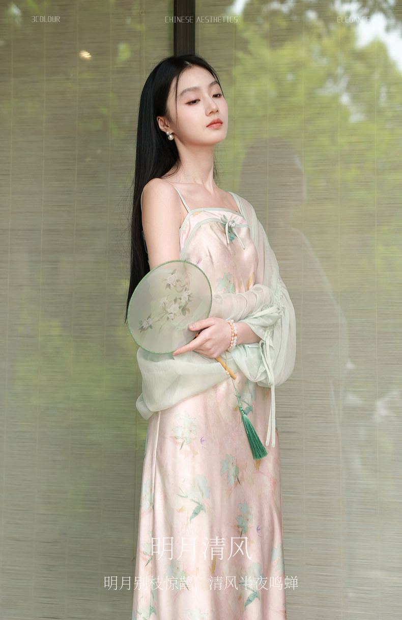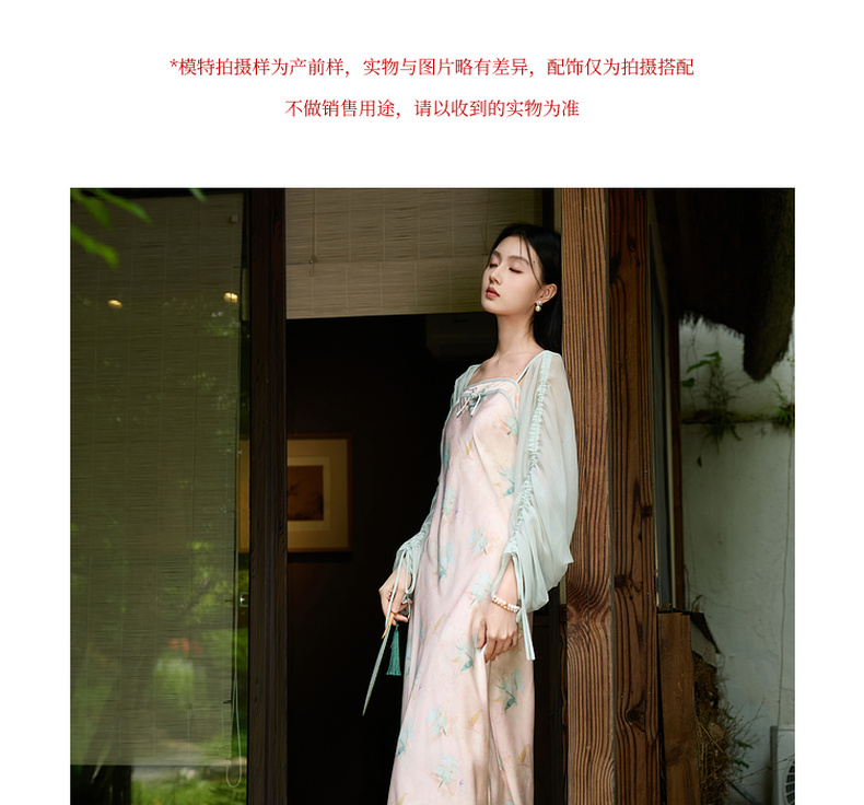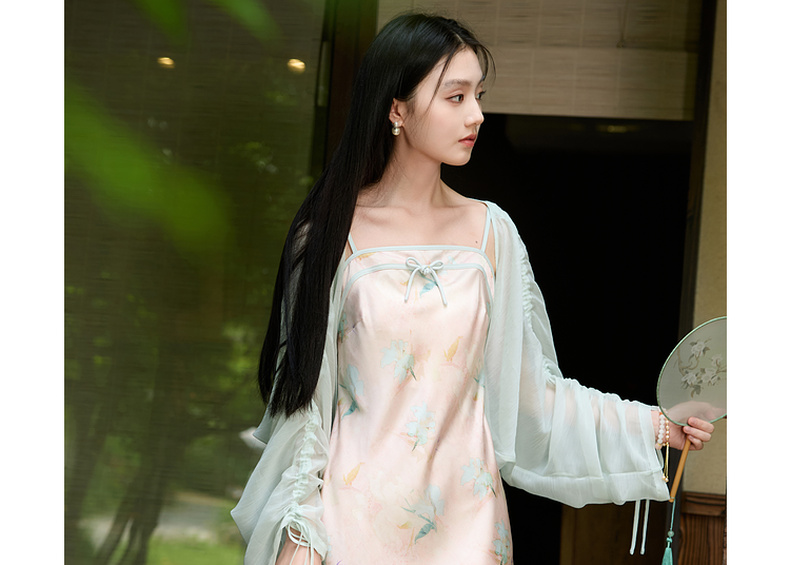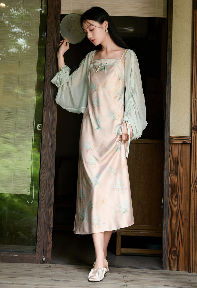 三彩【明月清风】2025夏季新款家居服套装吊带裙长裙罩衫开衫C