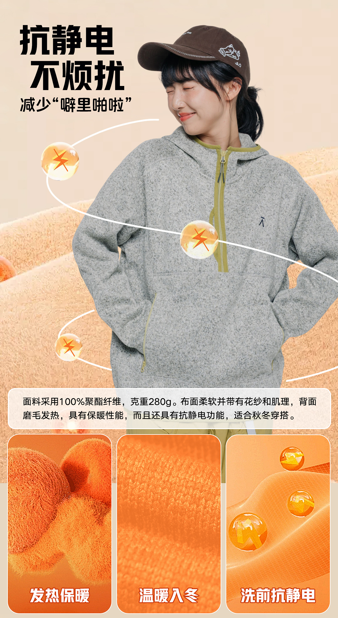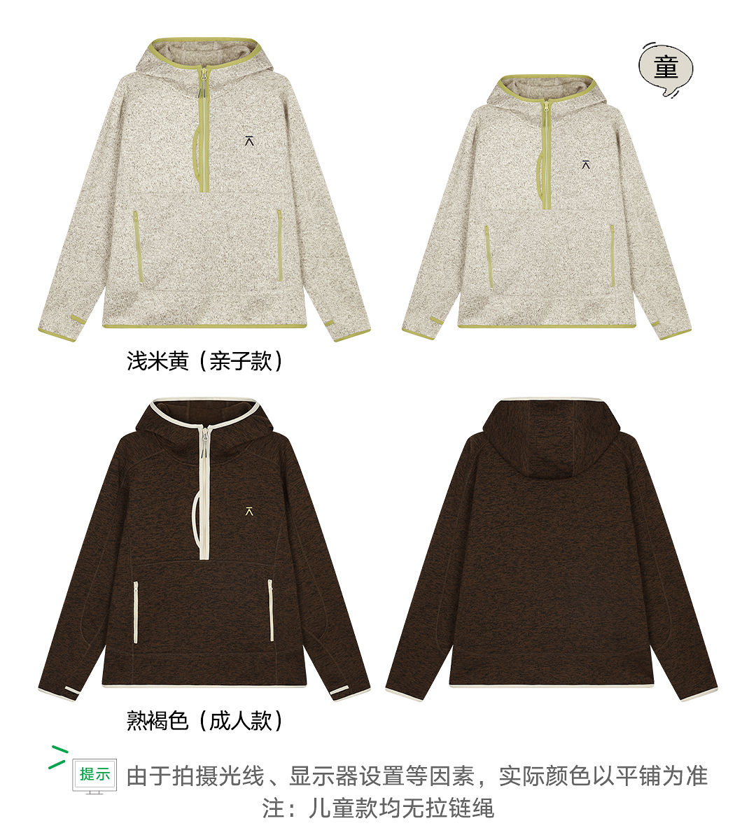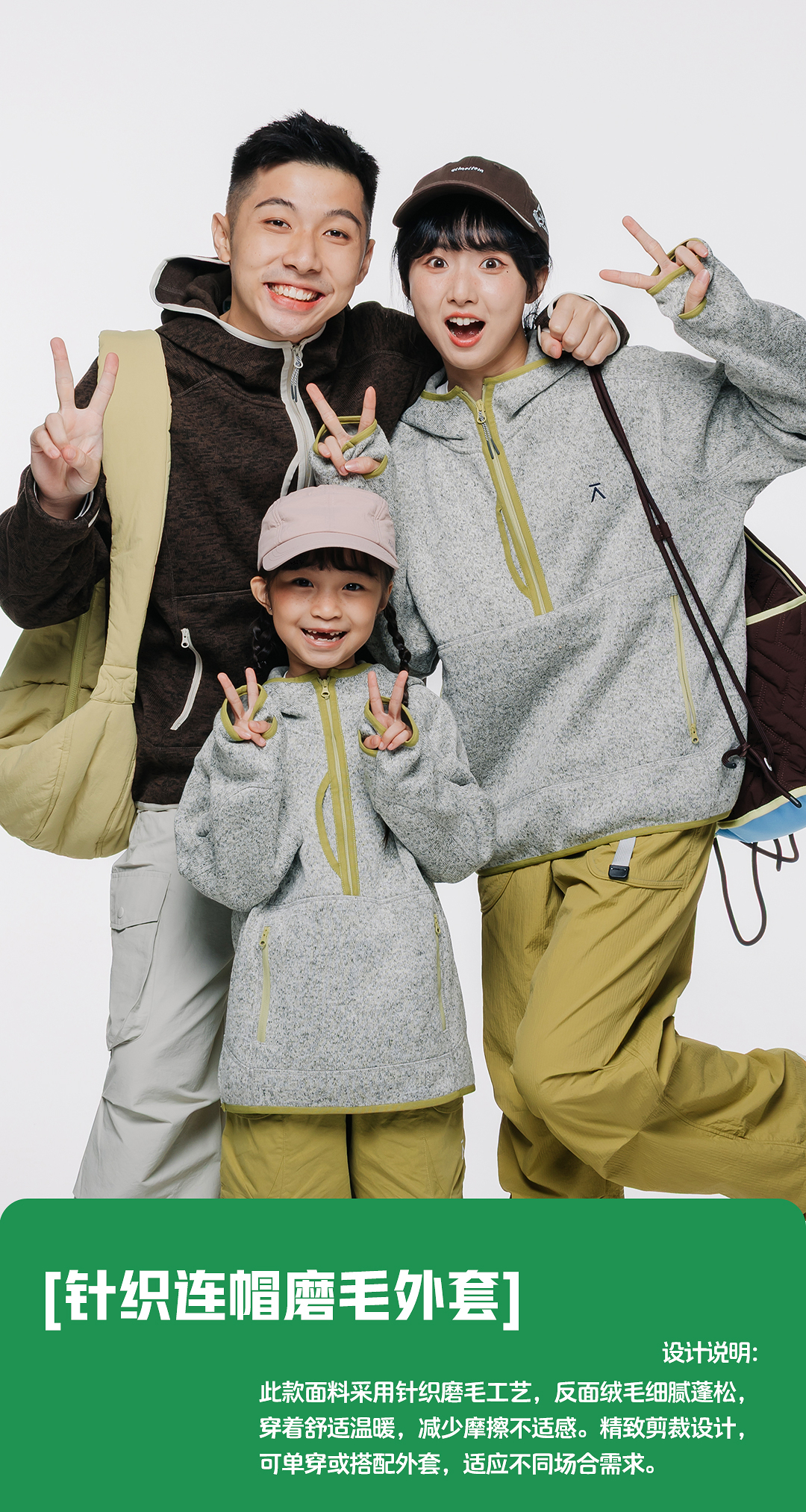 【品牌特惠】ACMEITEM爱棵米 户外亲子保暖抓绒连帽套头卫衣外套宽松上衣男女GAG3210655G/GAG3210685G