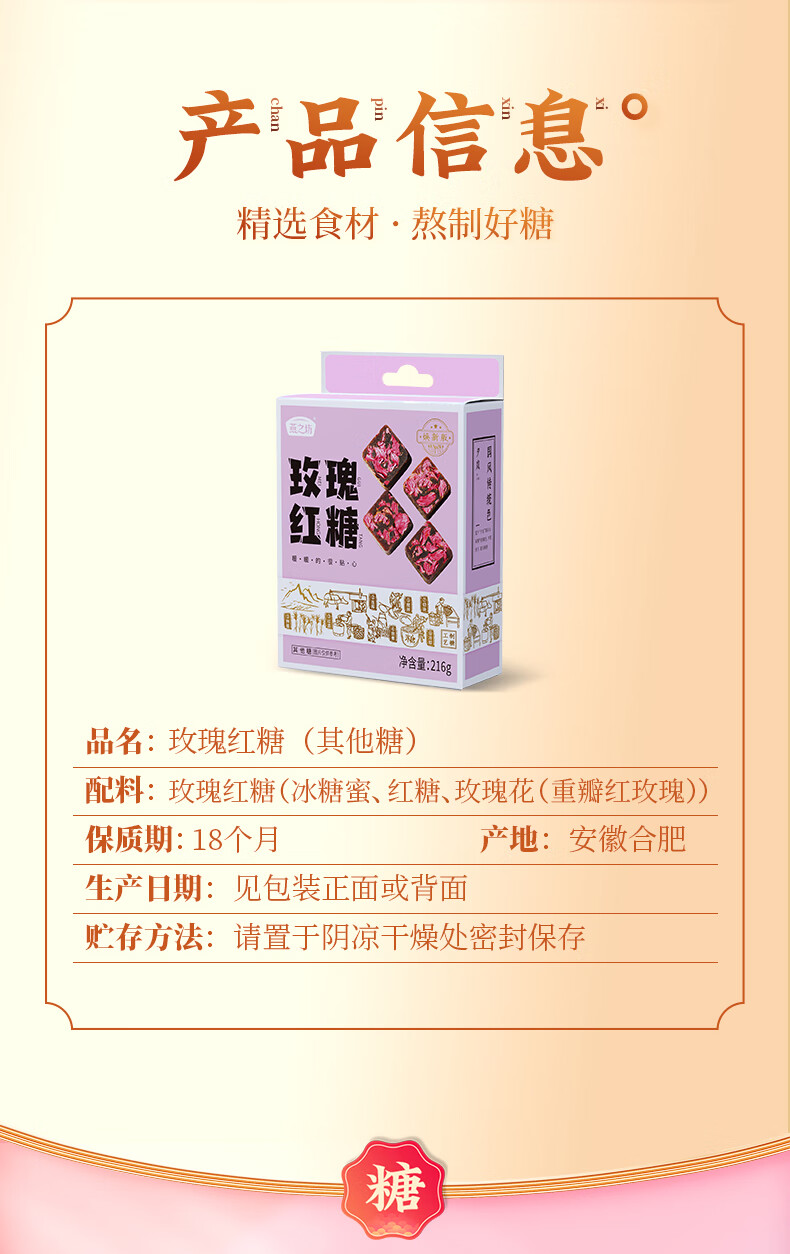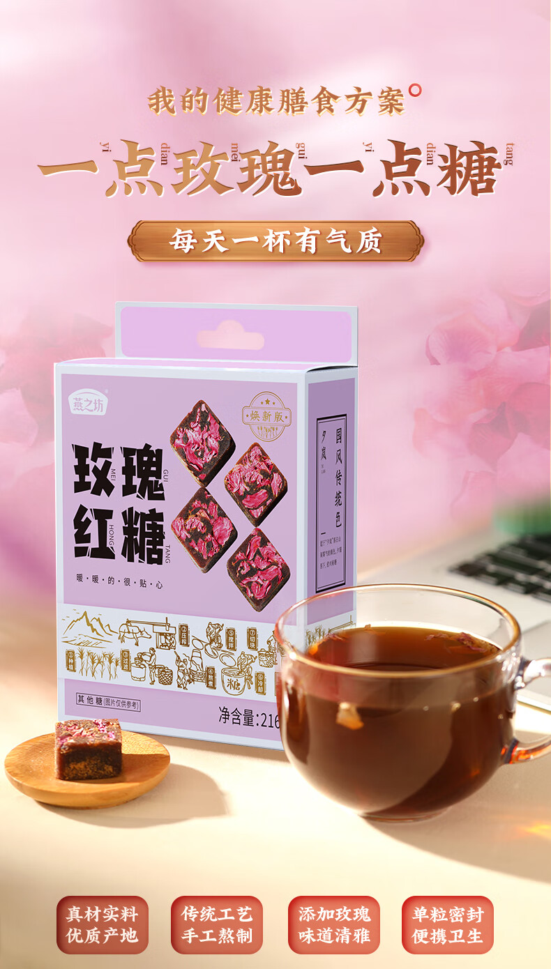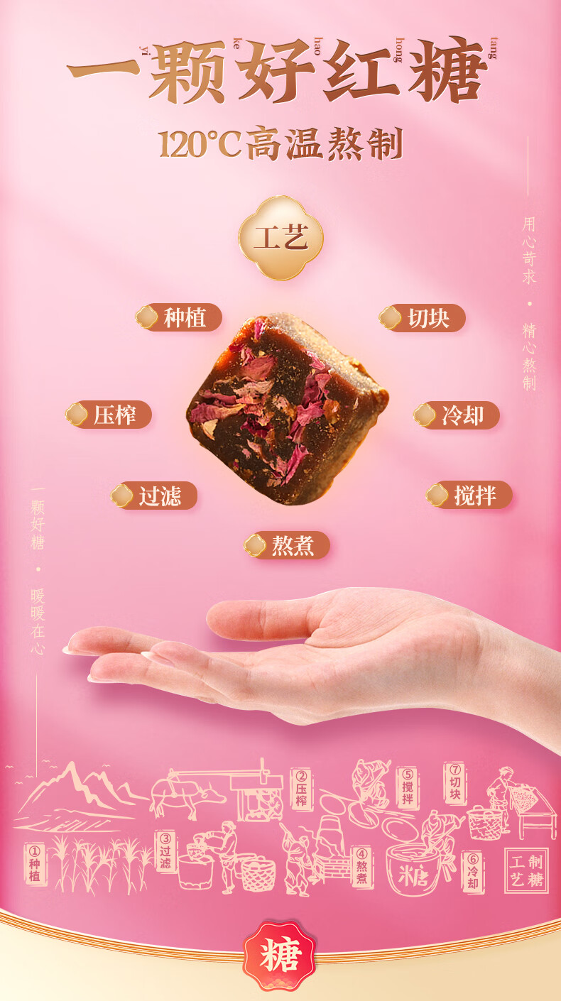 燕之坊 纯手工玫瑰红糖 216g 手工甘蔗古红糖