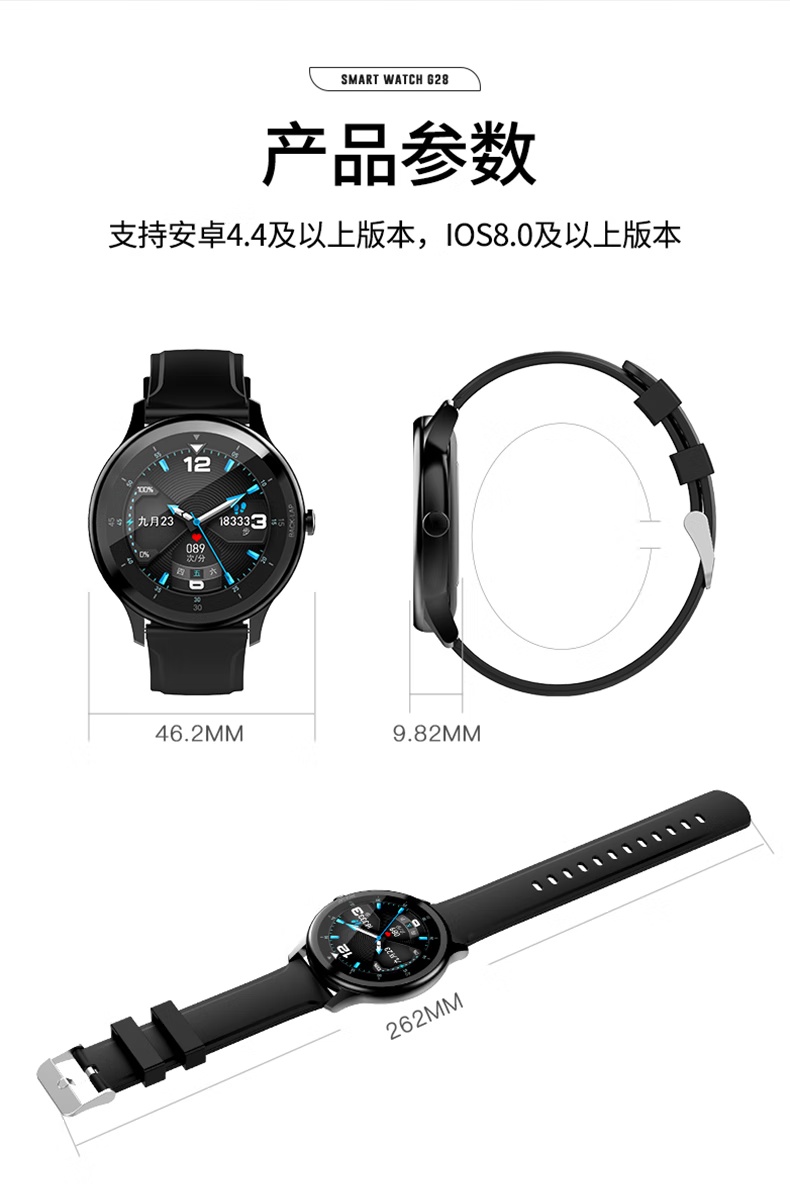 【加赠5条表带】多功能运动防水心率睡眠监测蓝牙智能手表 G28