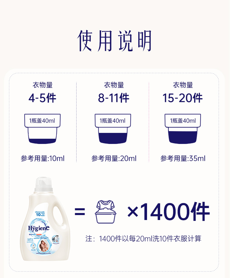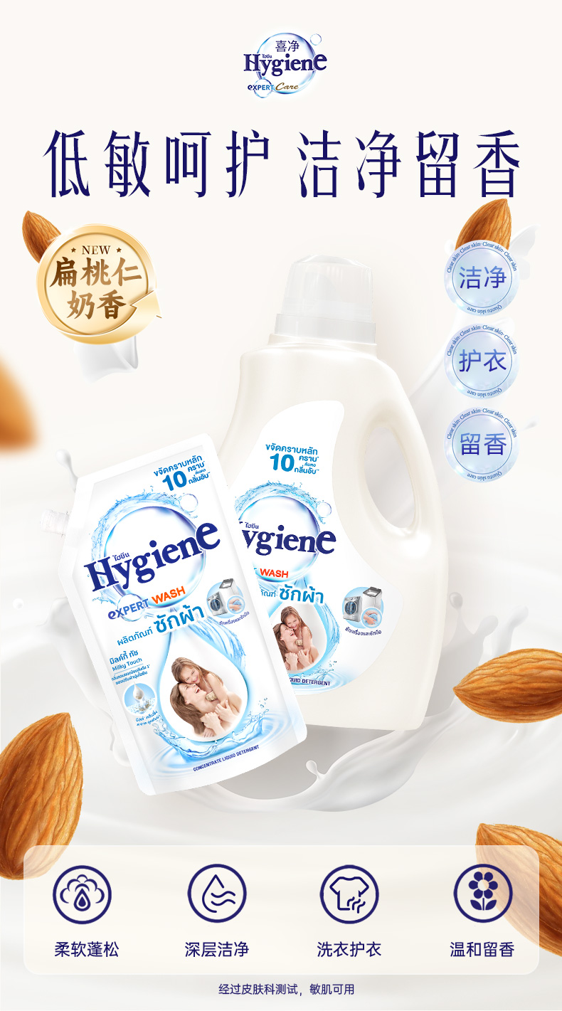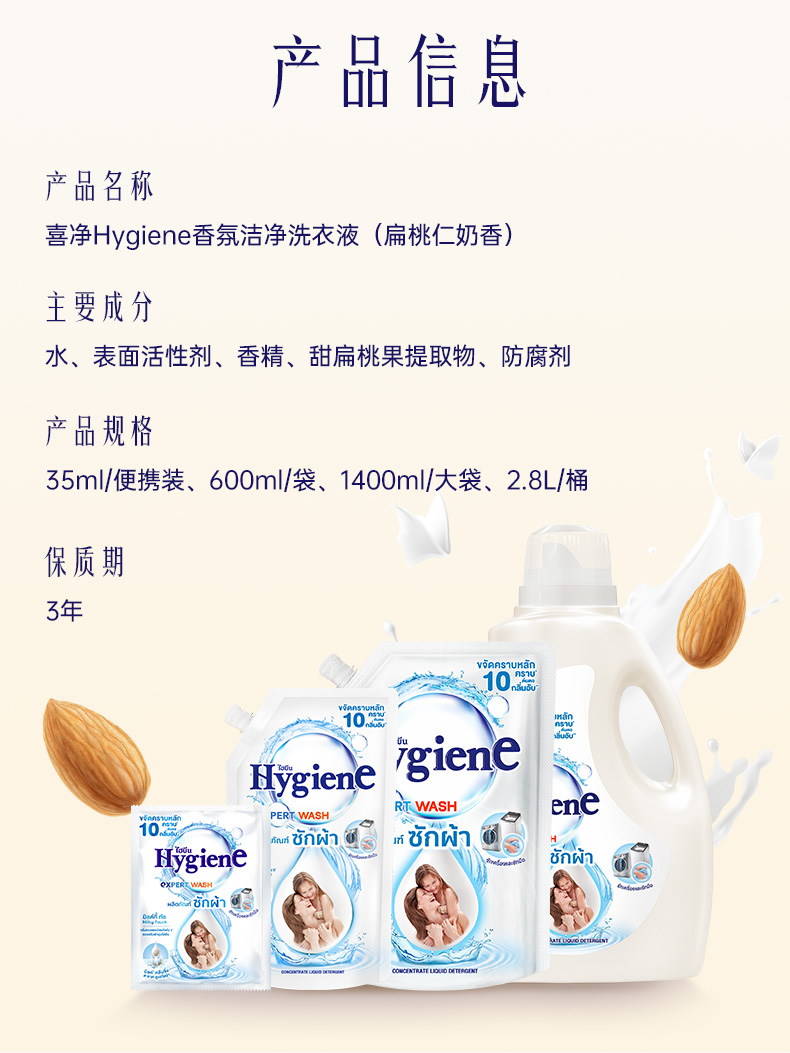 Hygiene喜净泰国原装进口扁桃仁奶香洗衣液1.4L 强效去污深层洁净留香_dr