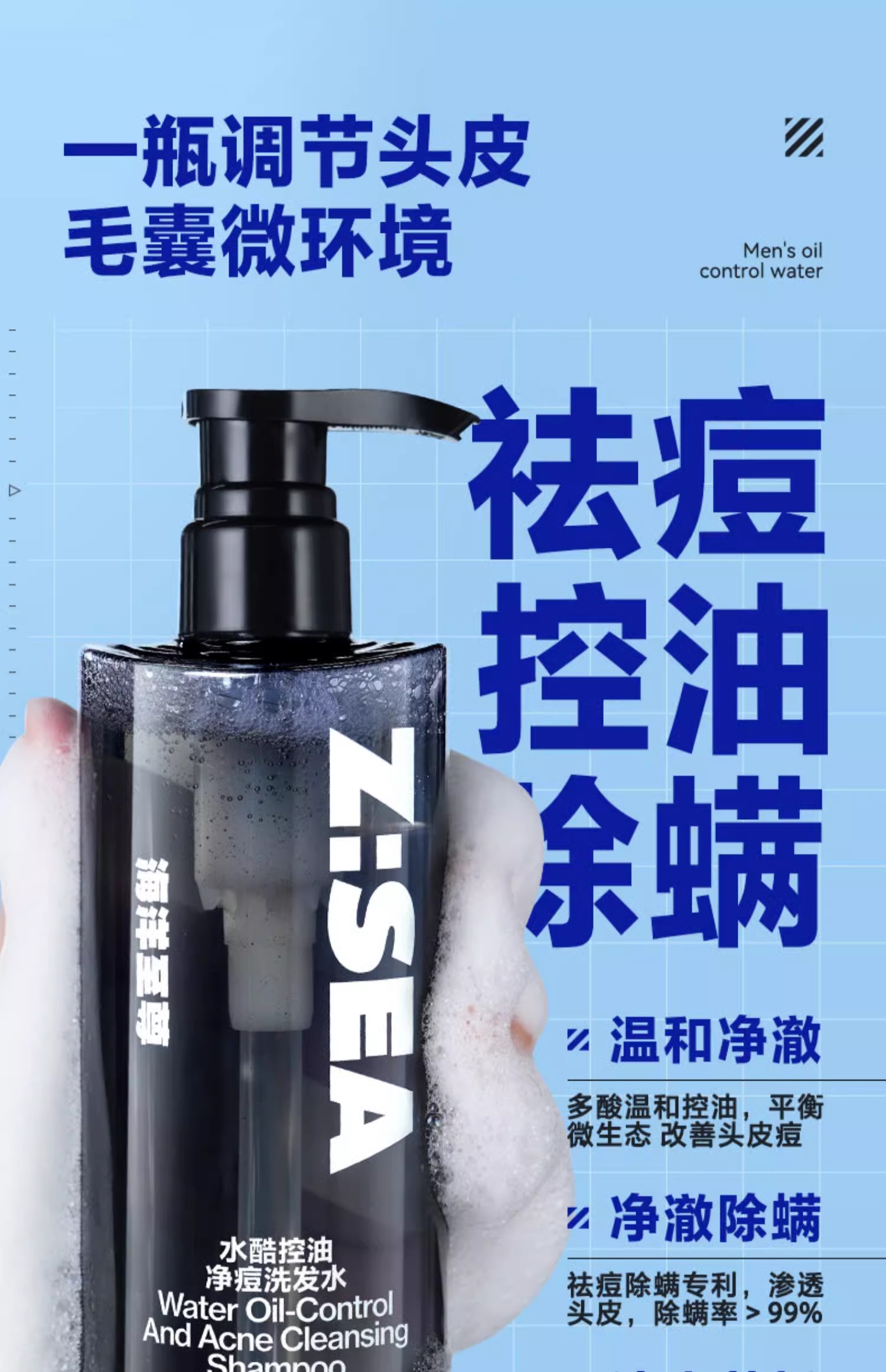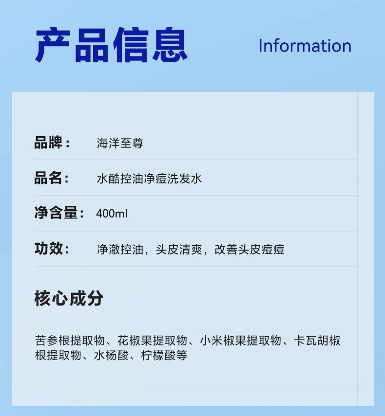 商城【男士洗护】海洋至尊水酷控油净痘洗发水