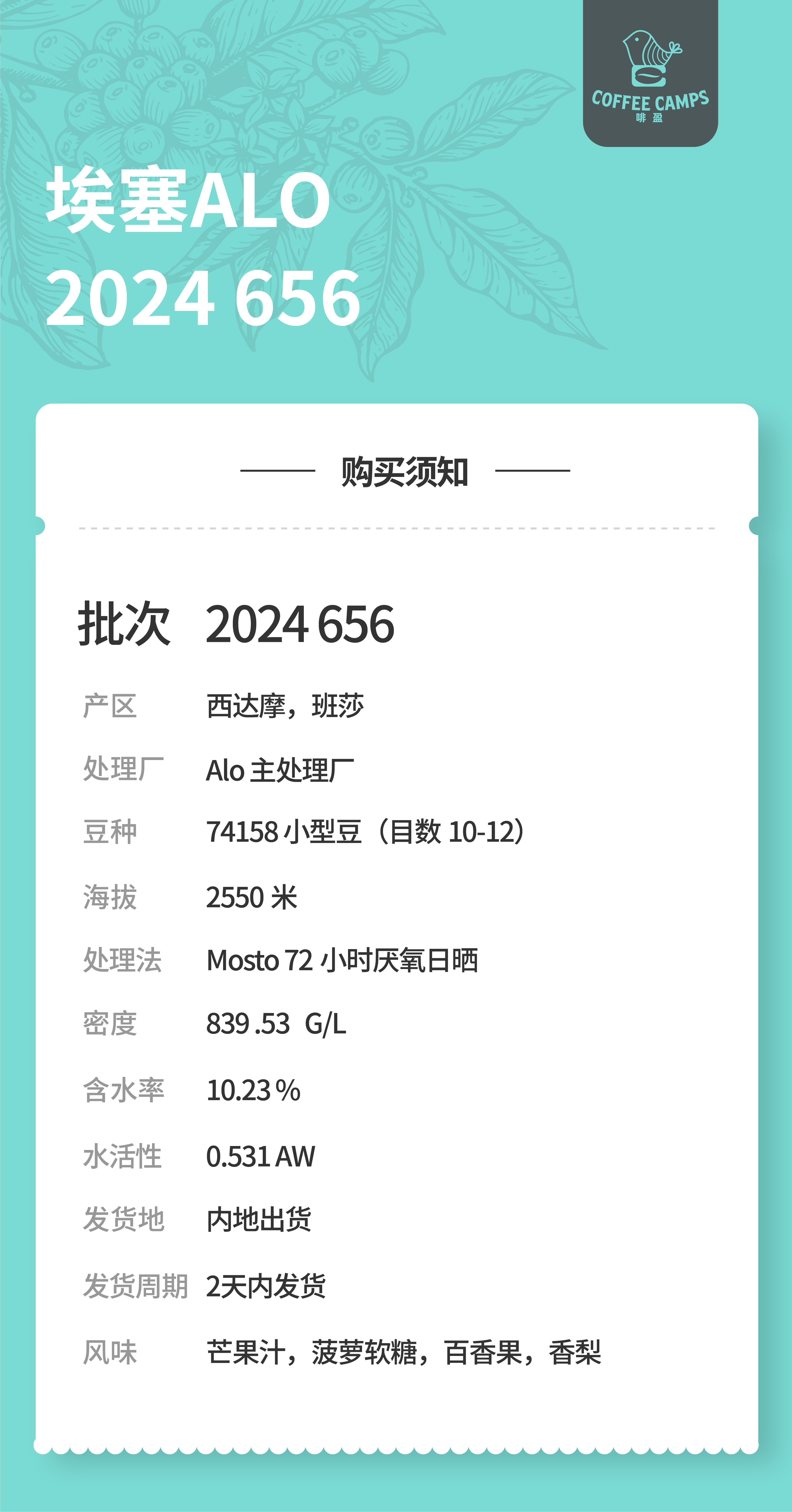 24产季 埃塞 阿洛 Alo 656 72小时厌氧日晒(生豆)空运批次