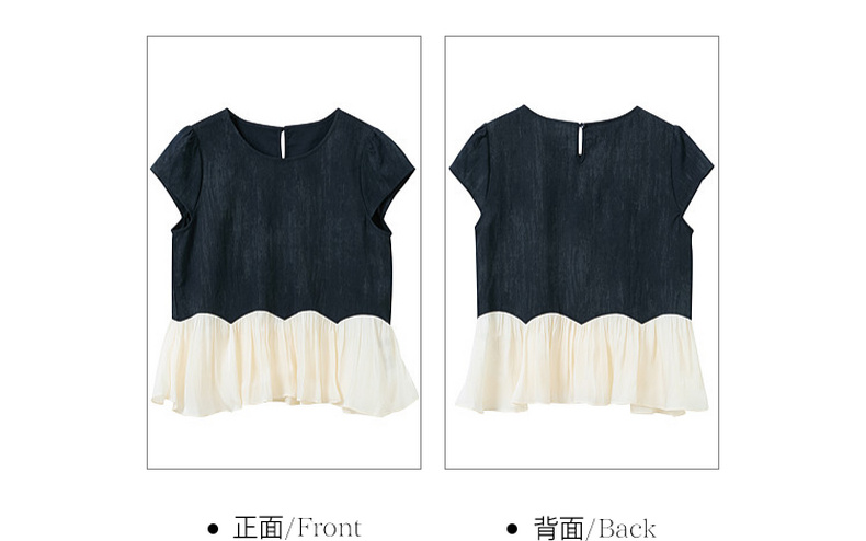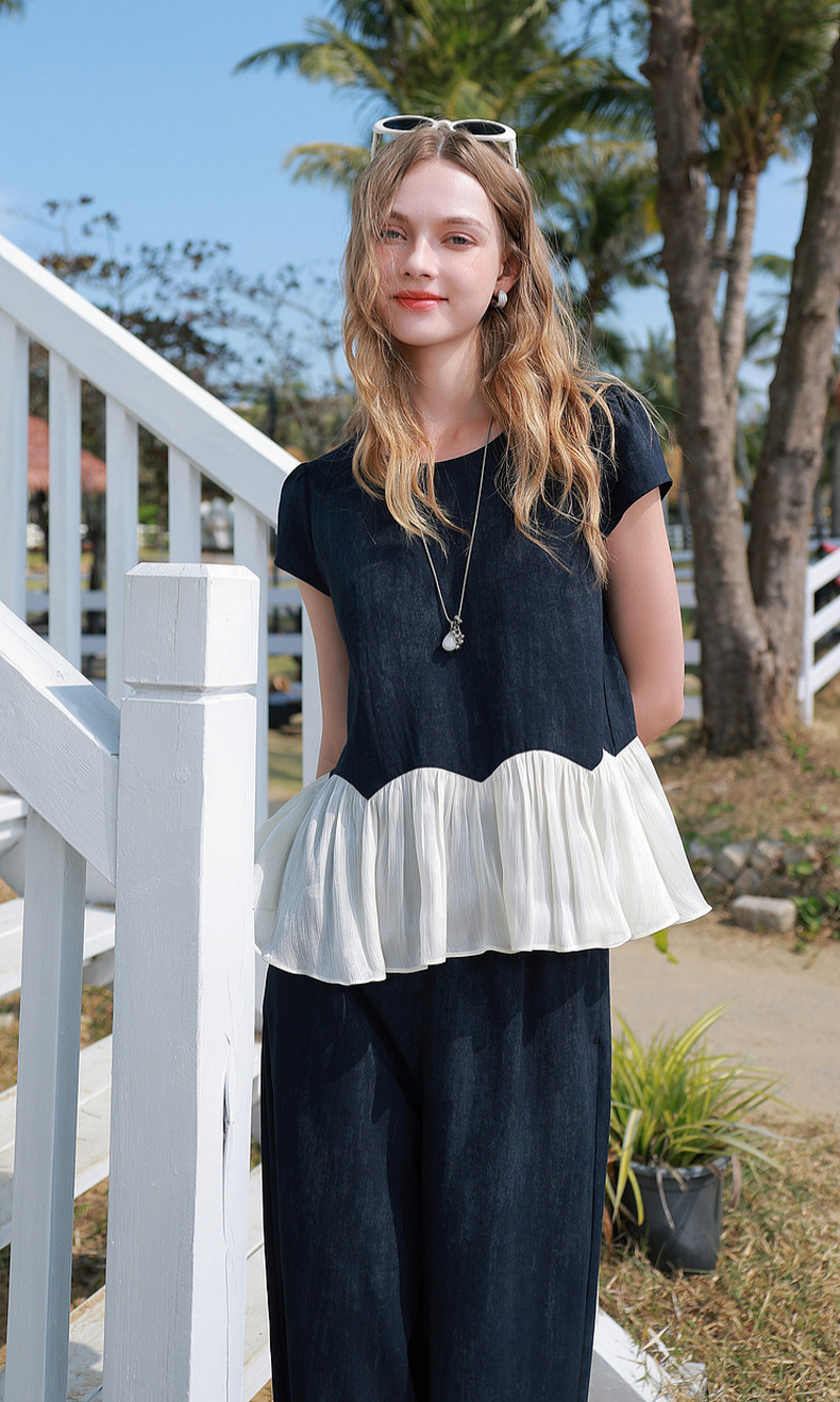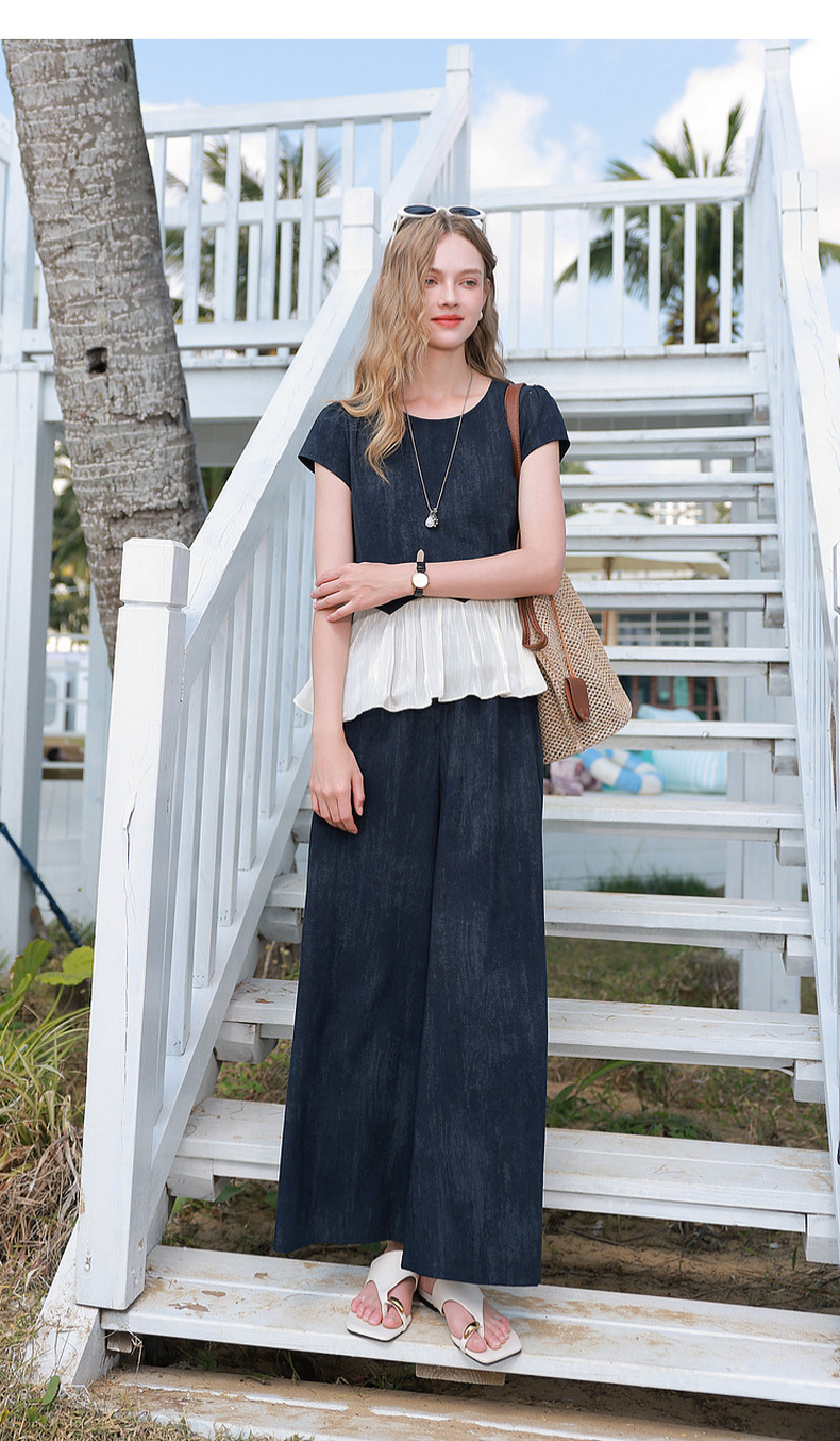 三彩2026夏季新款休闲两件套圆领短袖上衣高腰宽松九分裤套装M