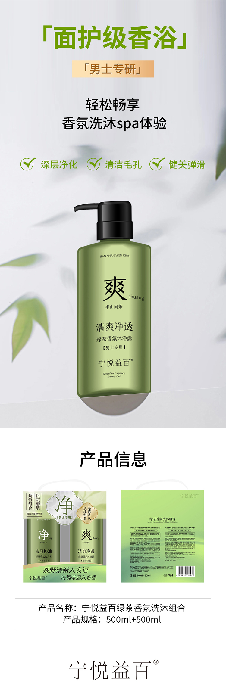 宁悦益百绿茶香氛洗沐组合+宁悦益百男士控油劲爽多效面膜