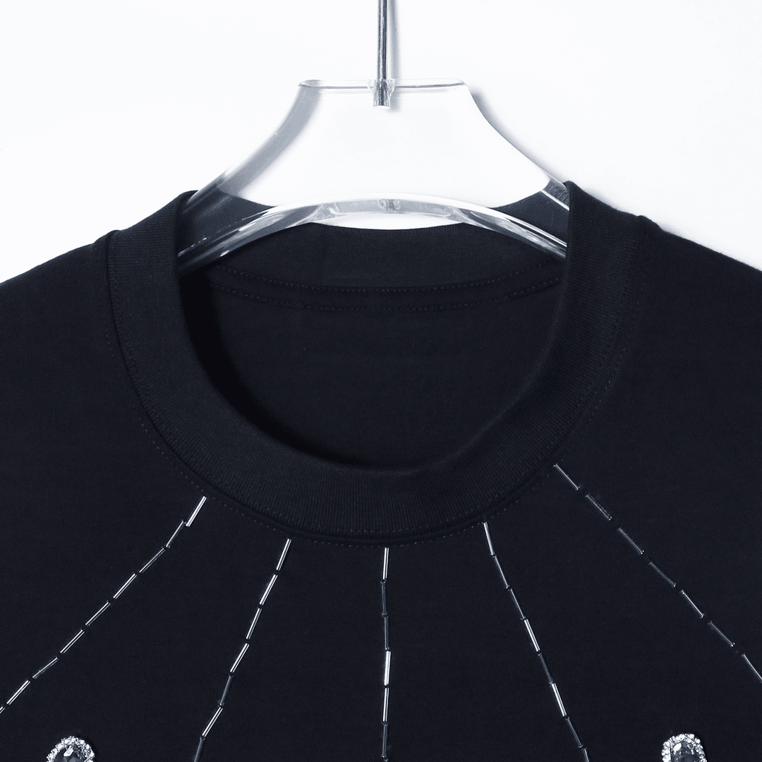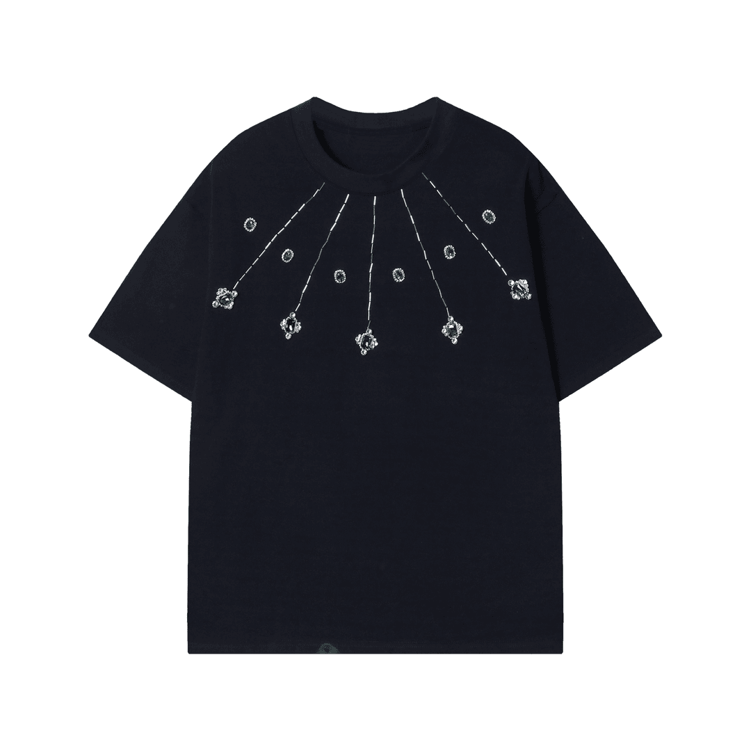 T1331夏季新款潮流设计金属装饰烫钻男士短袖百搭宽松休闲上衣复古T恤