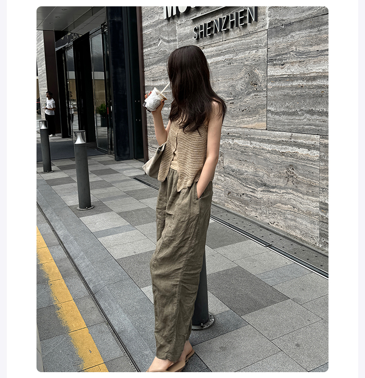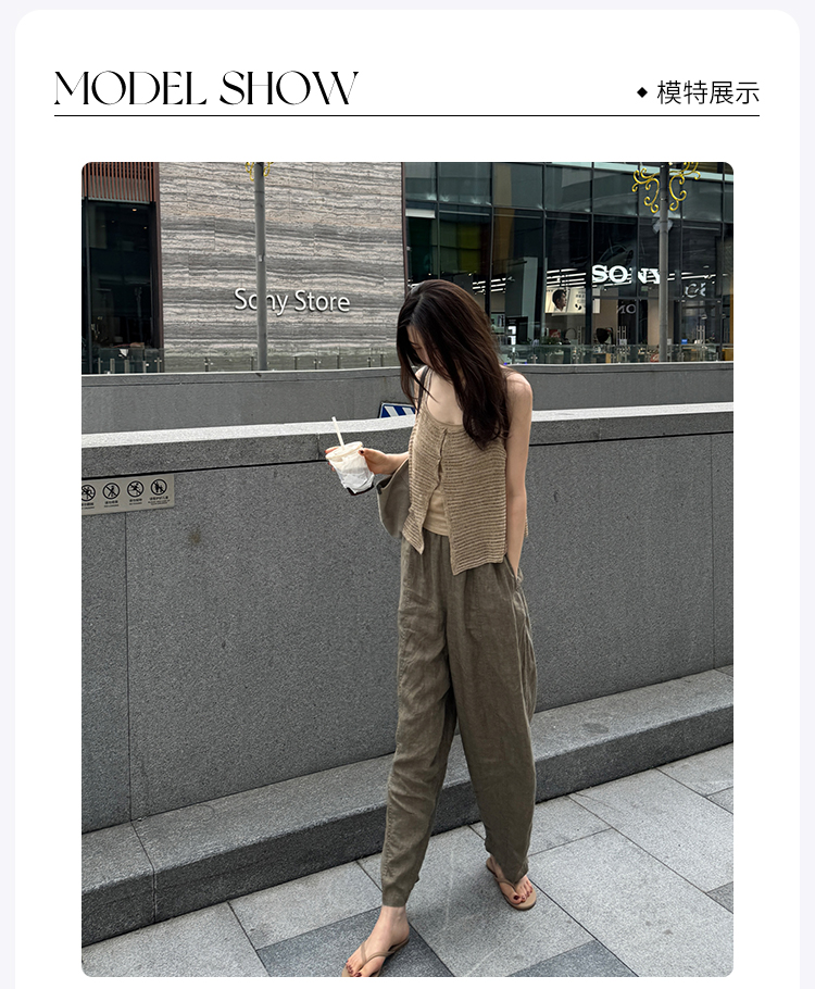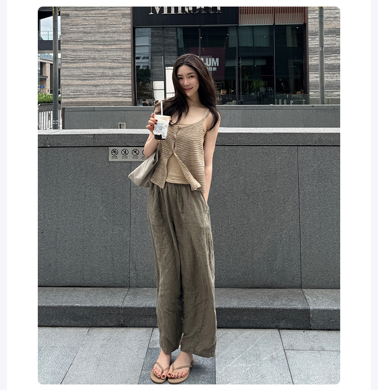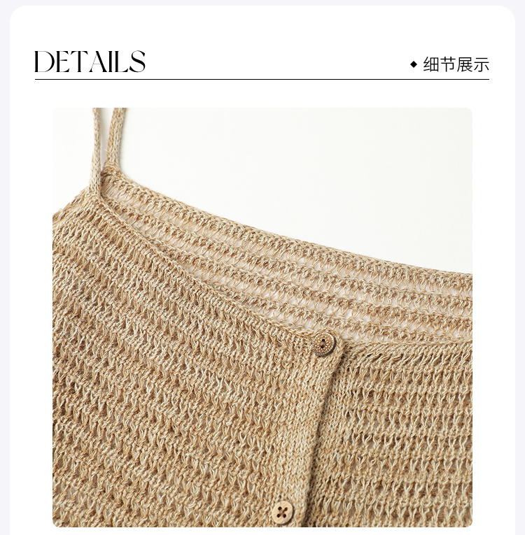 ROMI STUDIO “纵横交织” 7针亚麻棉混纺针织吊带背心开衫422A7089【发货时效25天】