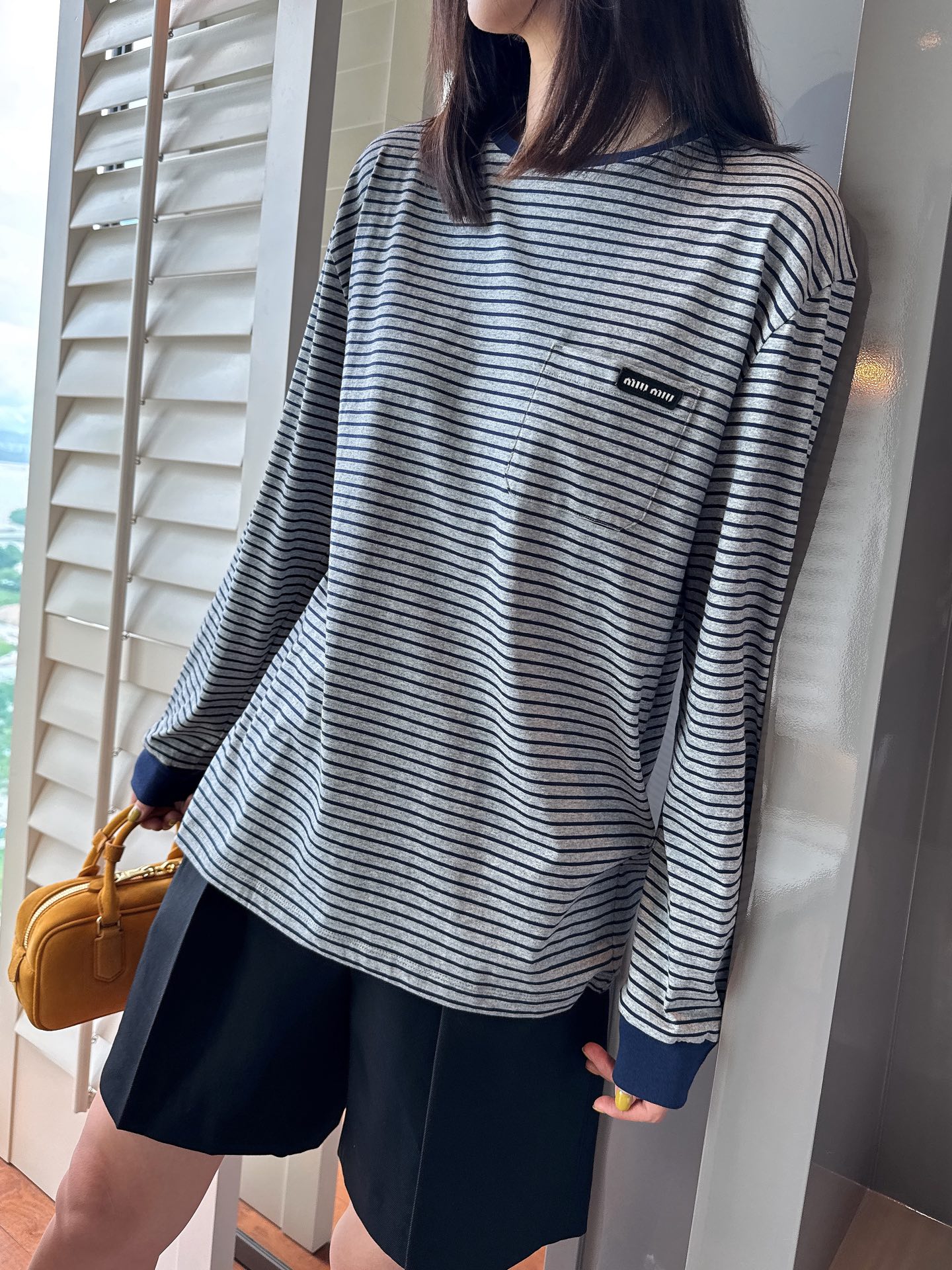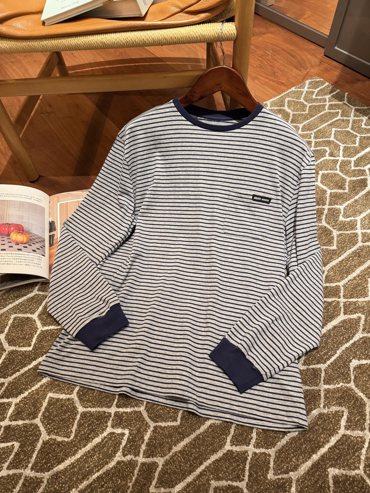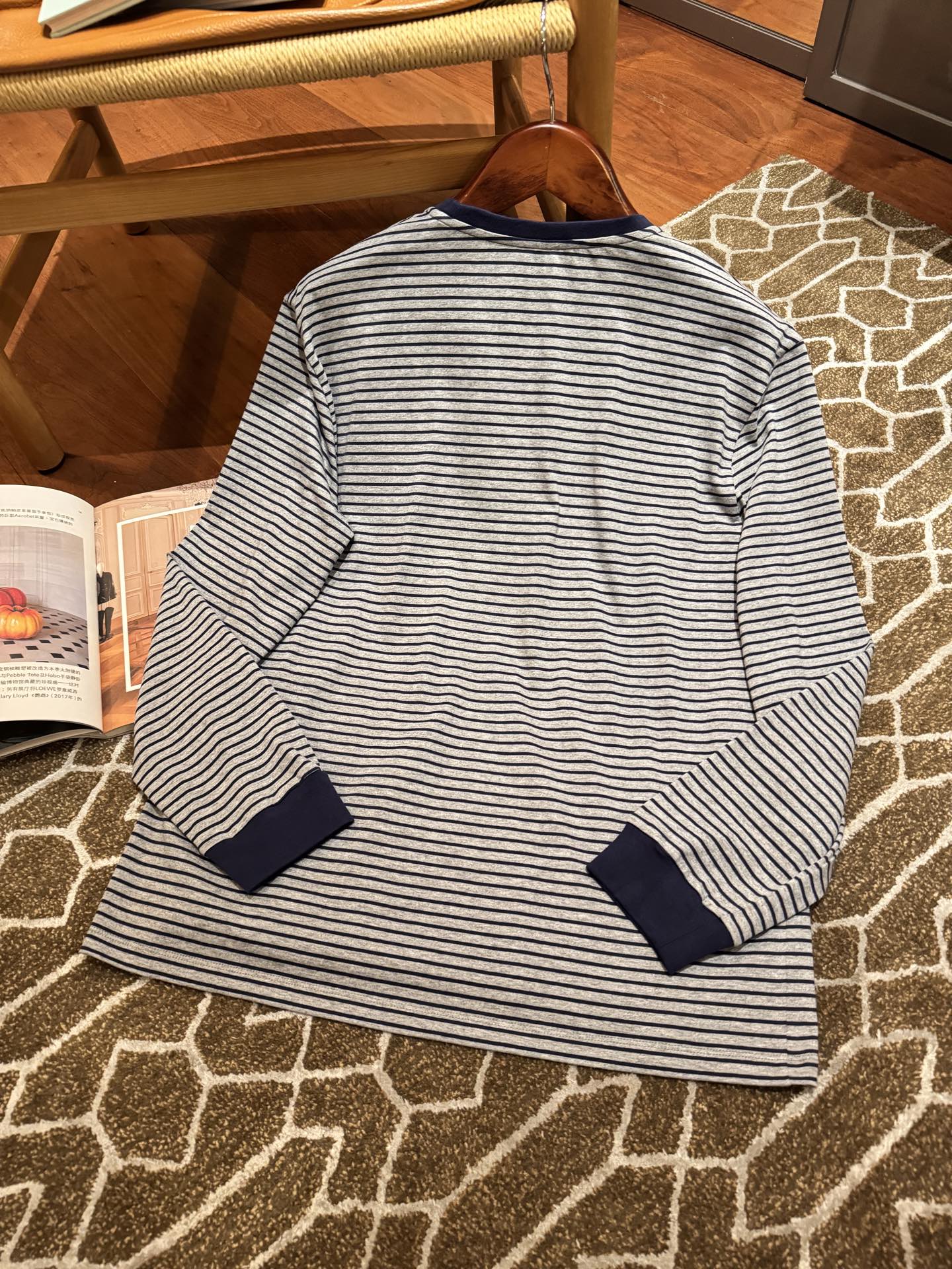 25年秋冬最新POP限定款🆕条纹T恤, 轻质柔软的长袖上衣,简约基础版内搭无敌,单穿或叠穿也很nice,手感无敌好, 胸前口袋处简洁刺绣徽标作为点缀,完美遮肉肉,蓝灰配色上身真的很显白很洋气, 松弛感拉满还暗藏精致感,完美不挑身材🤩 很极简高级,质感很在线👍🏻码数SML