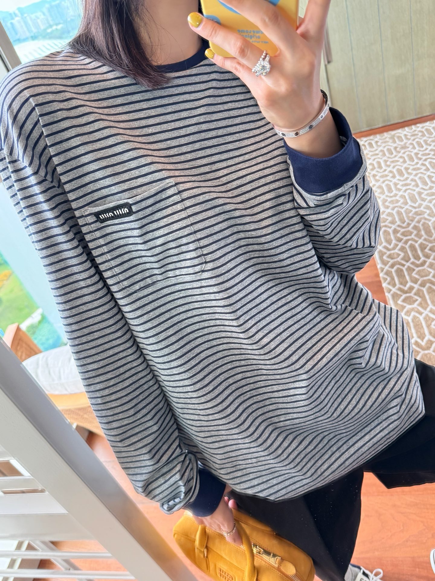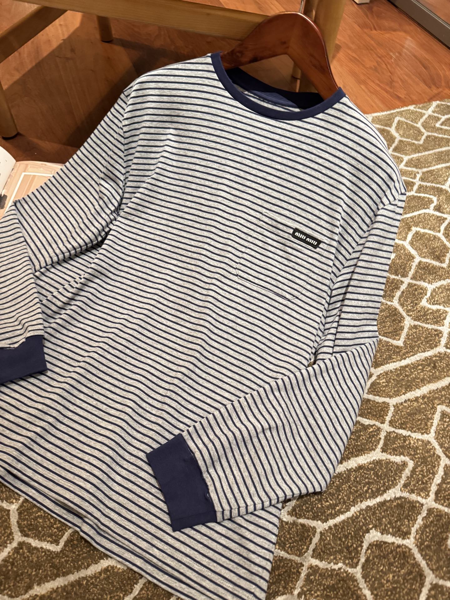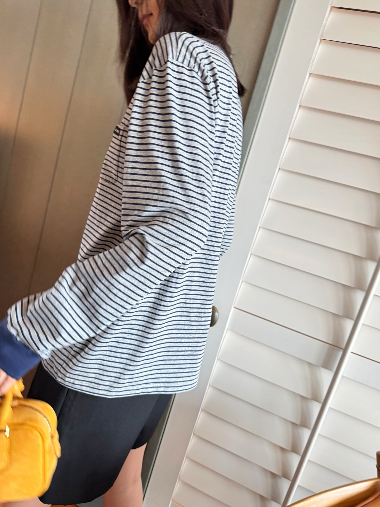 25年秋冬最新POP限定款🆕条纹T恤, 轻质柔软的长袖上衣,简约基础版内搭无敌,单穿或叠穿也很nice,手感无敌好, 胸前口袋处简洁刺绣徽标作为点缀,完美遮肉肉,蓝灰配色上身真的很显白很洋气, 松弛感拉满还暗藏精致感,完美不挑身材🤩 很极简高级,质感很在线👍🏻码数SML