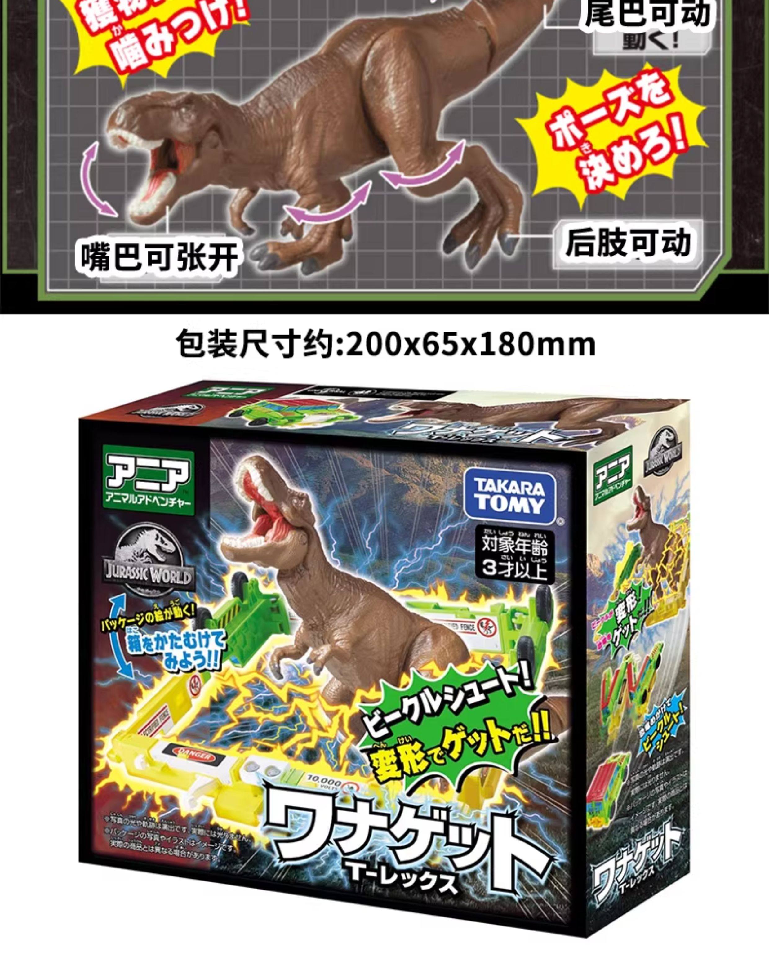 TOMY多美卡安利亚侏罗纪世界捕龙车帝王暴龙霸王龙恐龙动物模型