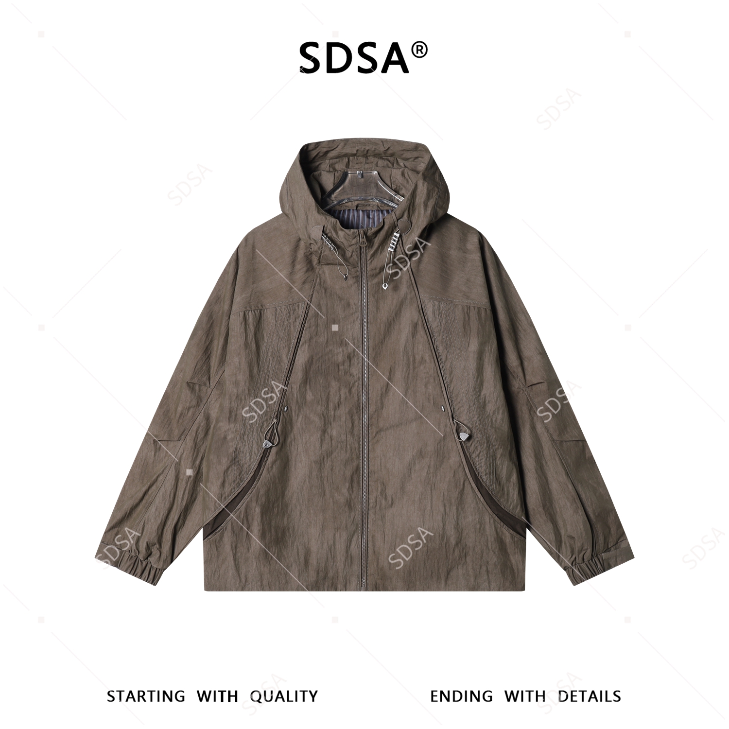 SDSA男士春夏新款痞帅男装美式时尚拼接拉链立领连帽夹克外套百搭
