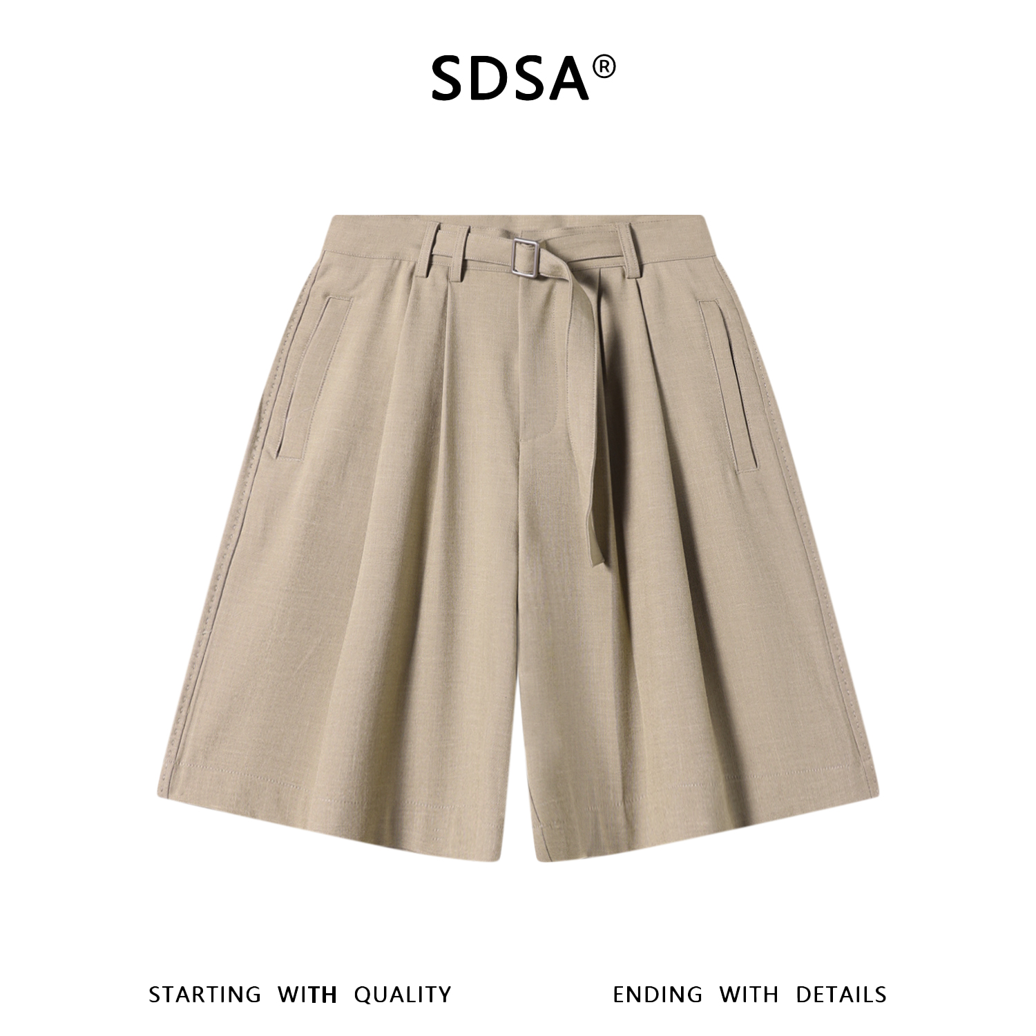 SDSA男装2026新款高贵轻奢美式复古腰带褶皱垂感西装短裤百搭宽松