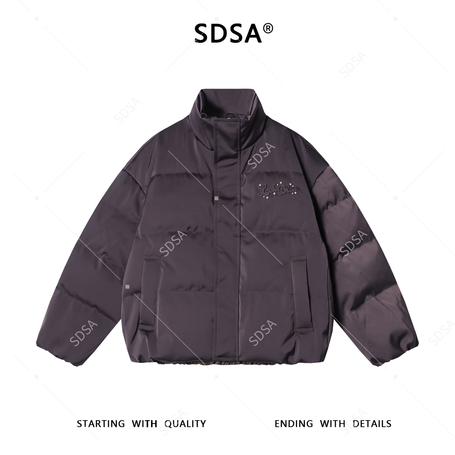 85088SDSA男士秋冬新款痞帅男装美式珠子字母羽绒服外套立领百搭高街