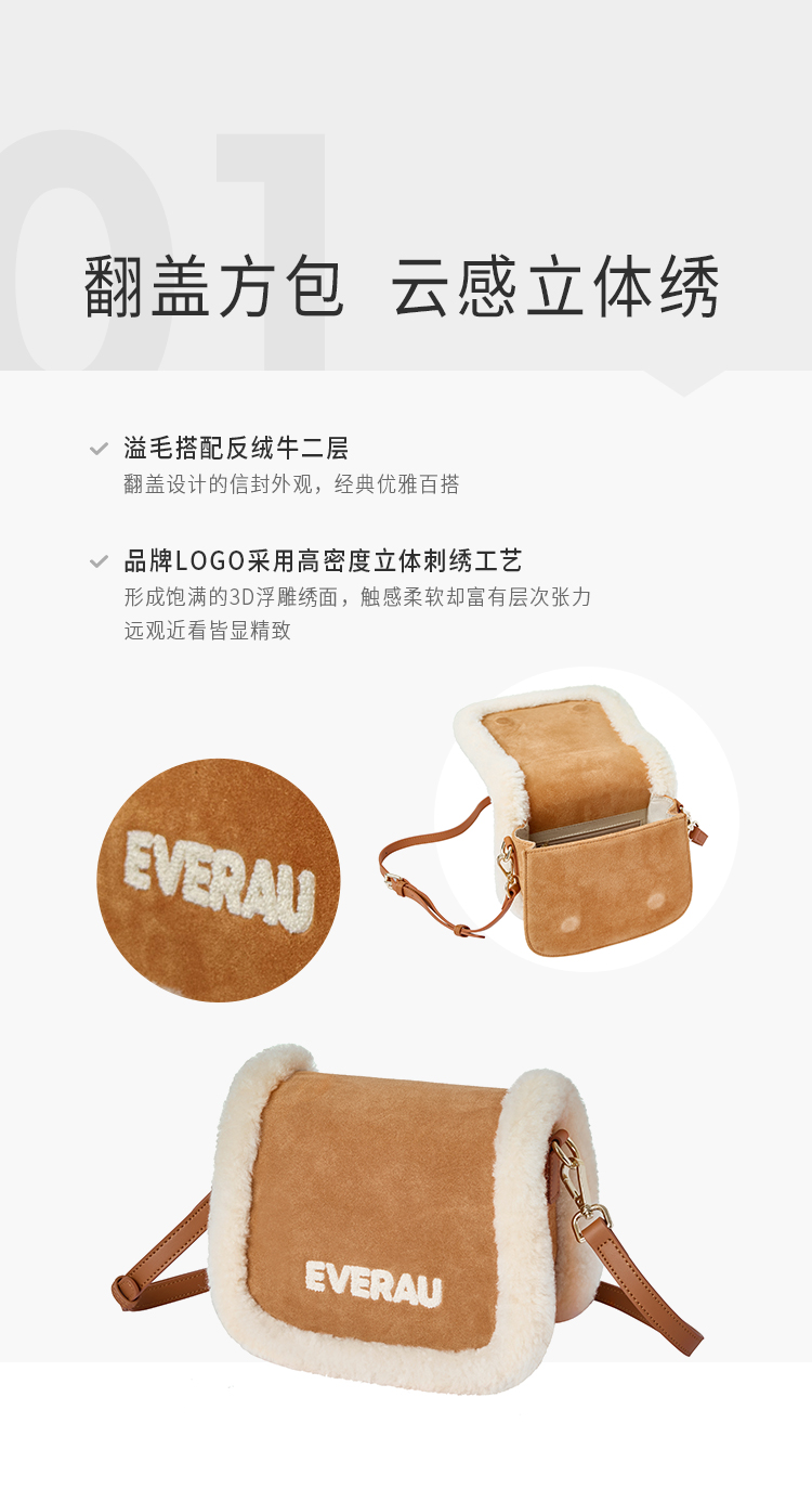 【澳洲品牌】EVERAU 雪绒肉桂挎包EAA034