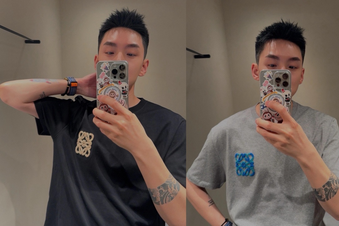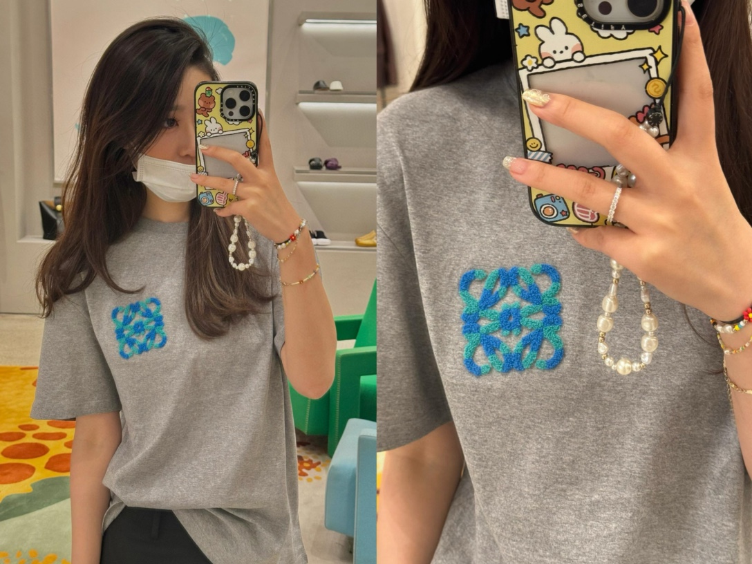 罗家 三色绒绒绣花圆领短袖(JN)