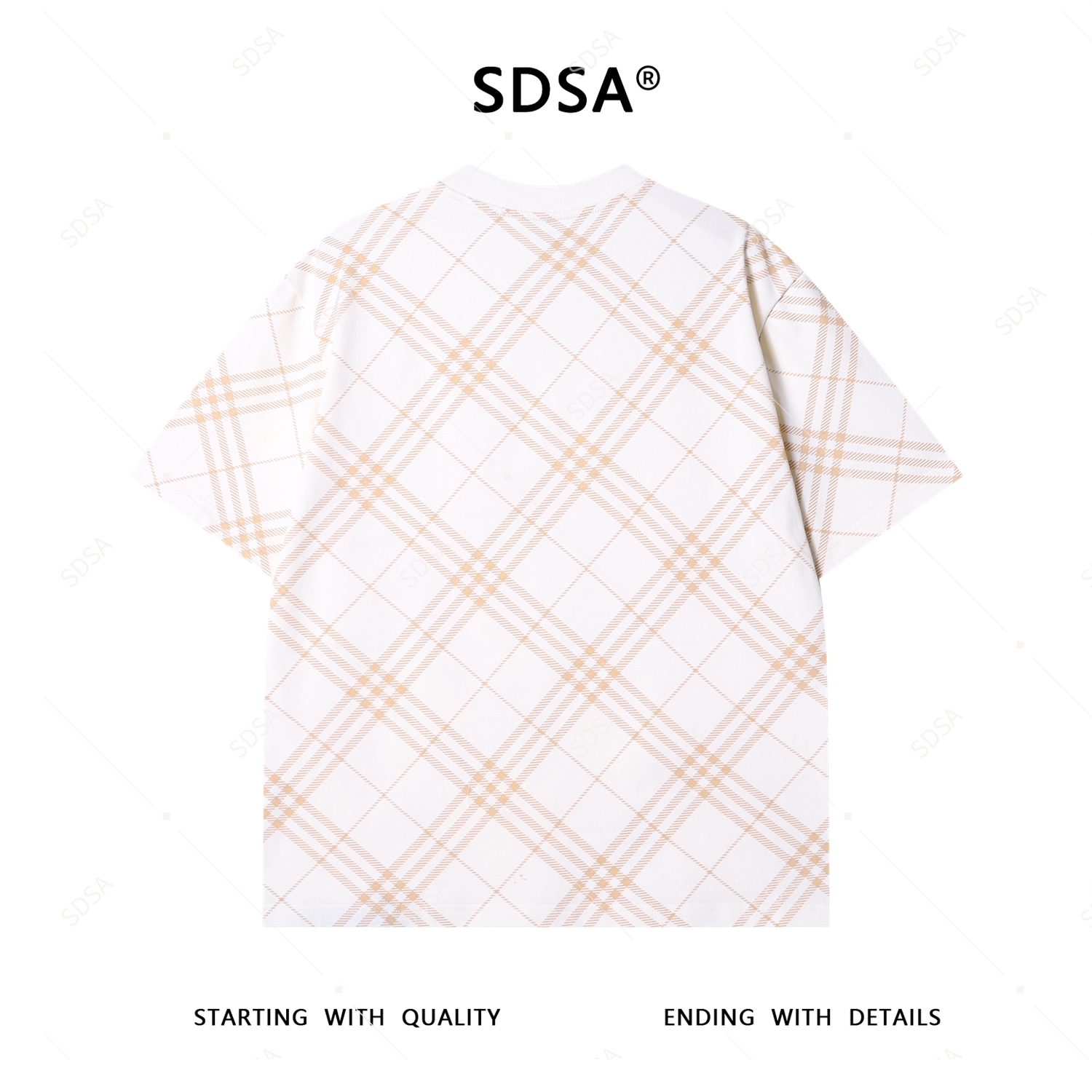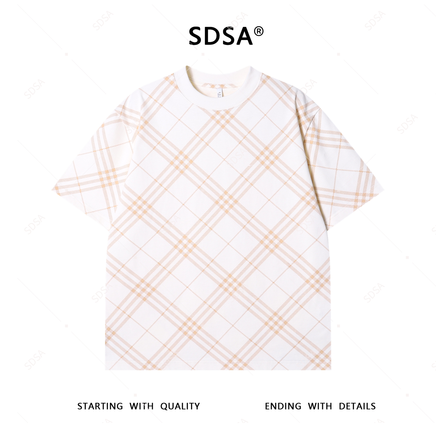 夏季高级感新款男士简约经典格纹短袖T恤百搭时尚圆领宽松上衣潮