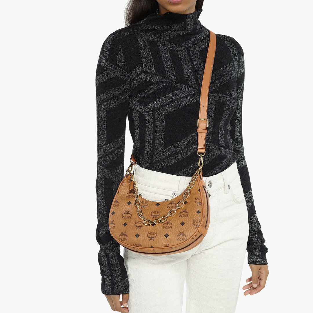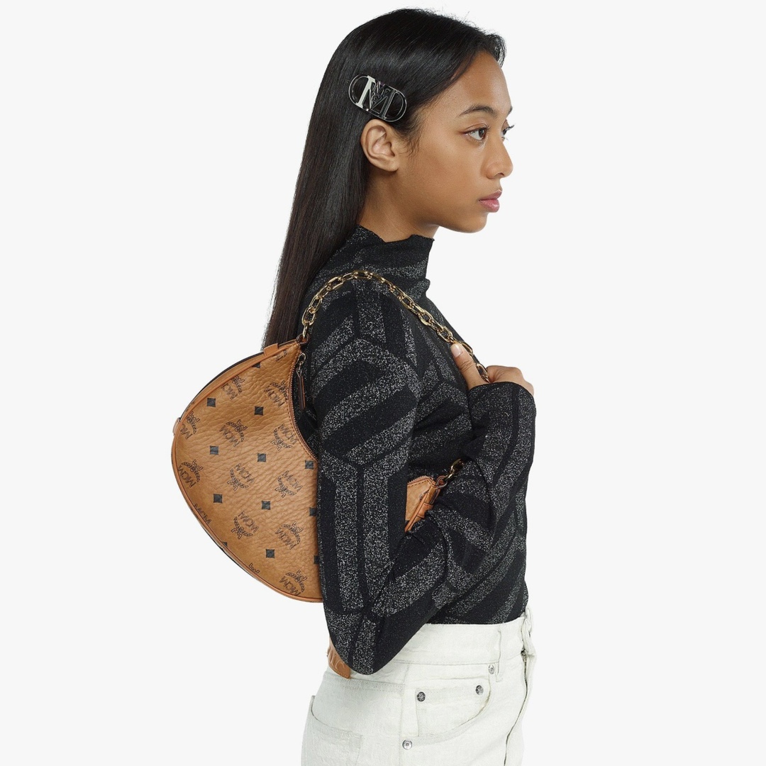 这款半月形Hobo包的设计灵感源自月亮,优雅的气质与其一脉相承。MCM经典的干邑色调则赋予了包袋历久弥新的品质。您可通过闪亮的链条提手携带这款包袋,或搭配随附的皮革肩带实现精致的免提功能。