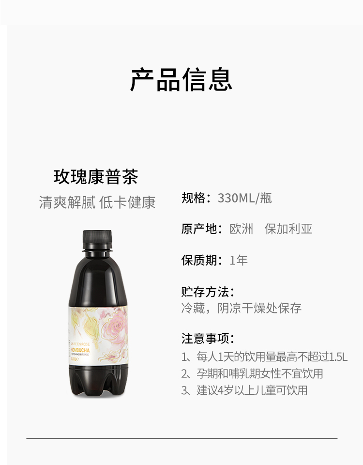 【渠道-希尔瑞美妆集合店】ECOMAAT伊可茉玫瑰康普茶1瓶装330ml/瓶