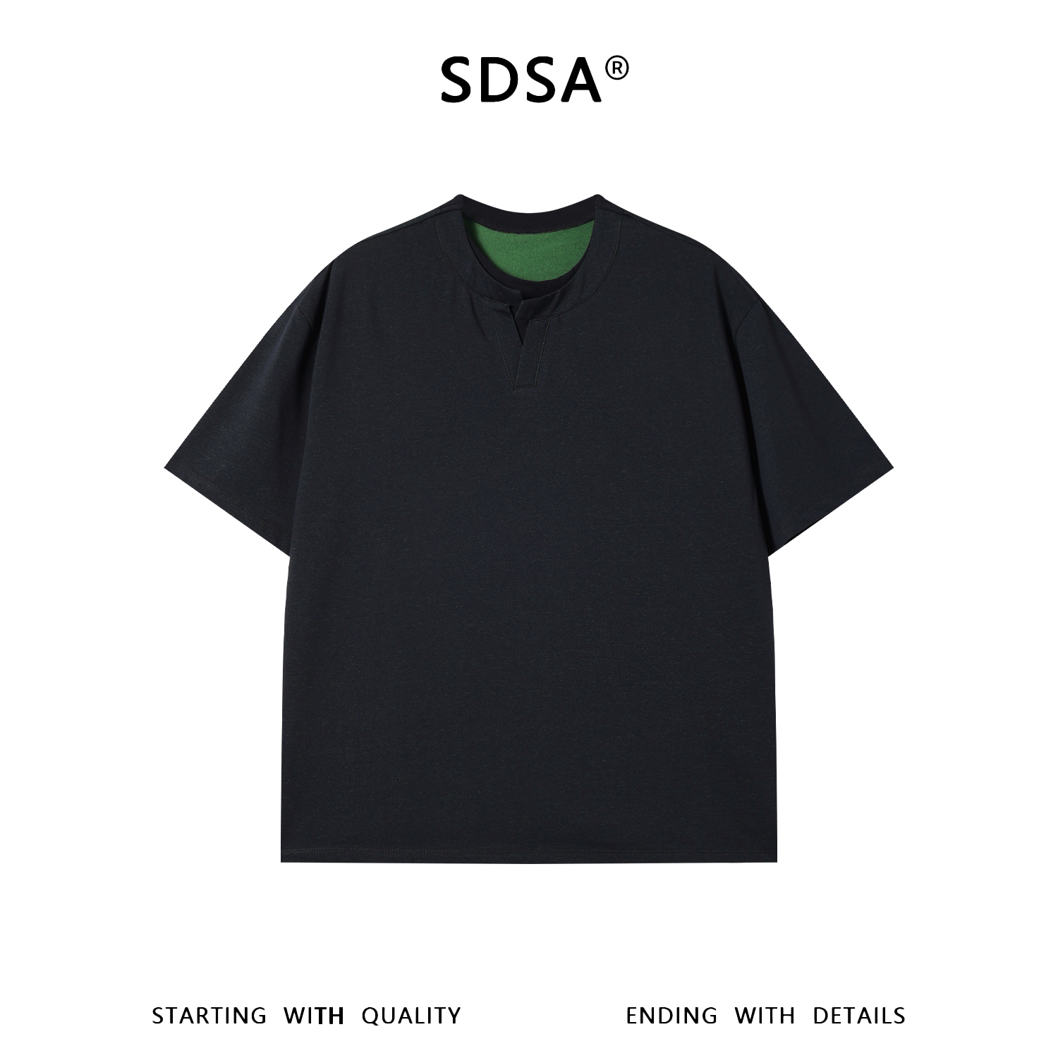 SDSA男装2026新款高贵轻奢老钱风拼接双层领短袖T恤百搭宽松上衣