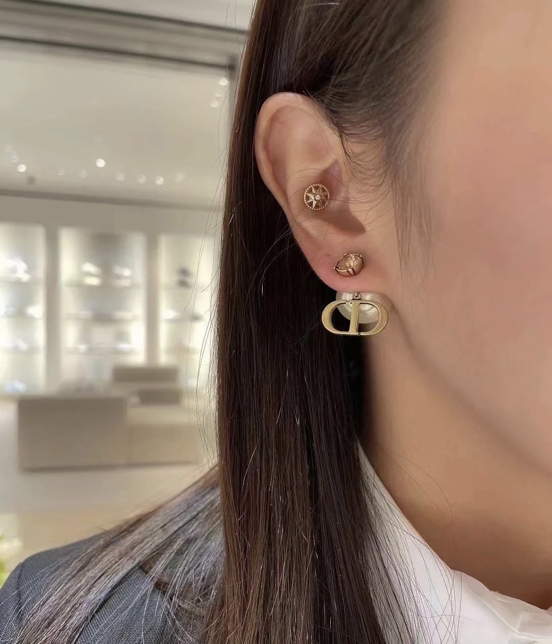 【迪奥茶钻珠CD耳钉】Z 4800,,一定要买系列!上耳简直就是万能款,酷黑,柔美风格通通可以驾驭,可盐可甜!可以说目前最爱的一款耳钉,就是这款了!定制发青色珠!完美体验!