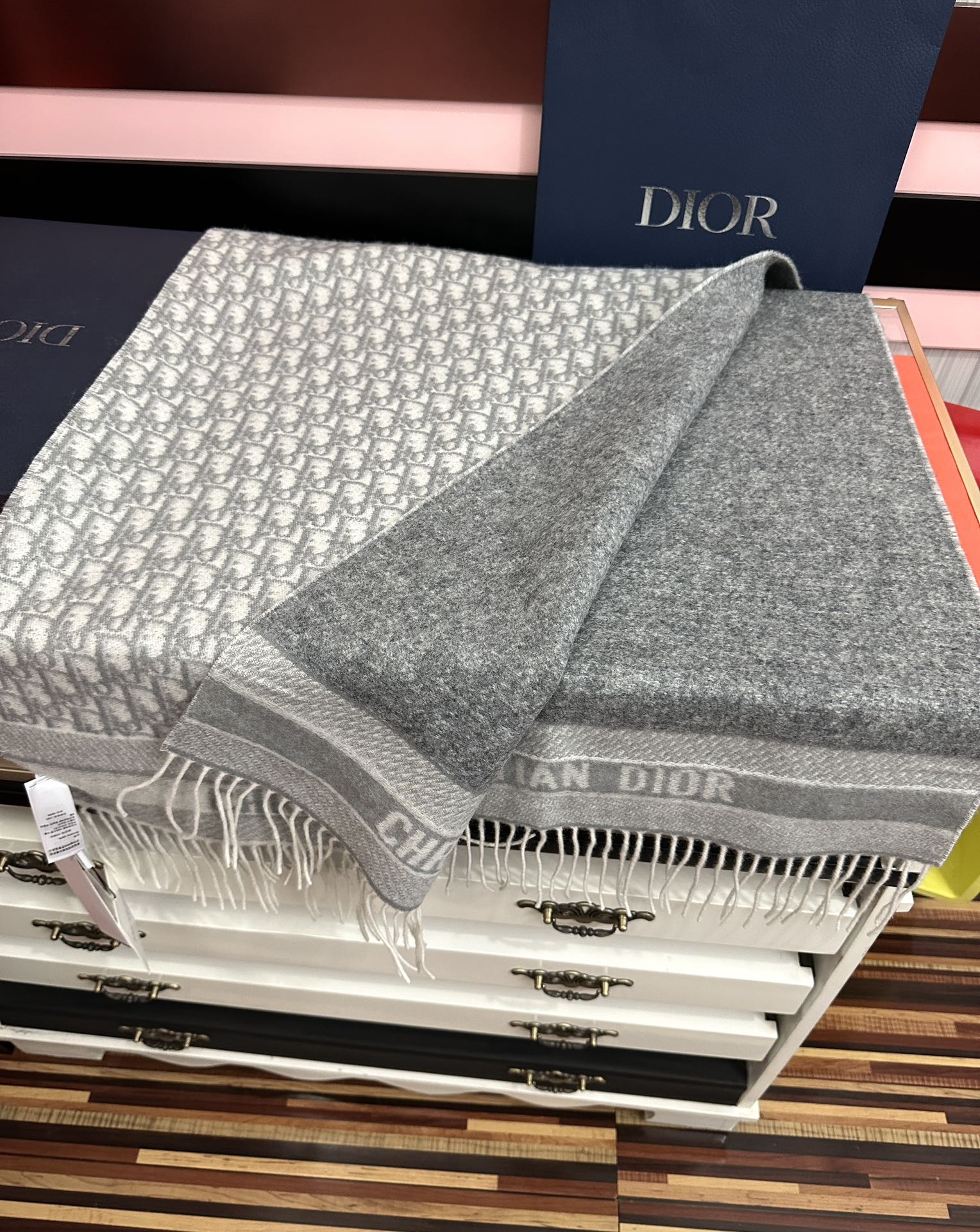 采用双面设计,一面采用纯色,另一面饰以 Dior 经典的 Oblique 印花[强]长款设计,饰以对比鲜明的同色调“CHRISTIAN DIOR”标志提花条形图案和流苏饰边,可围在颈部或披在肩部[庆祝] 灰色 Oblique 印花 双面设计,灰色和 Oblique 印花 “CHRISTIAN DIOR”标志条形图案 流苏装饰 意大利制造