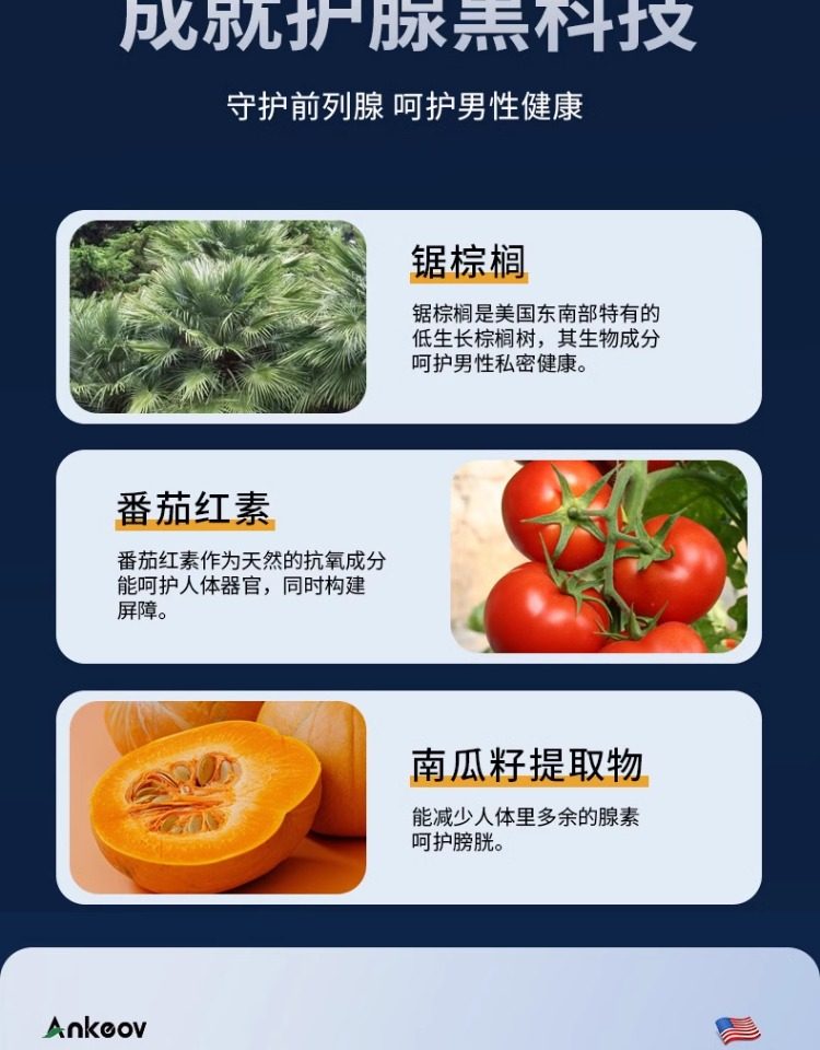 ANKEOV安可夫锯棕榈番茄红素胶囊安可沃男前列健康保健品尿路健康