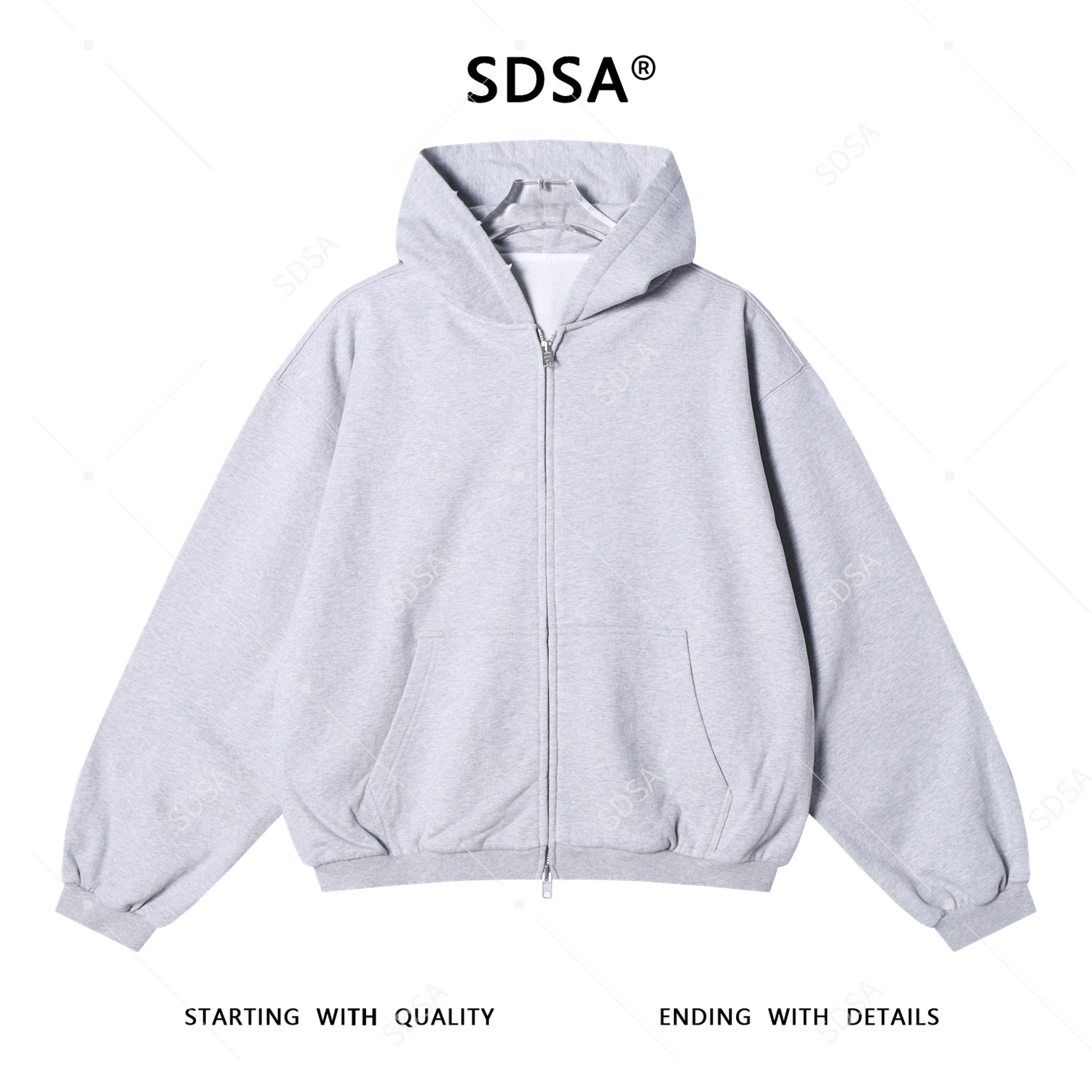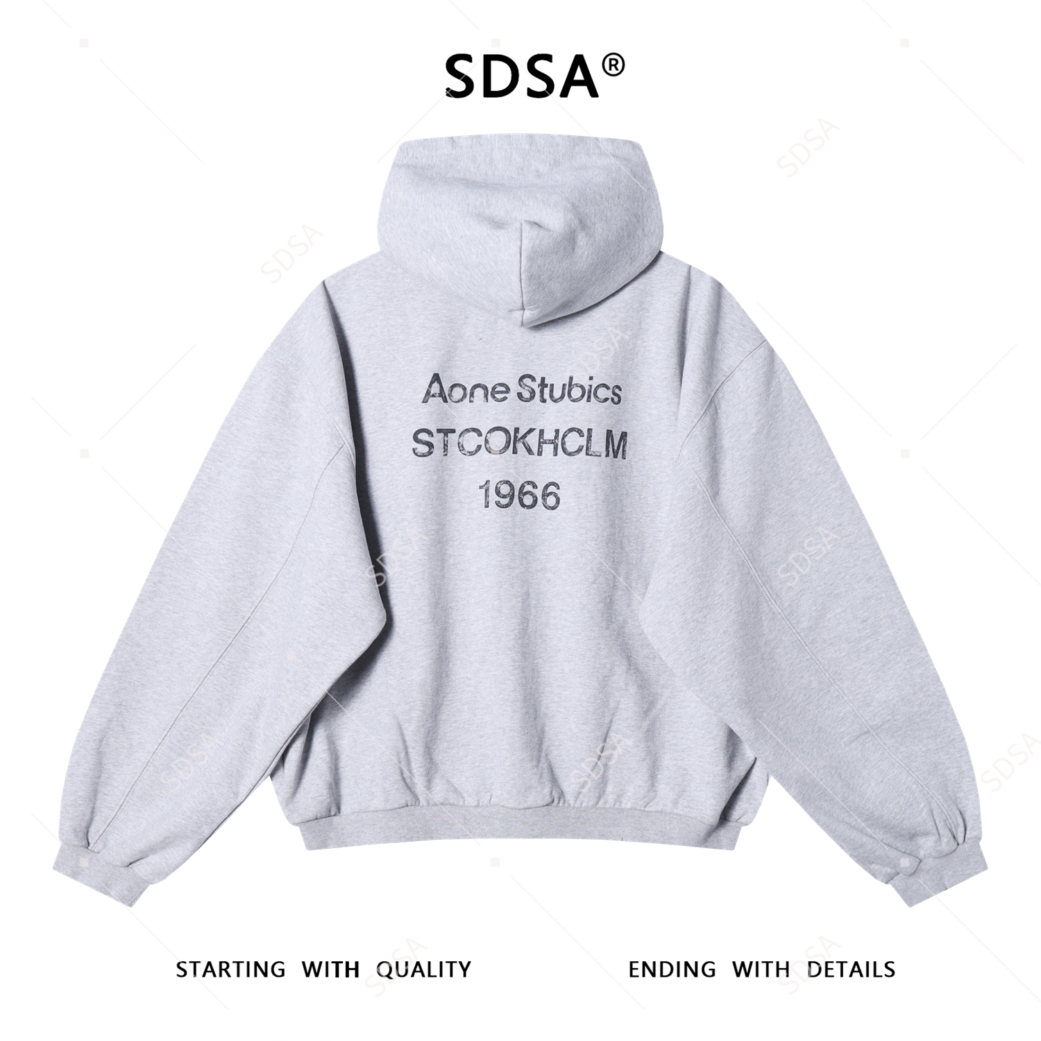 SDSA秋冬新款痞帅男装美式磨破后背印花字母拉链连帽卫衣百搭外套