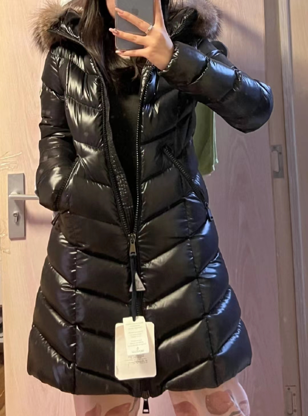 蒙口中长毛领款!!!品质牛b还原,鹅绒填充超饱满蓬松度,直接穿去柜,一点问题没有!牛b代购版品质极度惊艳,超大狐狸毛领,独家原厂蒙口羽绒专用料,原代工厂电镀五金,百分百鹅绒填充,包括做工也是出自原加工厂,有nfc感应式防伪芯片,让你完全的柜台体验!