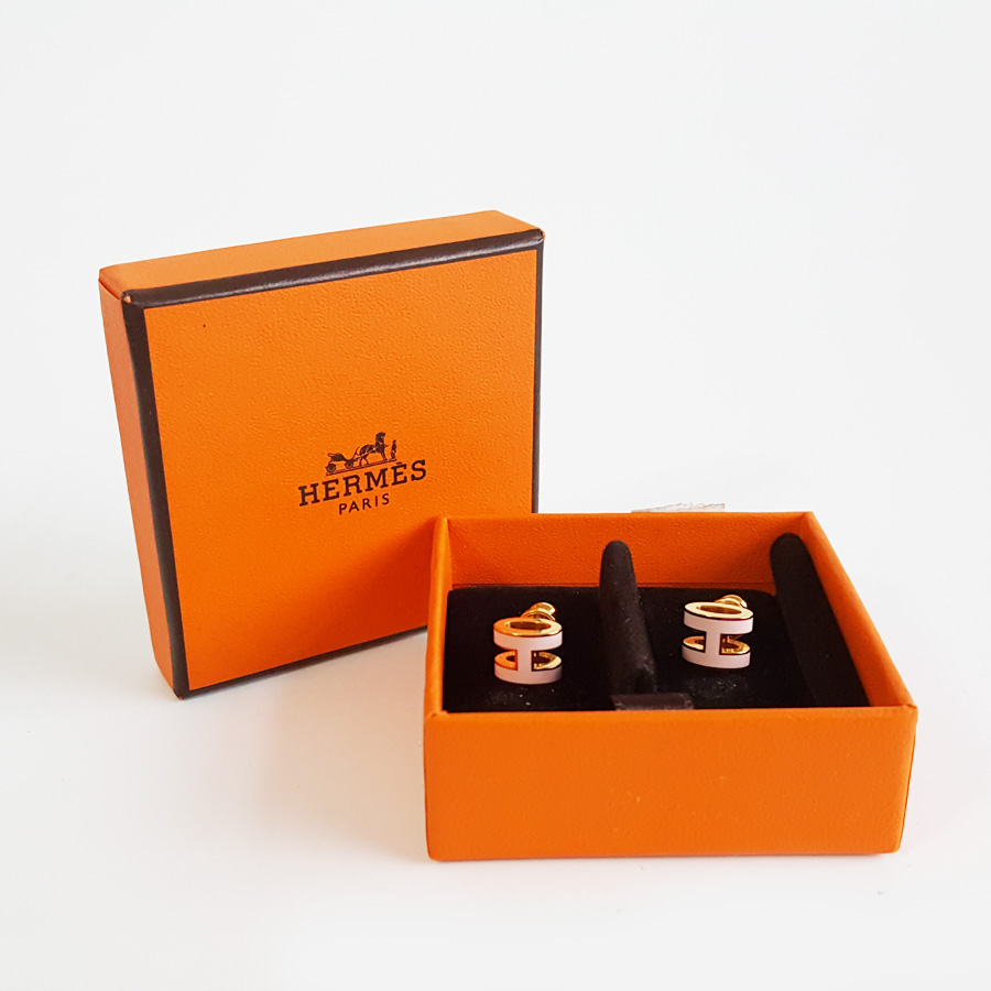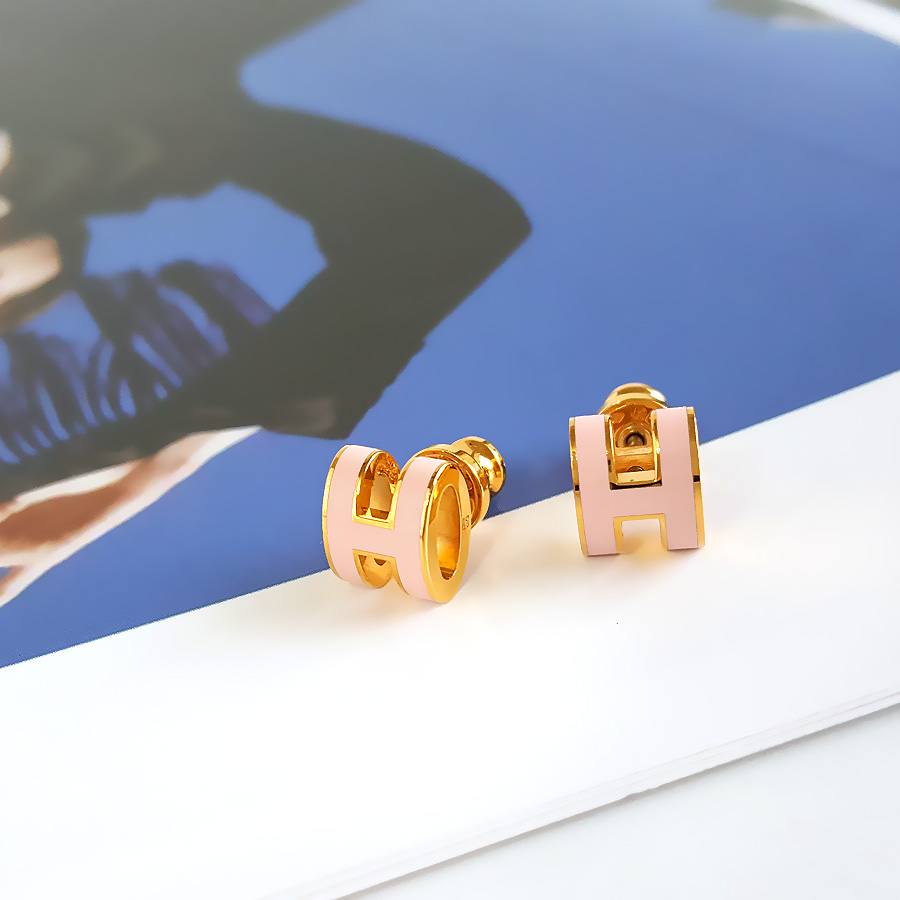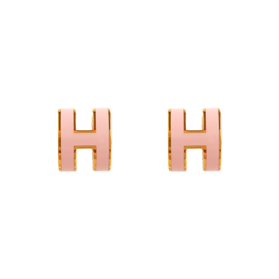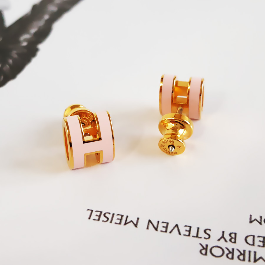【95新】Hermes爱马仕迷你粉色pop H金属耳环尺寸约7*9mm311025NJS36