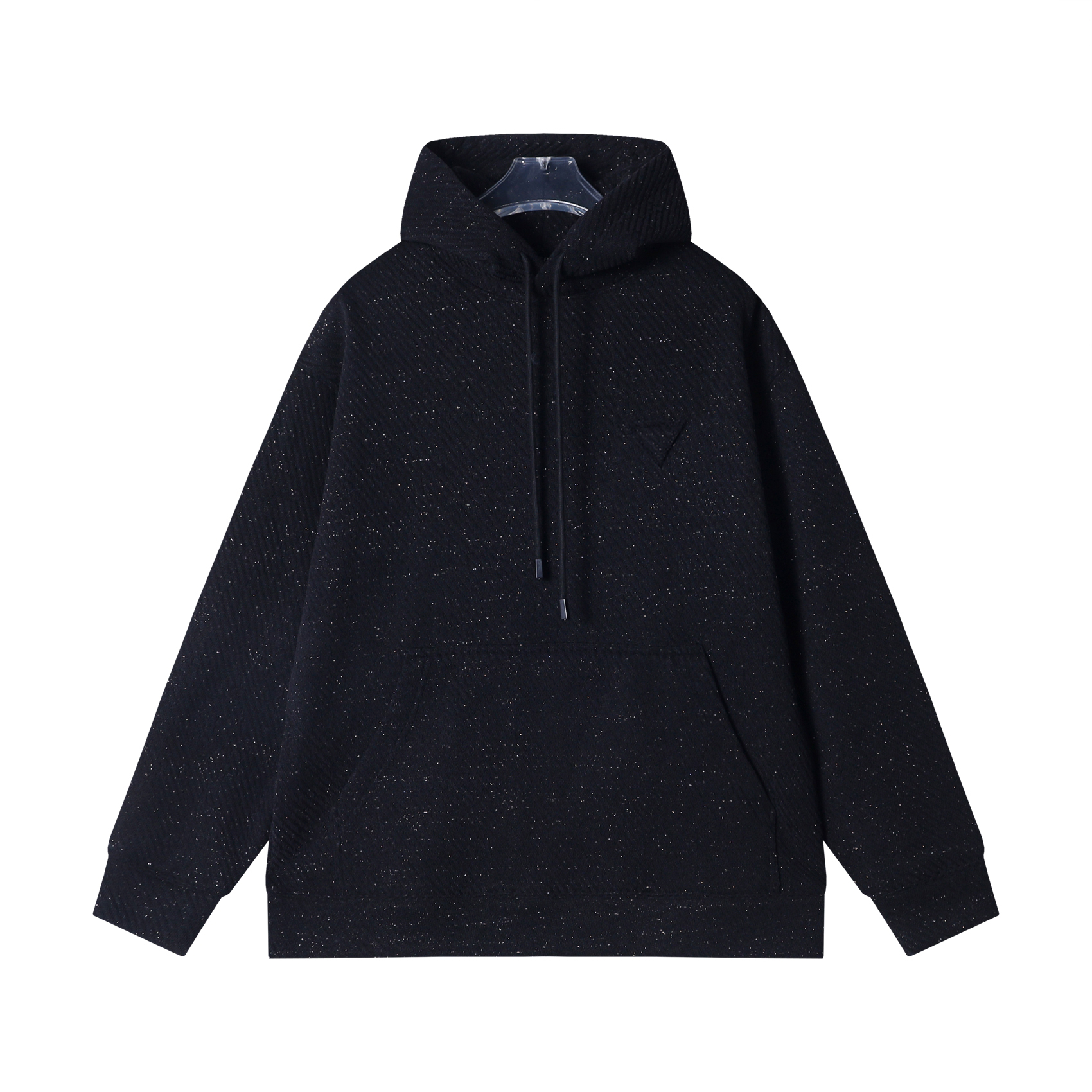 秋冬季新款时尚个性韩版纯色百搭肌理纹细闪连帽卫衣简约情侣上衣