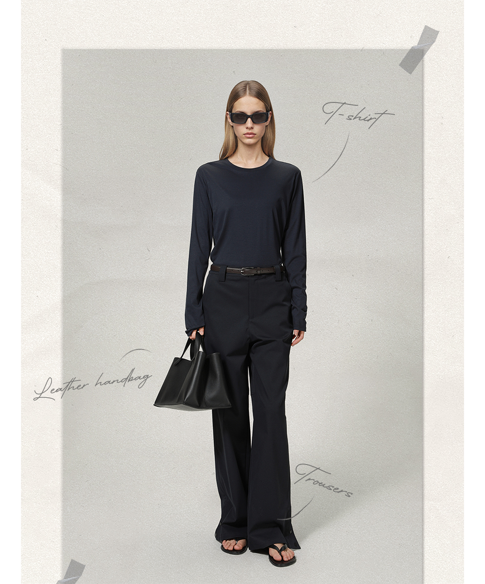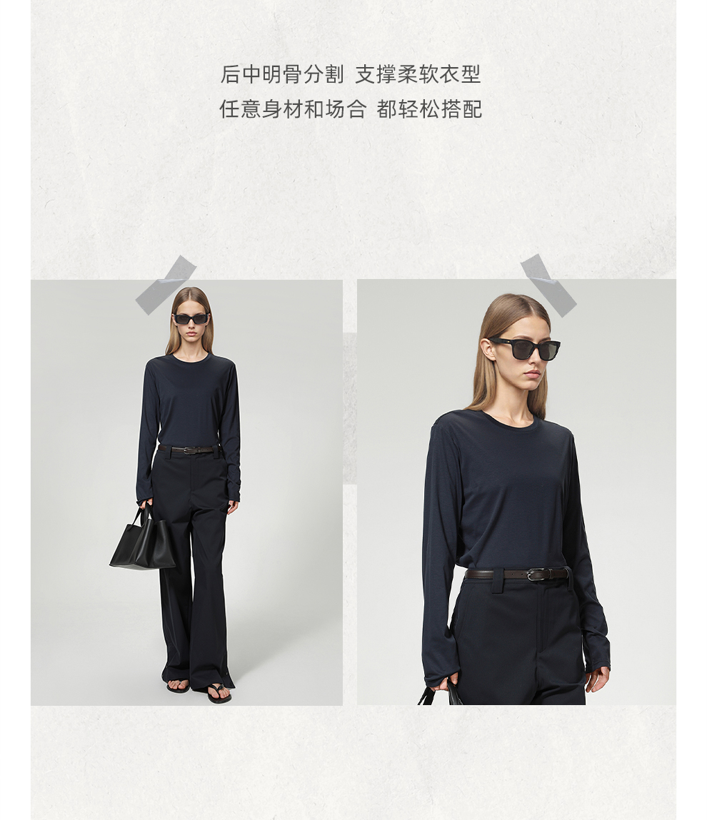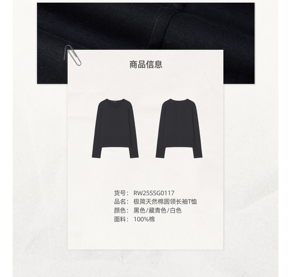 ROMI STUDIO“松弛自在”100棉肤感弹力圆领修身长袖T恤RW25SSG0117