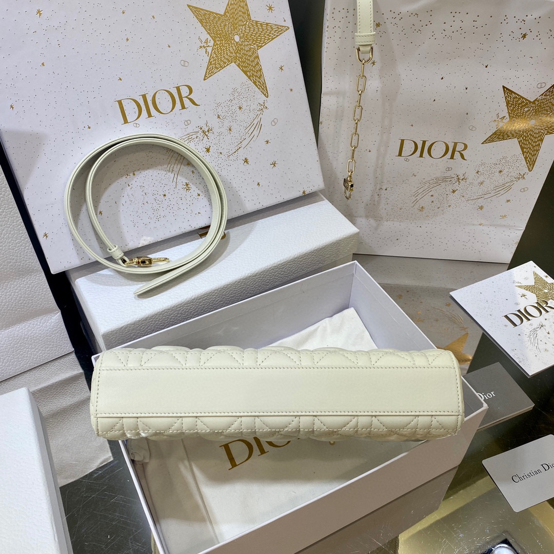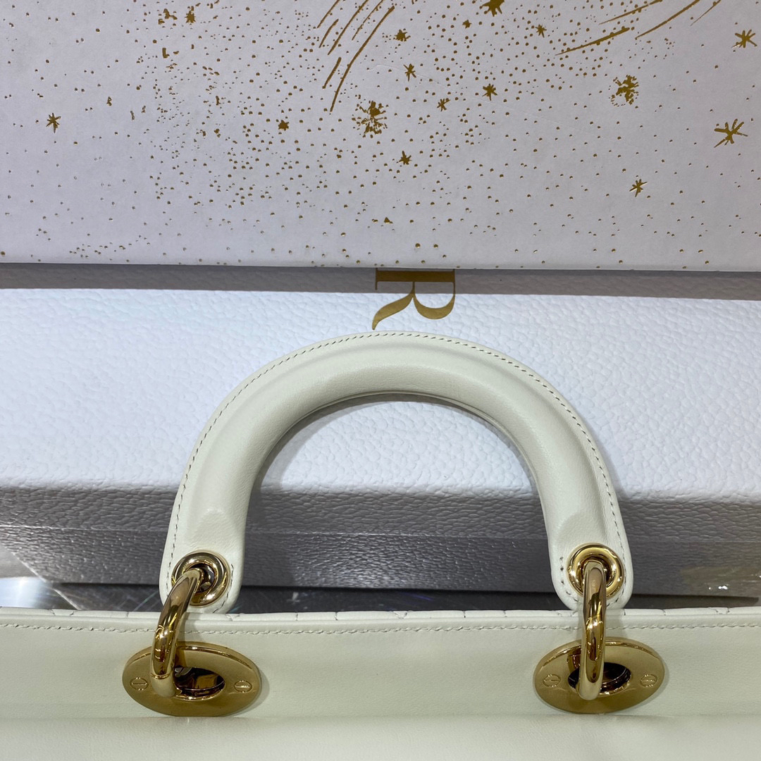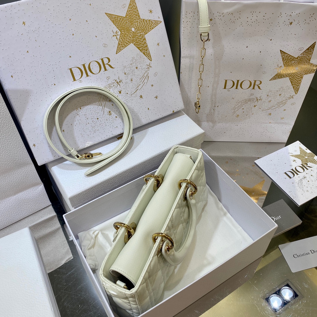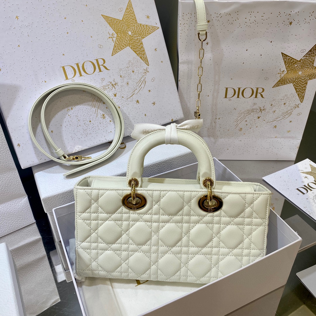?LADY D-JOY 手袋? 【羊皮藤格纹】 这款 Lady D-Joy 手袋集中体现了 Dior 对优雅和美丽的深刻洞见。时髦典雅的设计经久不衰,彰显 Lady Dior 系列的简约美学。采用进口胎羊皮精心制作,饰以藤格纹缉面线,搭配浅金色饰面金属D.I.O.R.吊饰提升格调,为精美的轮廓增添一分灵动。搭配一条可拆卸的链条肩带和一条可调节、可拆卸的皮革肩带,可手提或斜挎,是日常造型的理想之选。