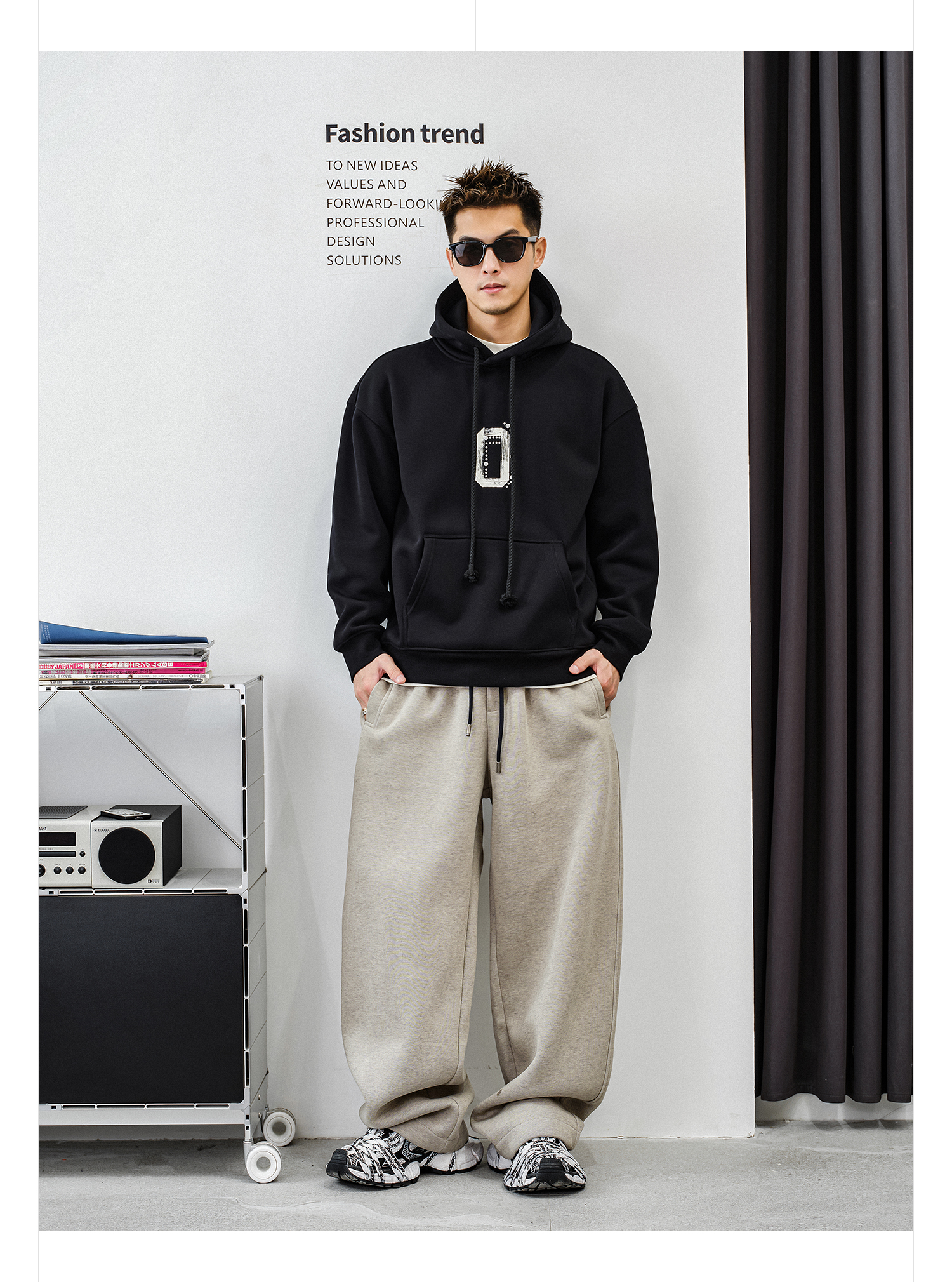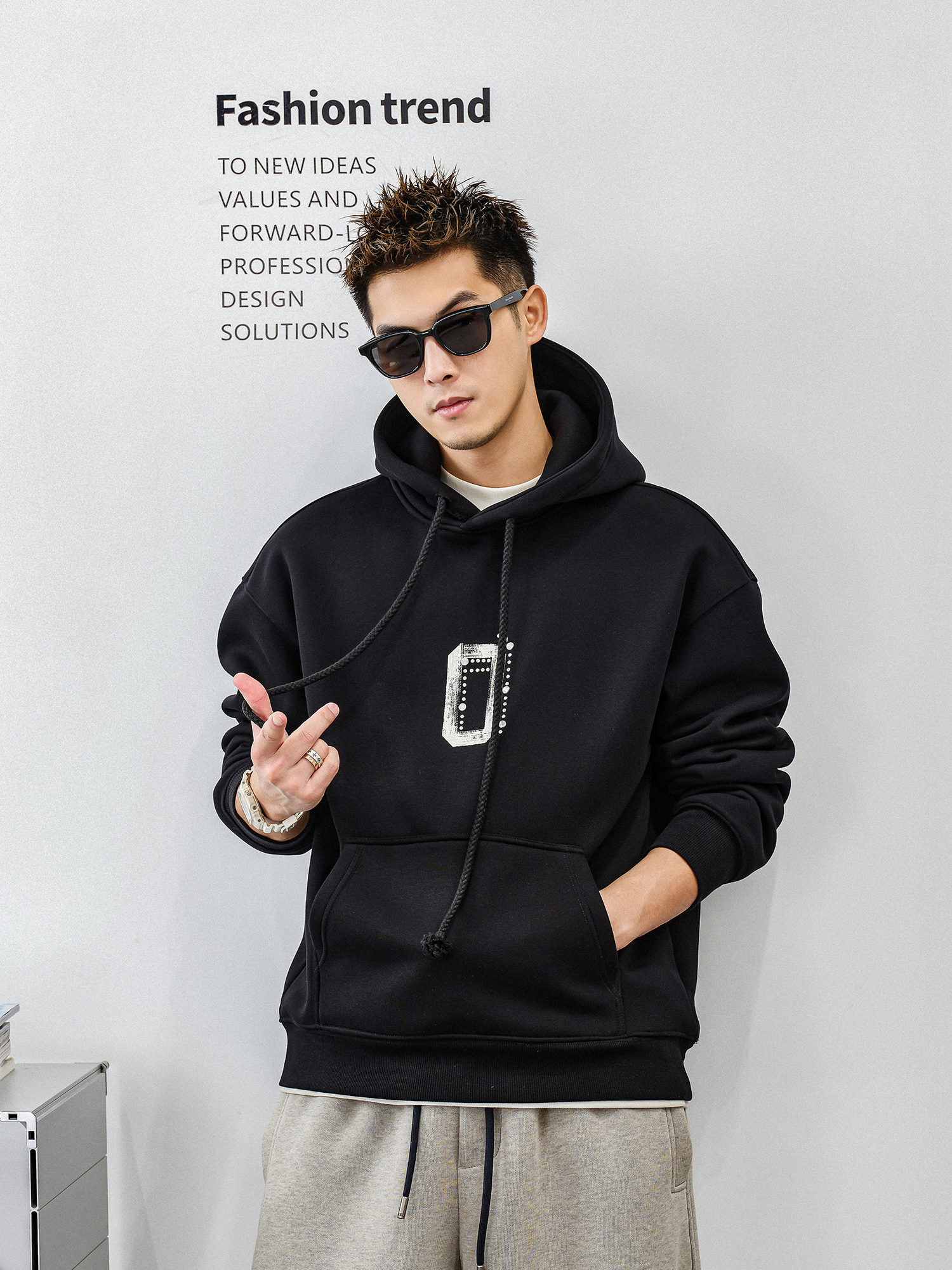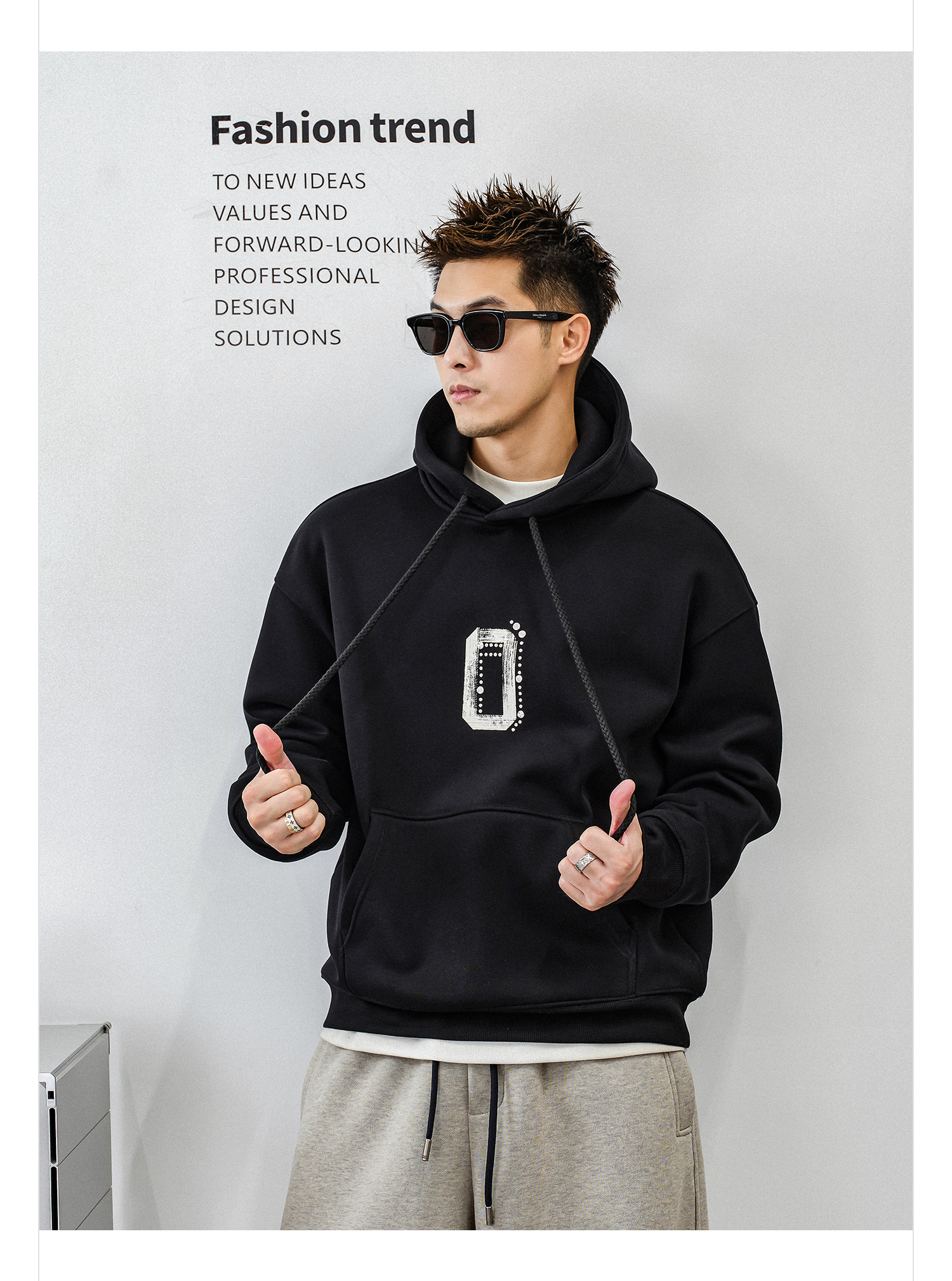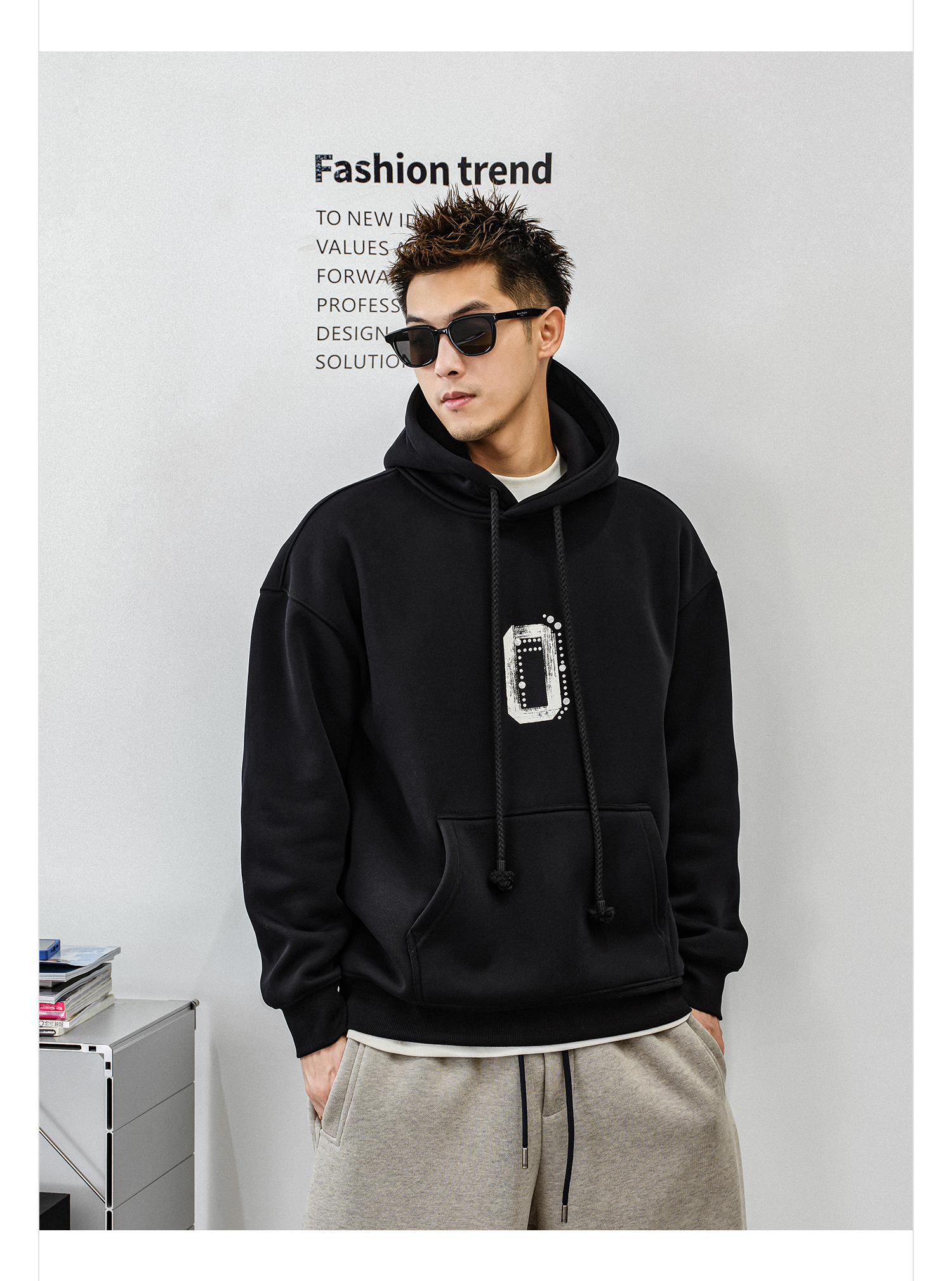 徐太浪【涂鸦字母 印花设计】连帽加绒卫衣男秋冬款休闲帽衫外套